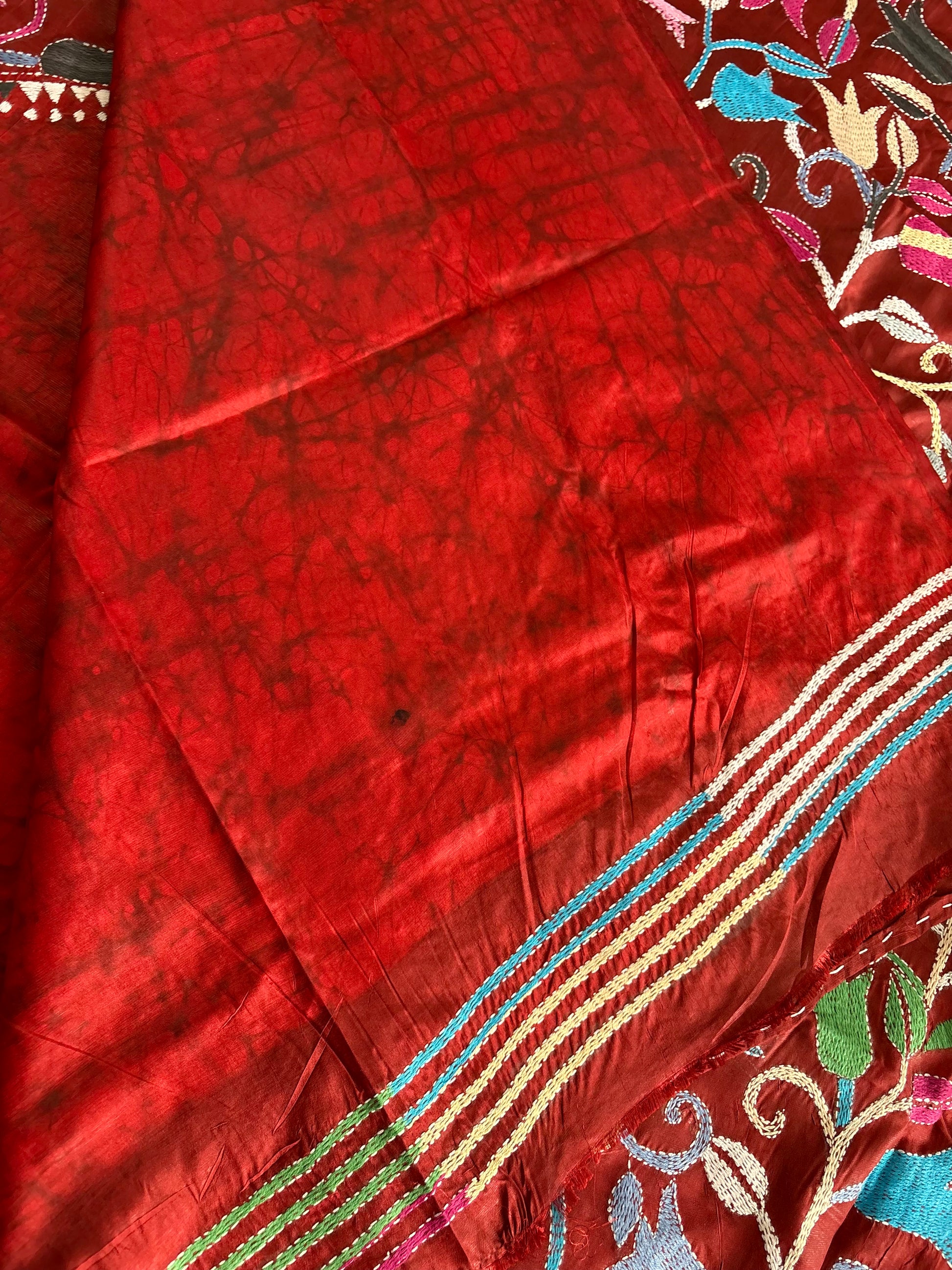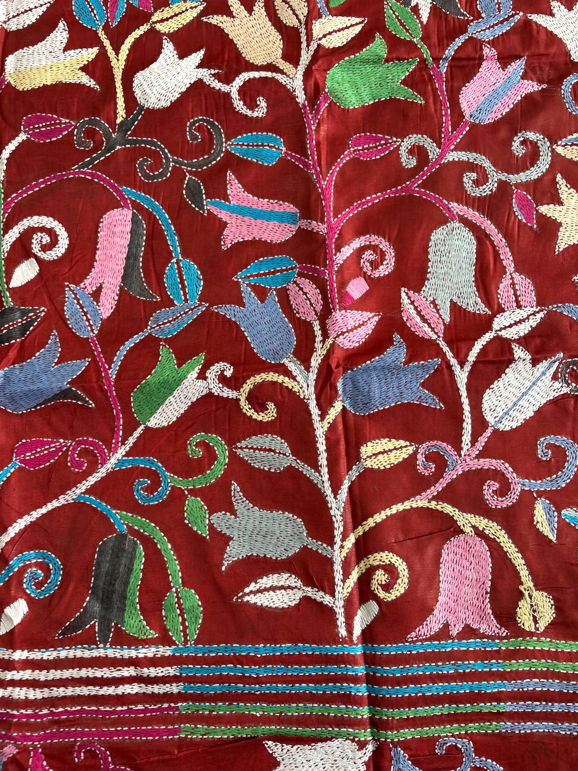 “Kantha Hand Embroidered Blended Banglore Silk/art Silk Saree With Blouse
