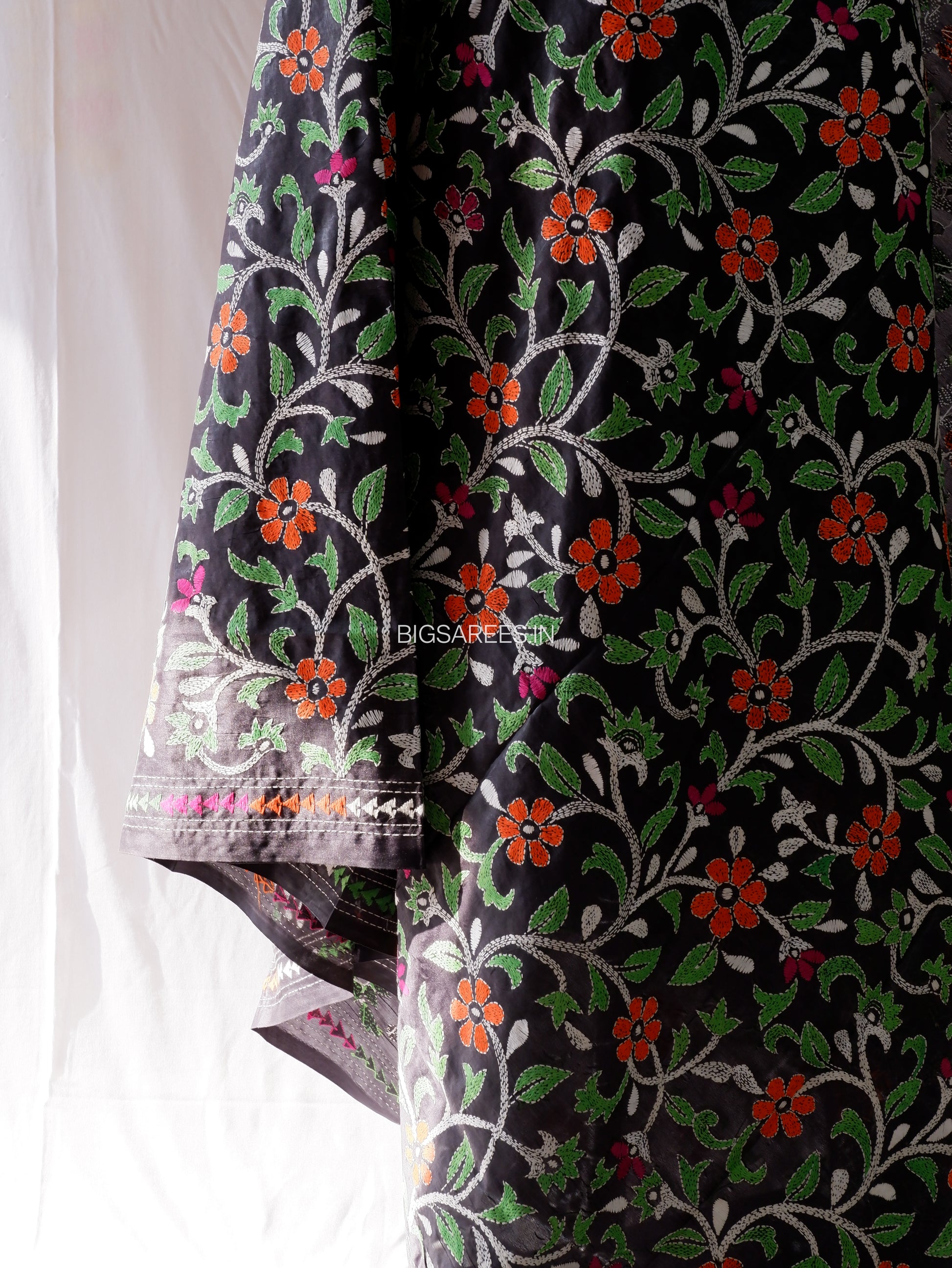 Kantha Hand-Embroidered Dupatta | Blended Bangalore Silk | Full Work | Black
