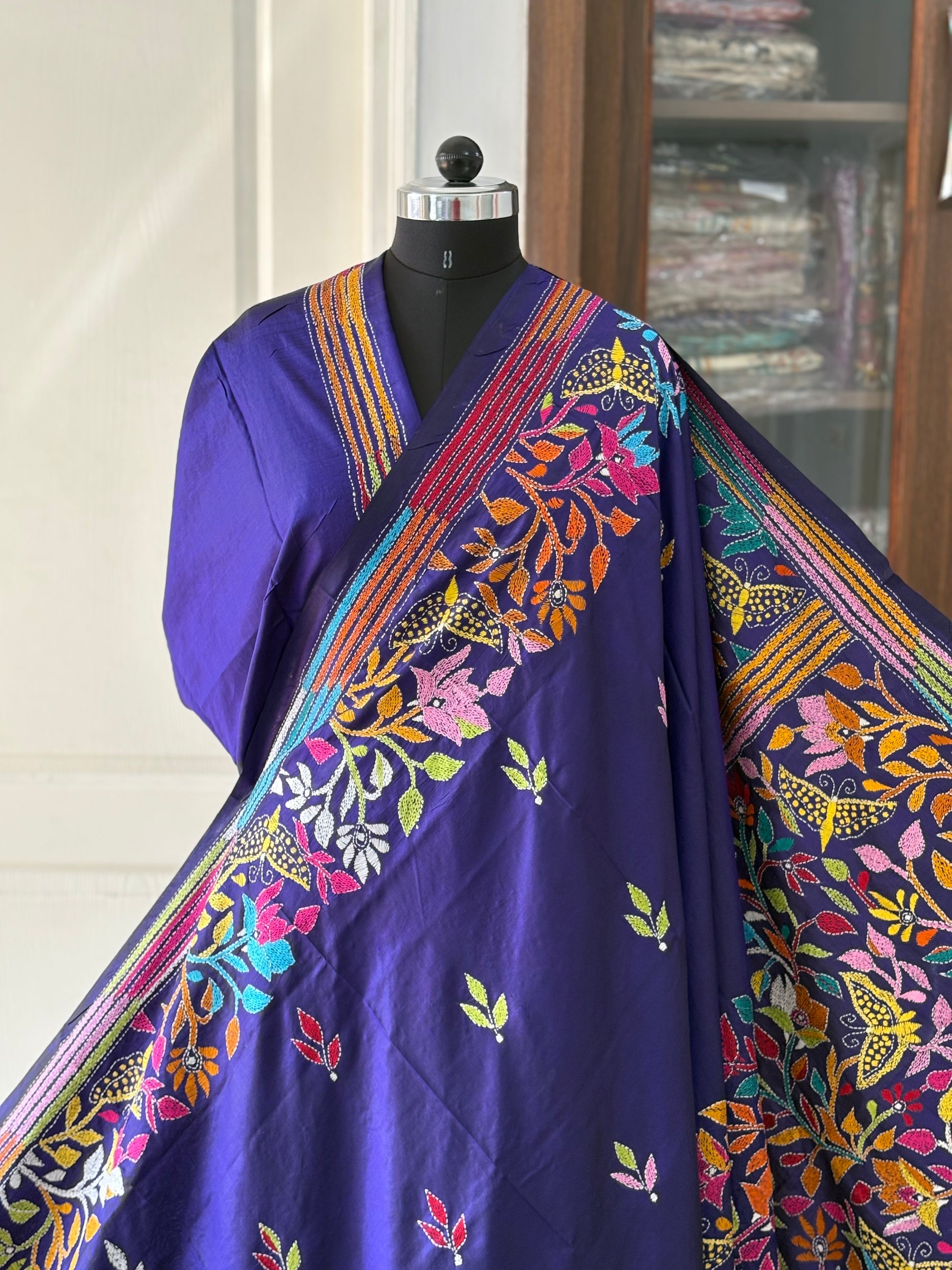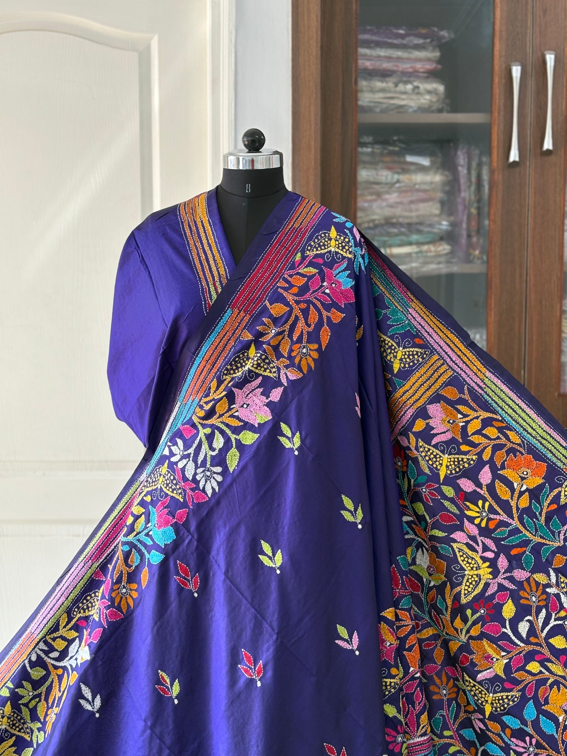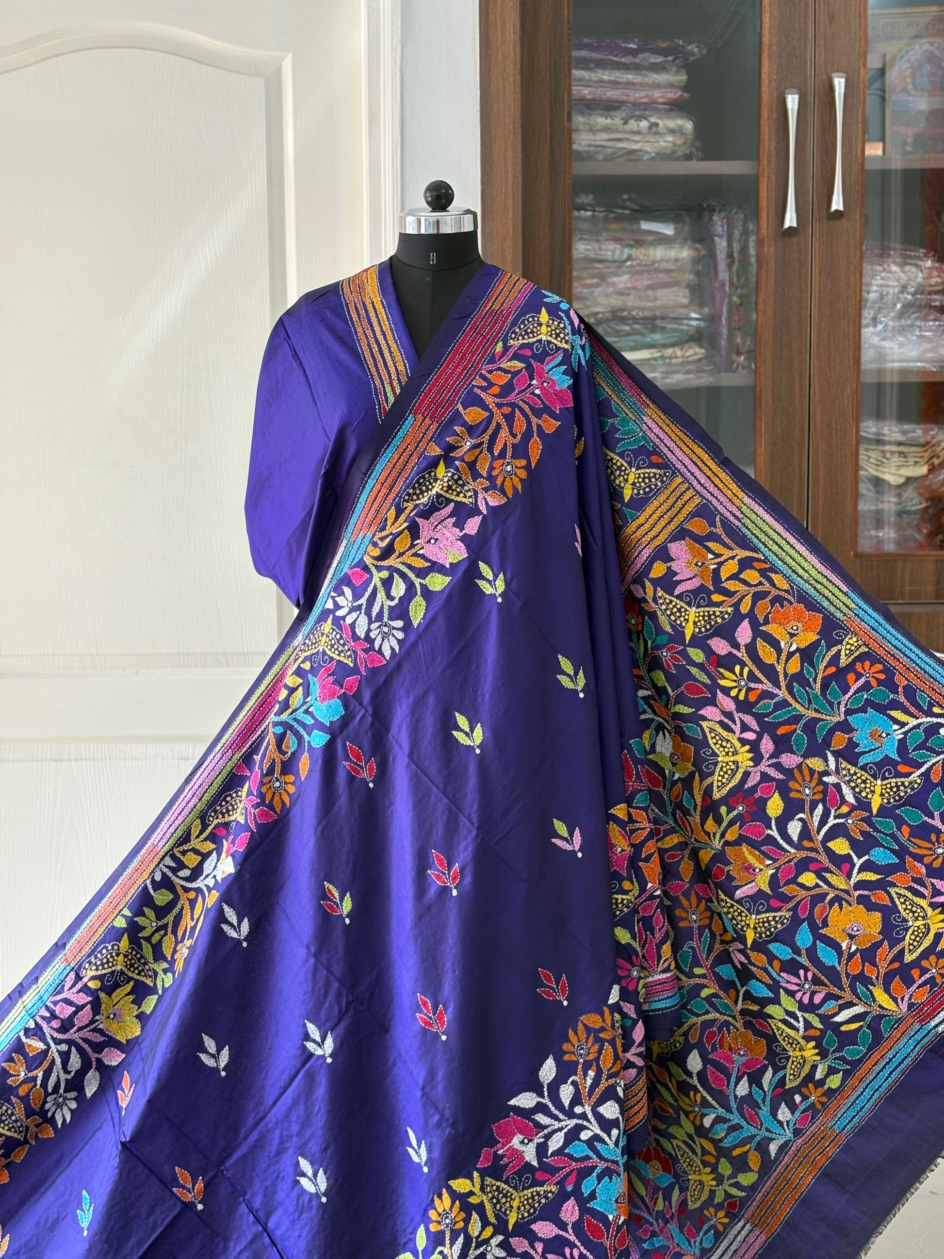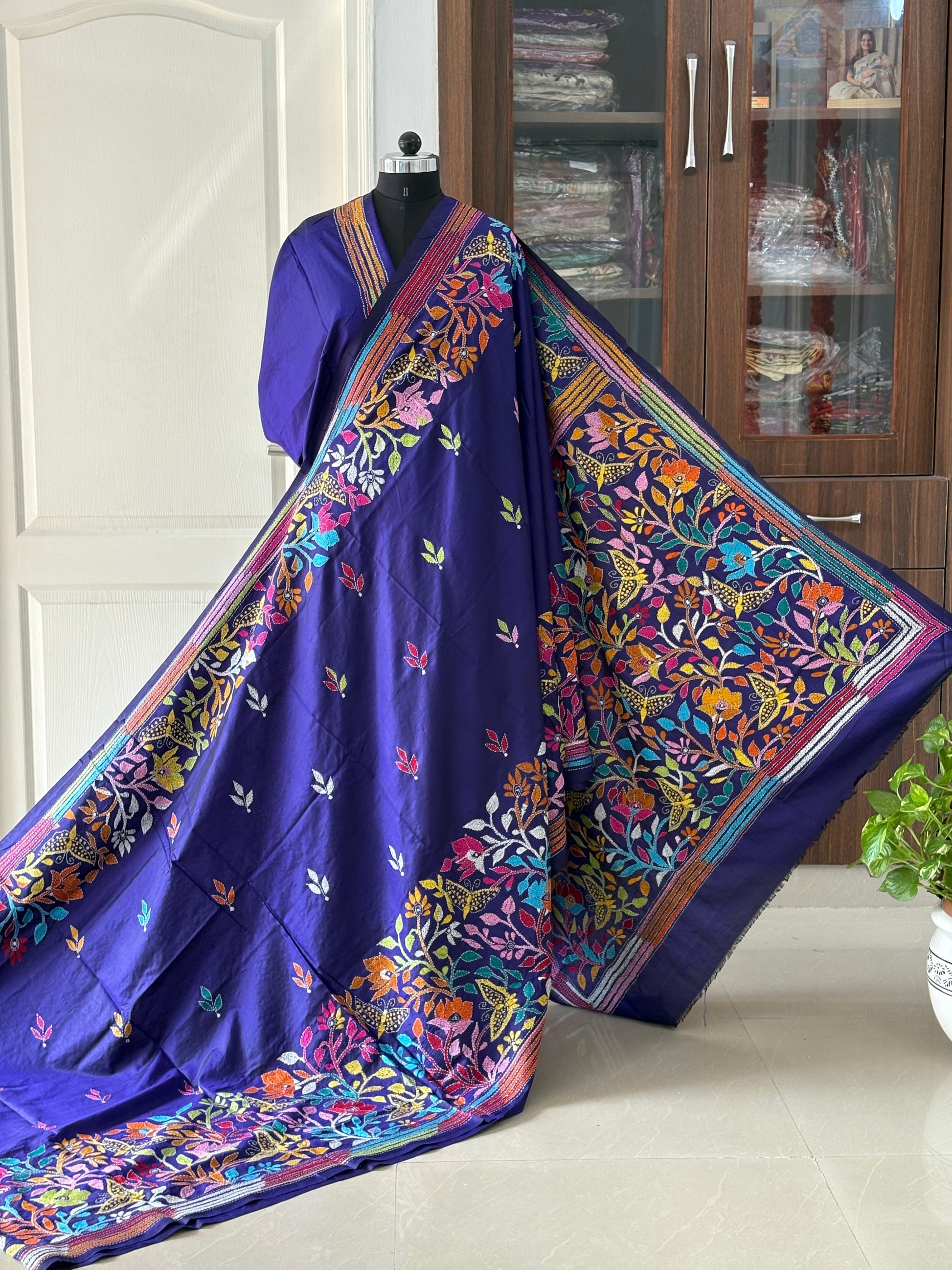 Kantha Hand Embroidered Pure Banglore Silk Saree (Silk Marked)