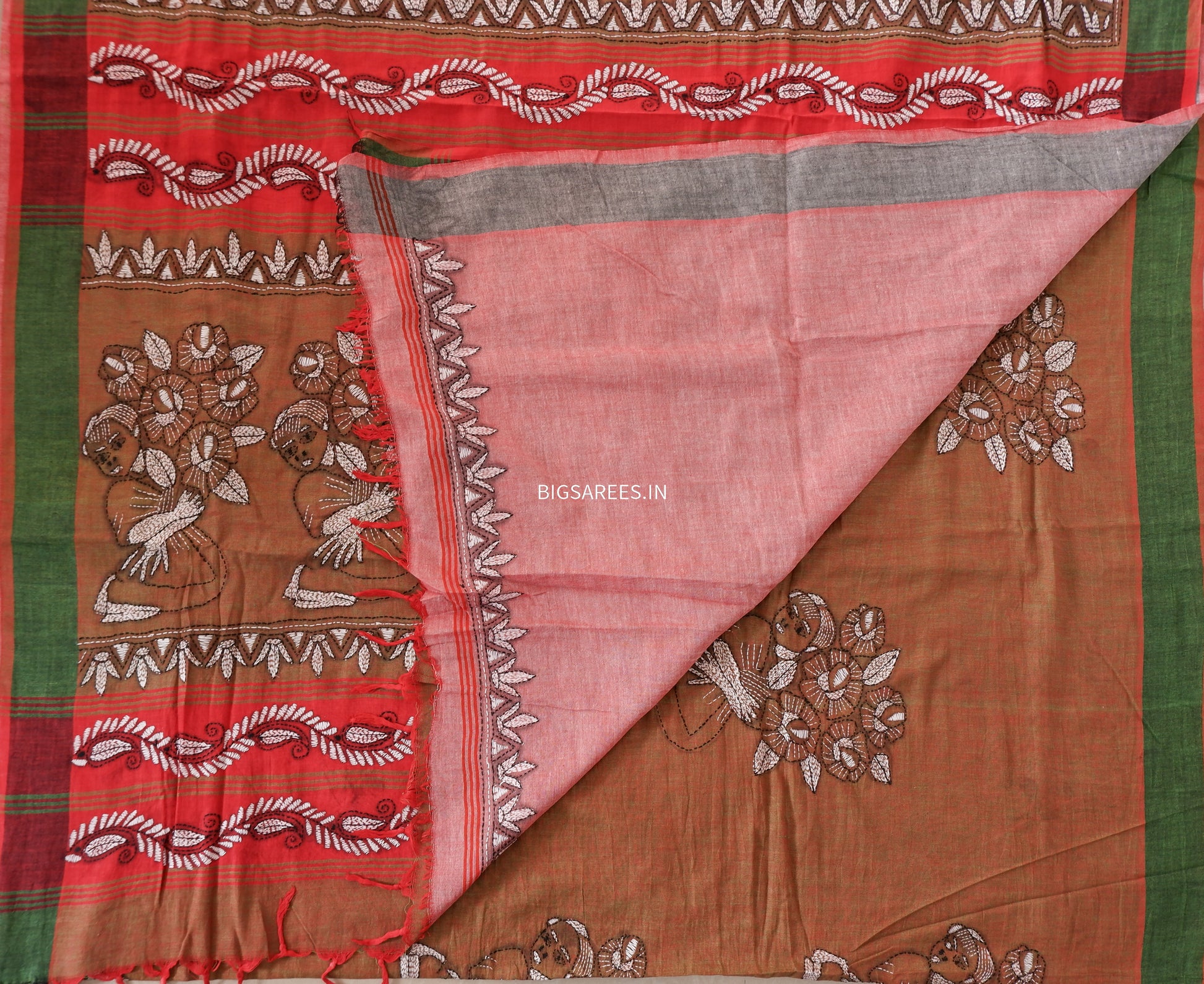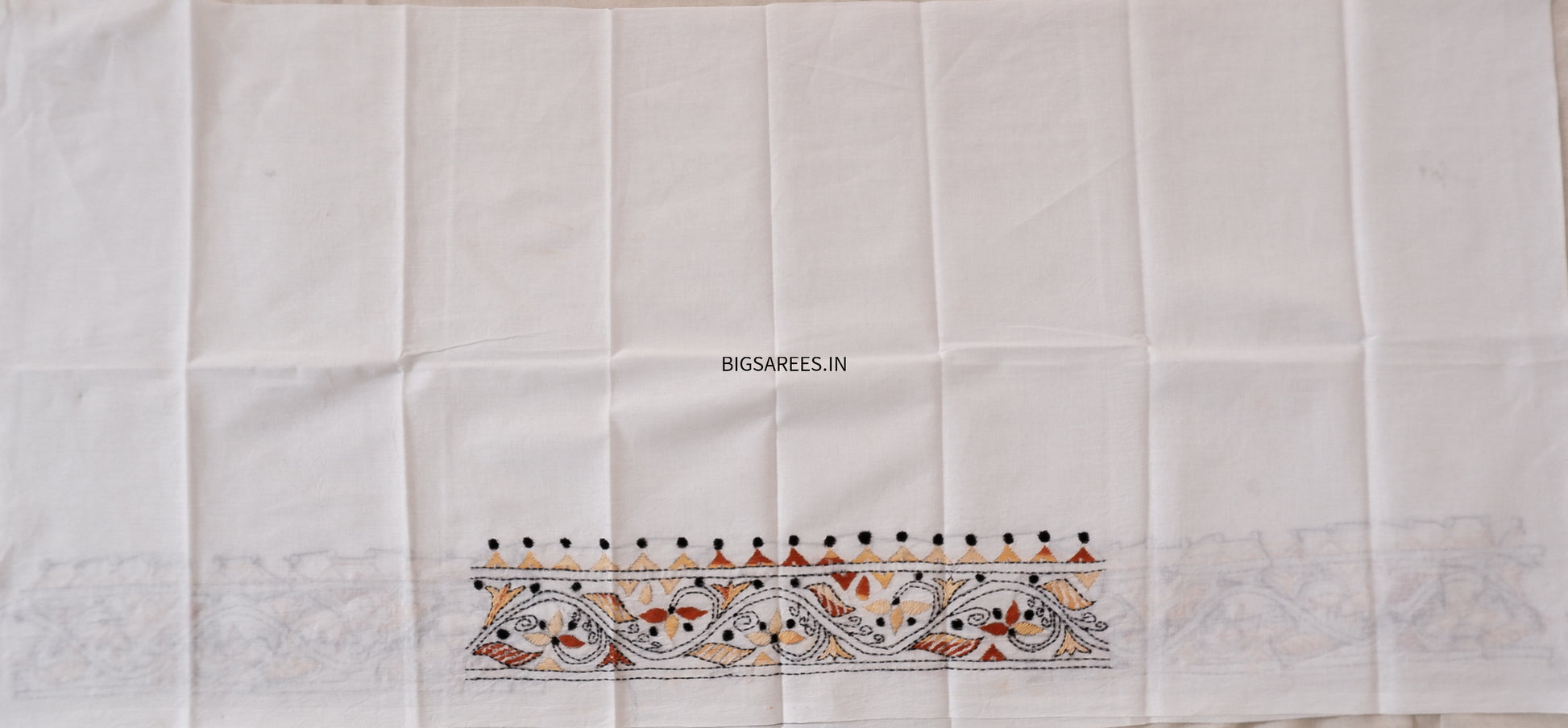 “Kantha Hand Embroidered Pure Cotton Saree.