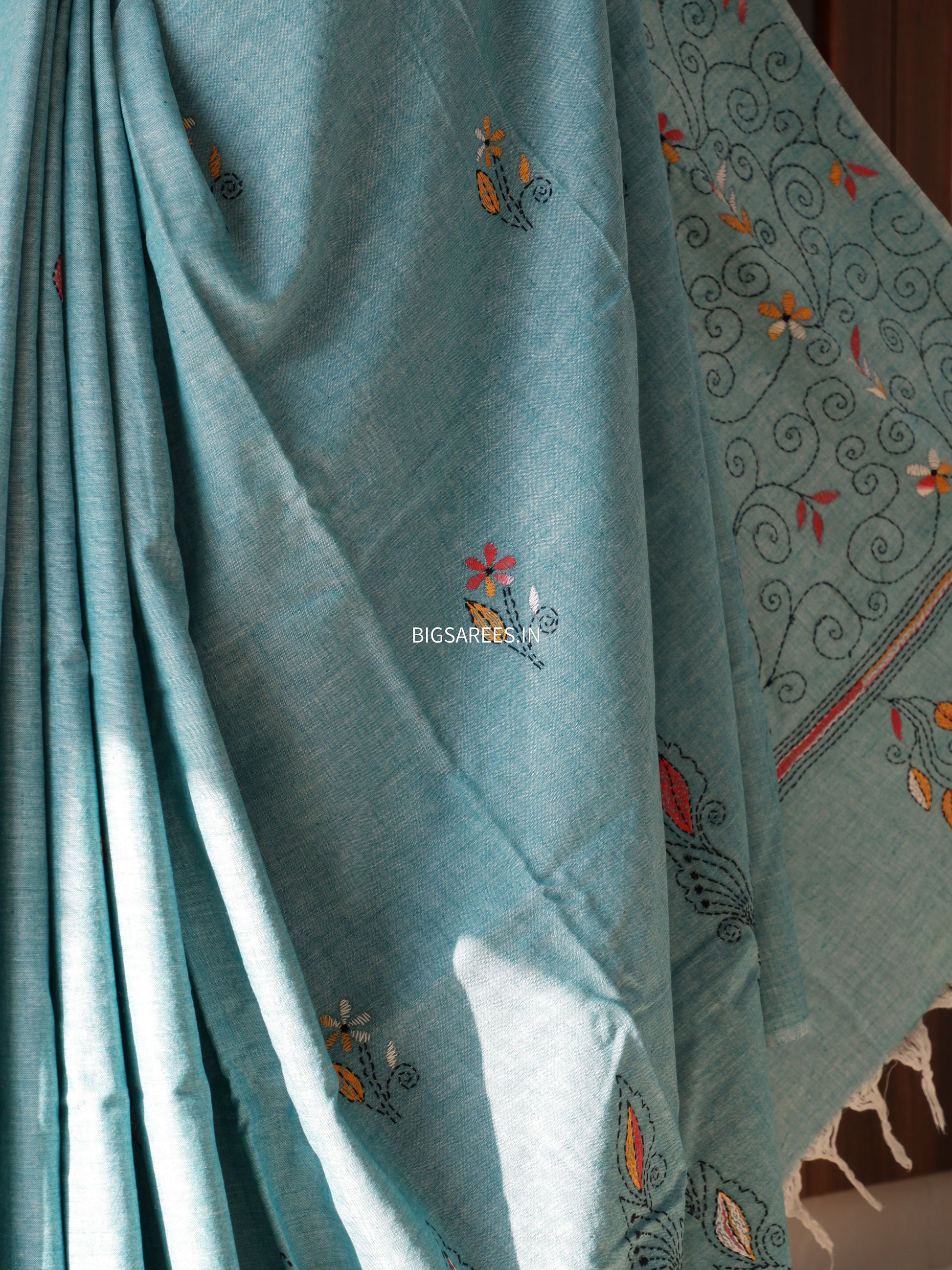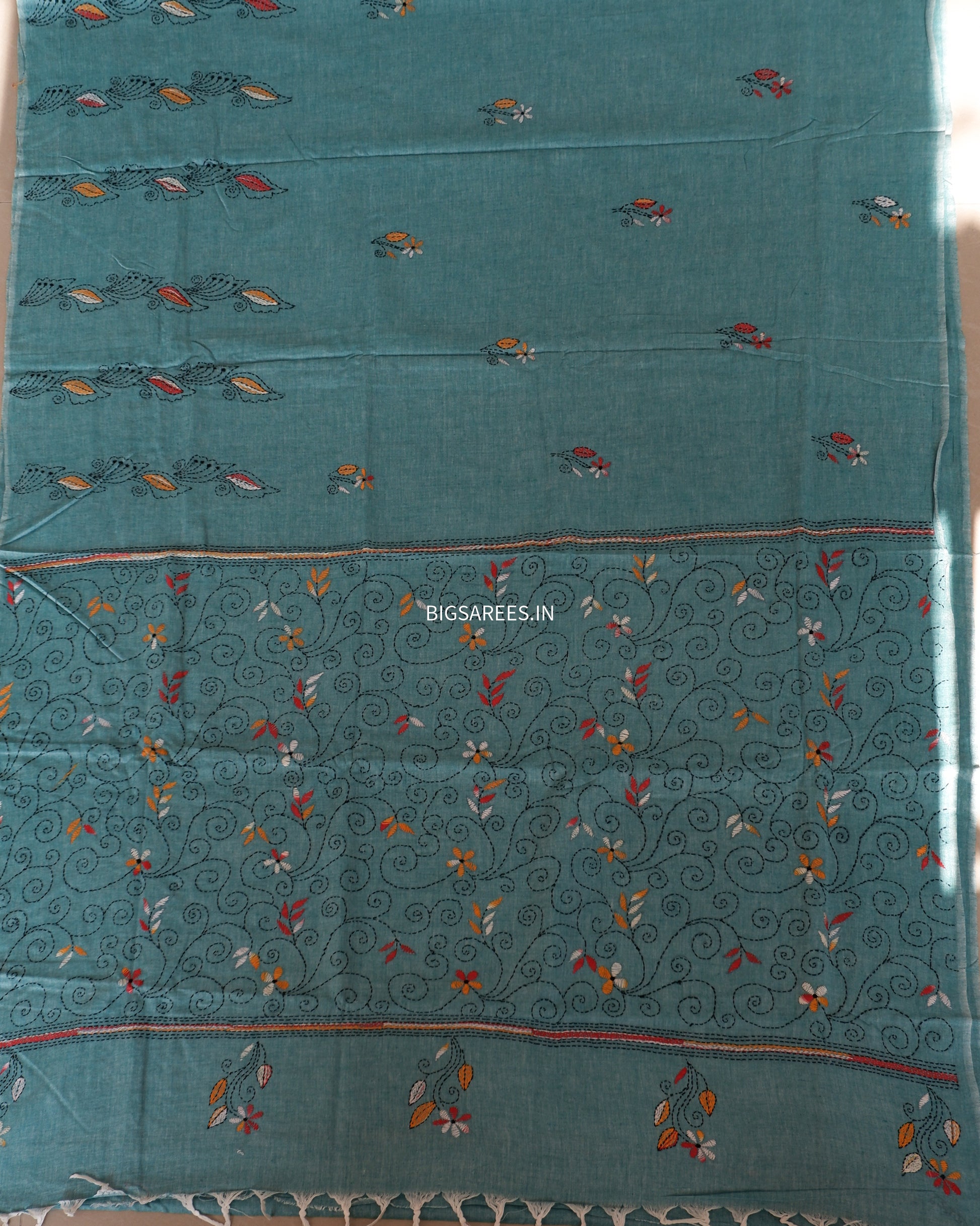 “Kantha Hand Embroidered Pure Cotton Saree.