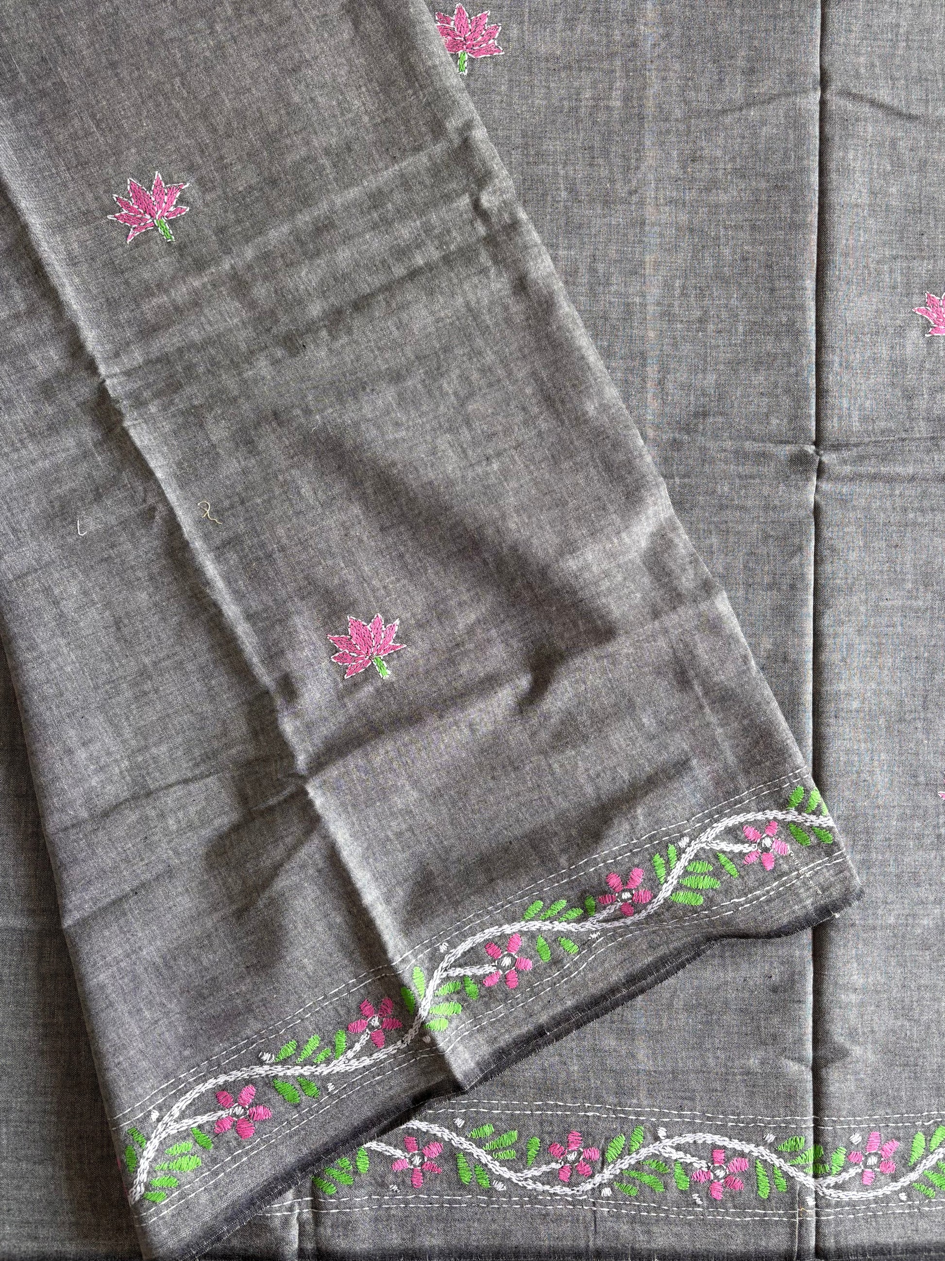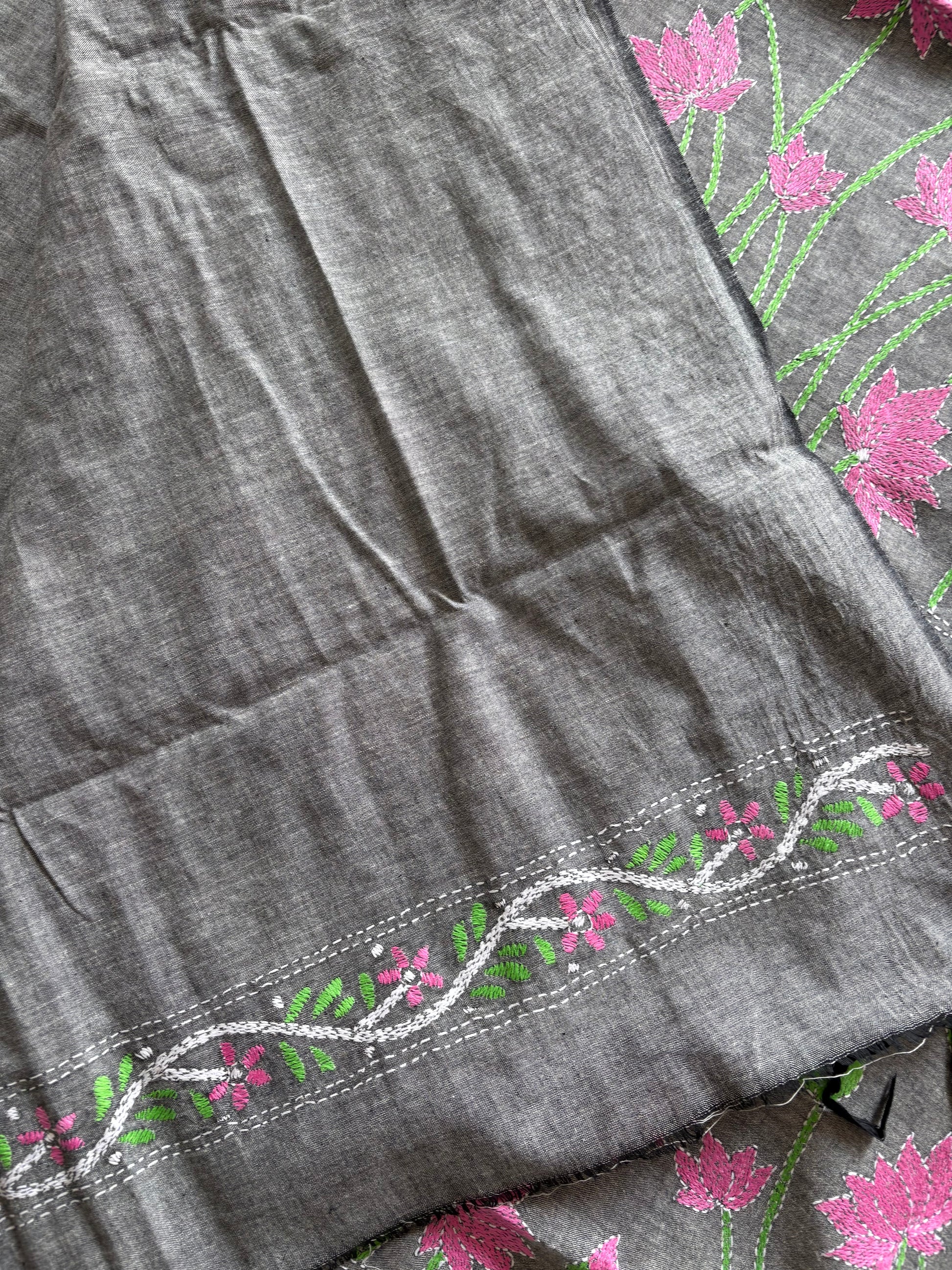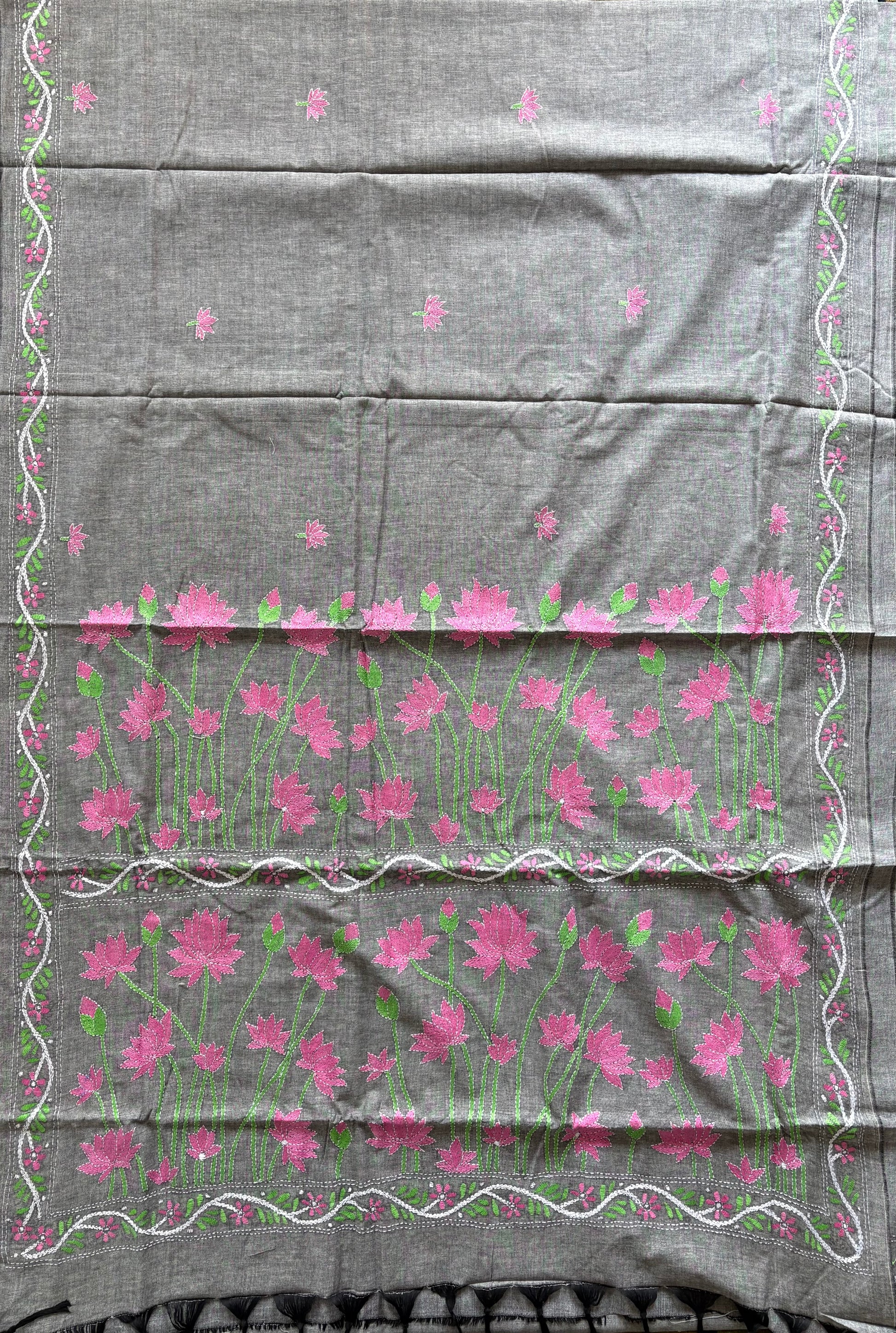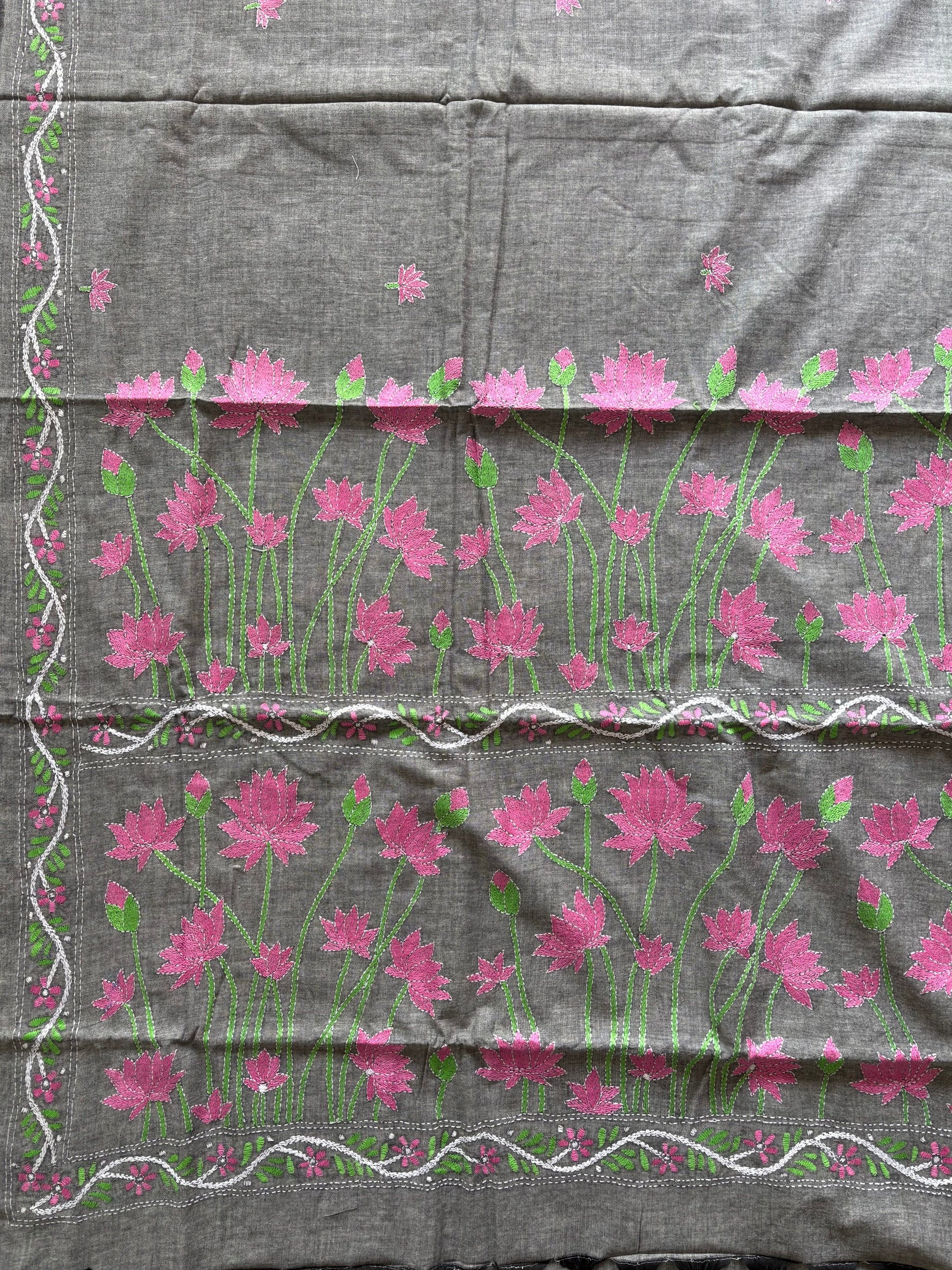 “Kantha Hand Embroidered Pure Cotton Saree.