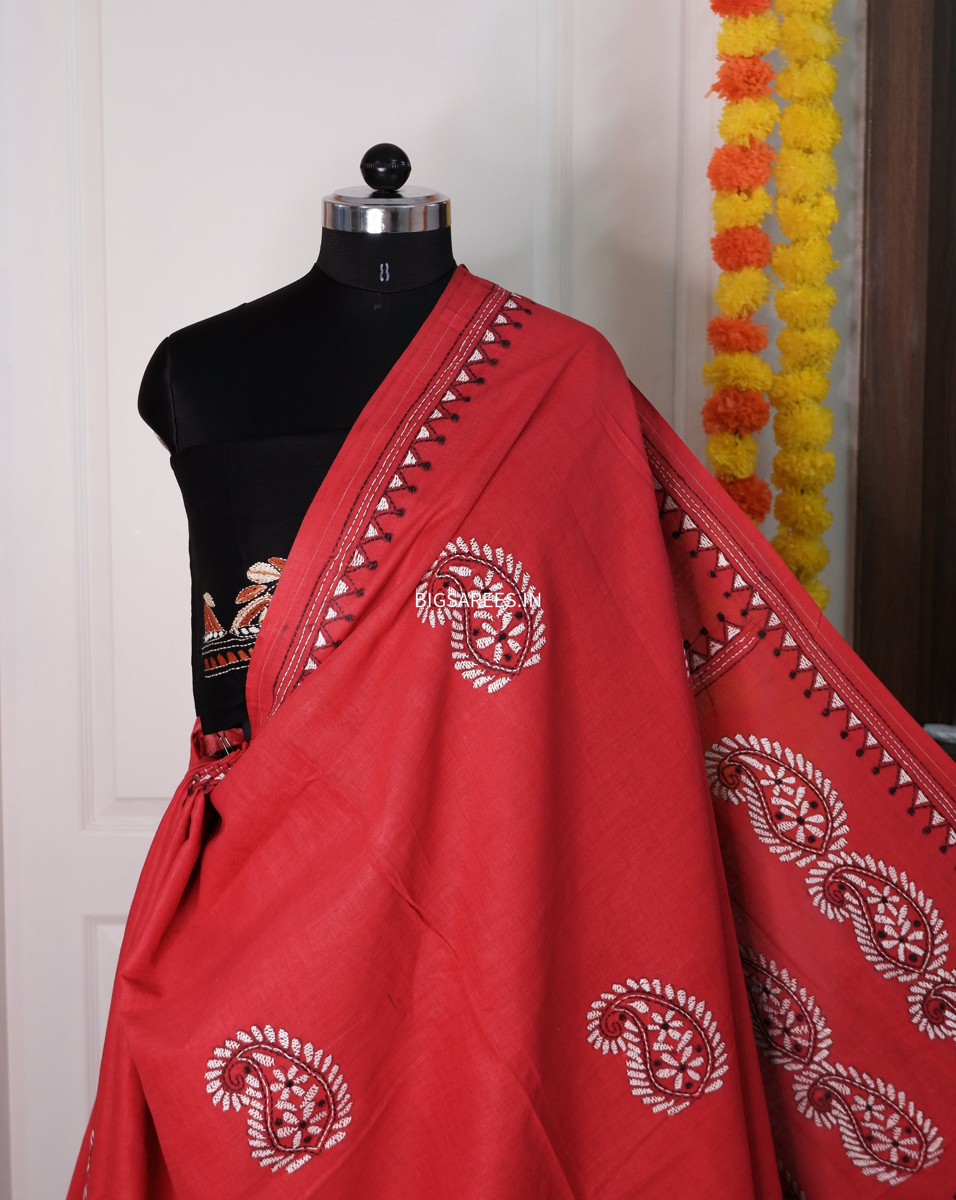 “Kantha Hand Embroidered Pure Cotton Saree.