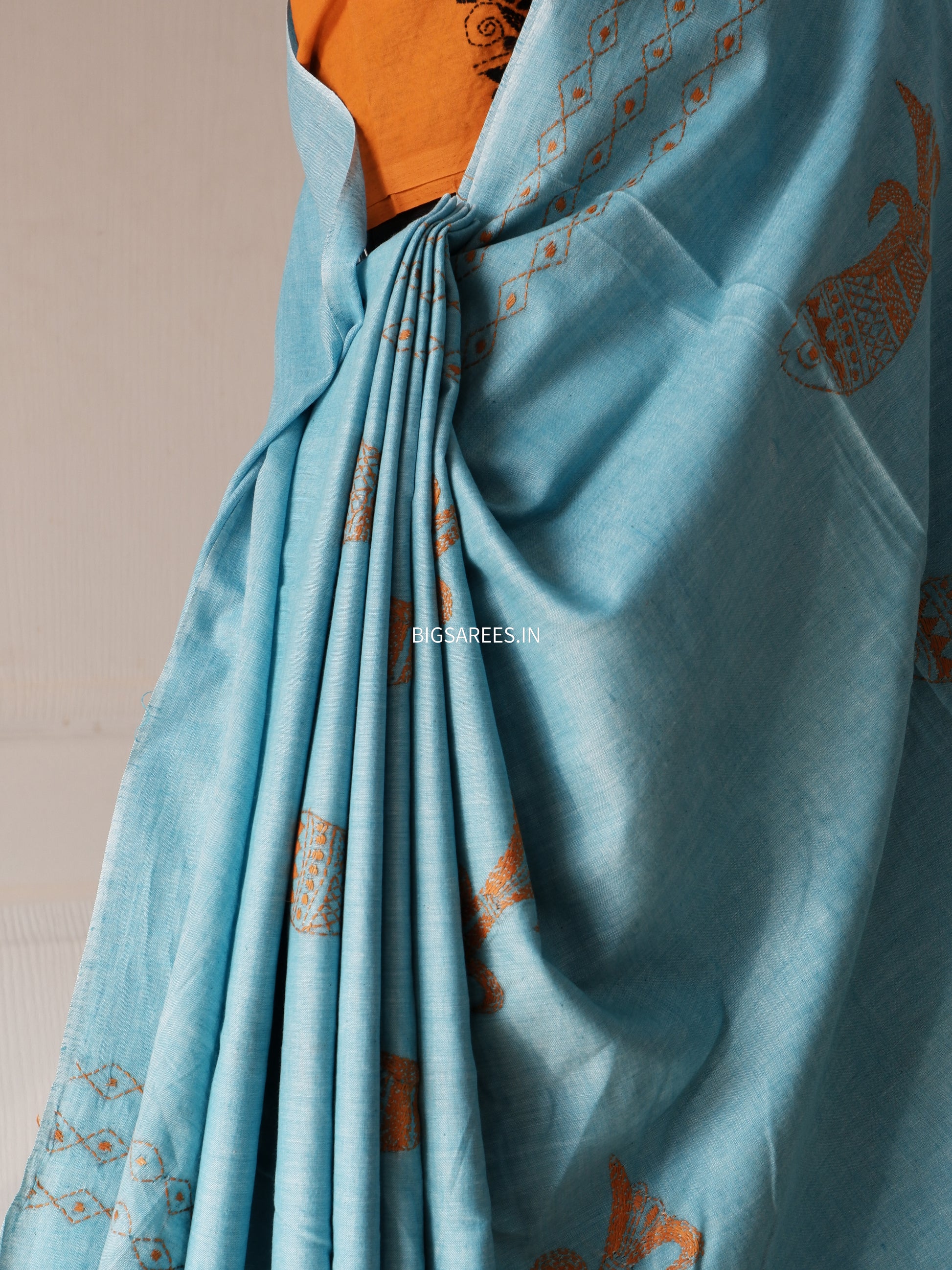“Kantha Hand Embroidered Pure Cotton Saree.