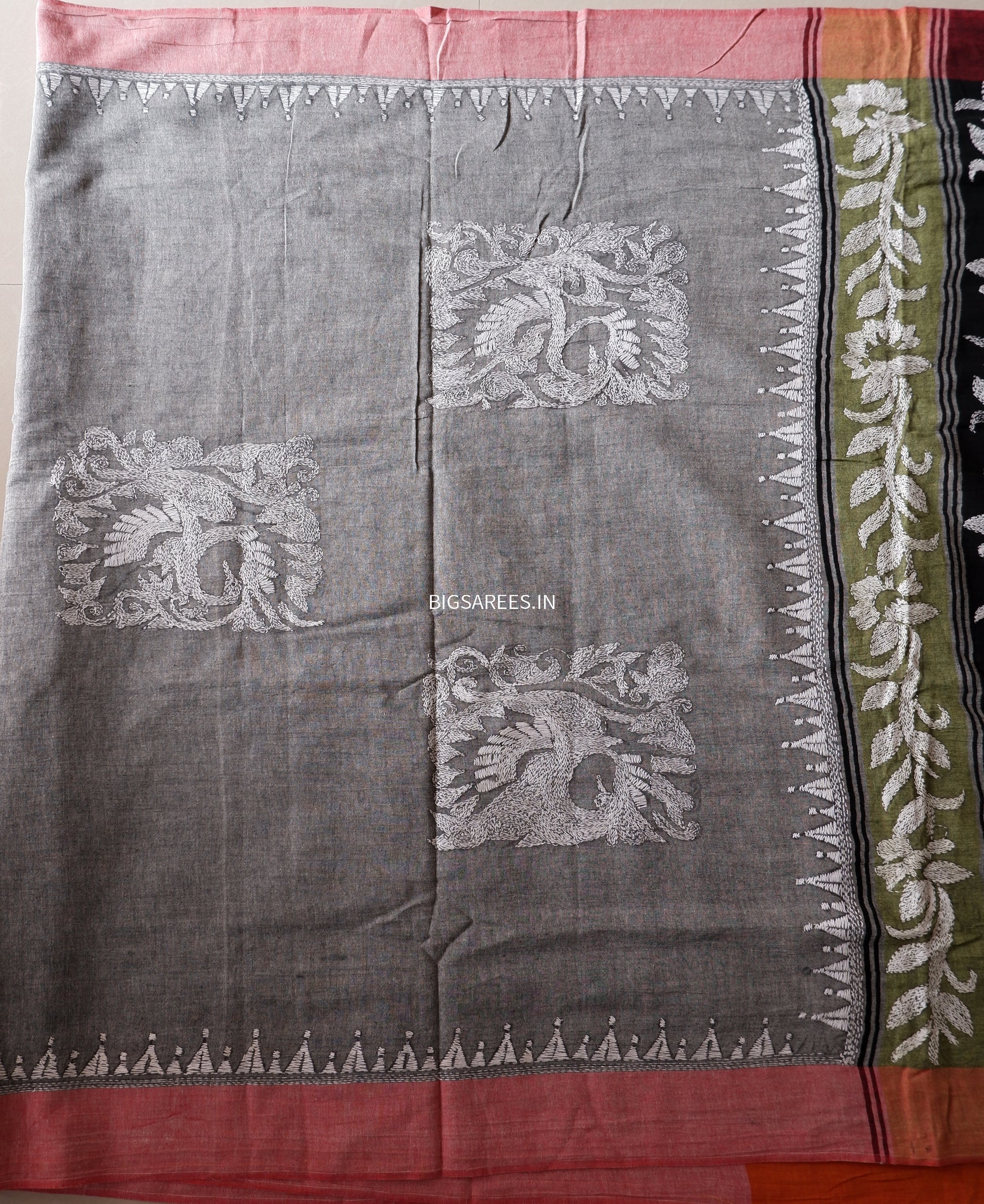“Kantha Hand Embroidered Pure Cotton Saree.