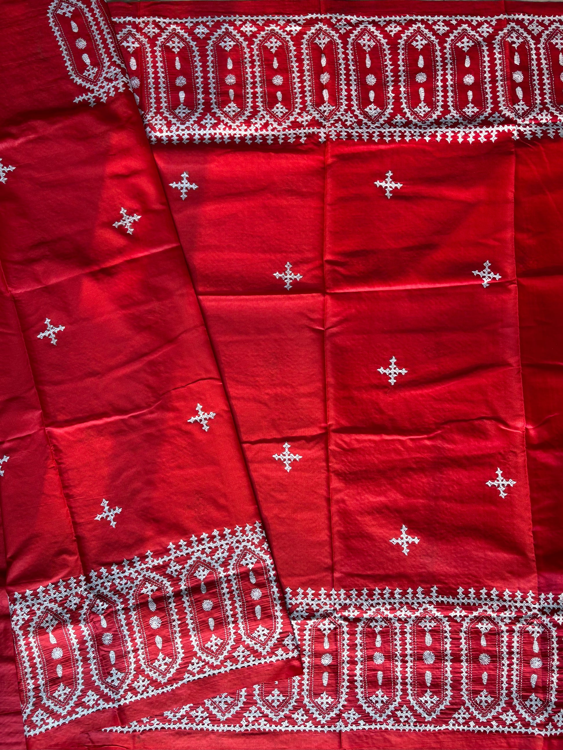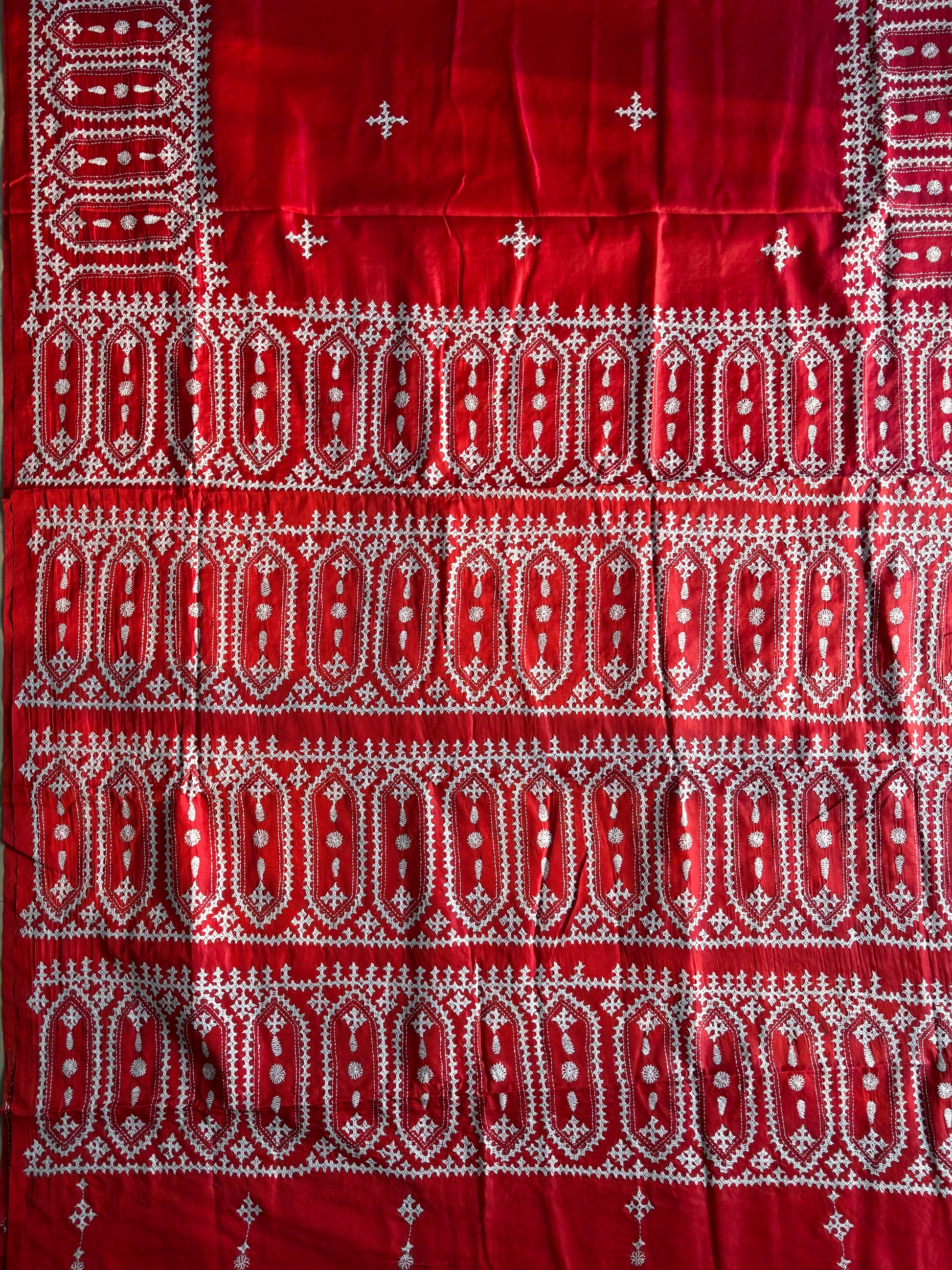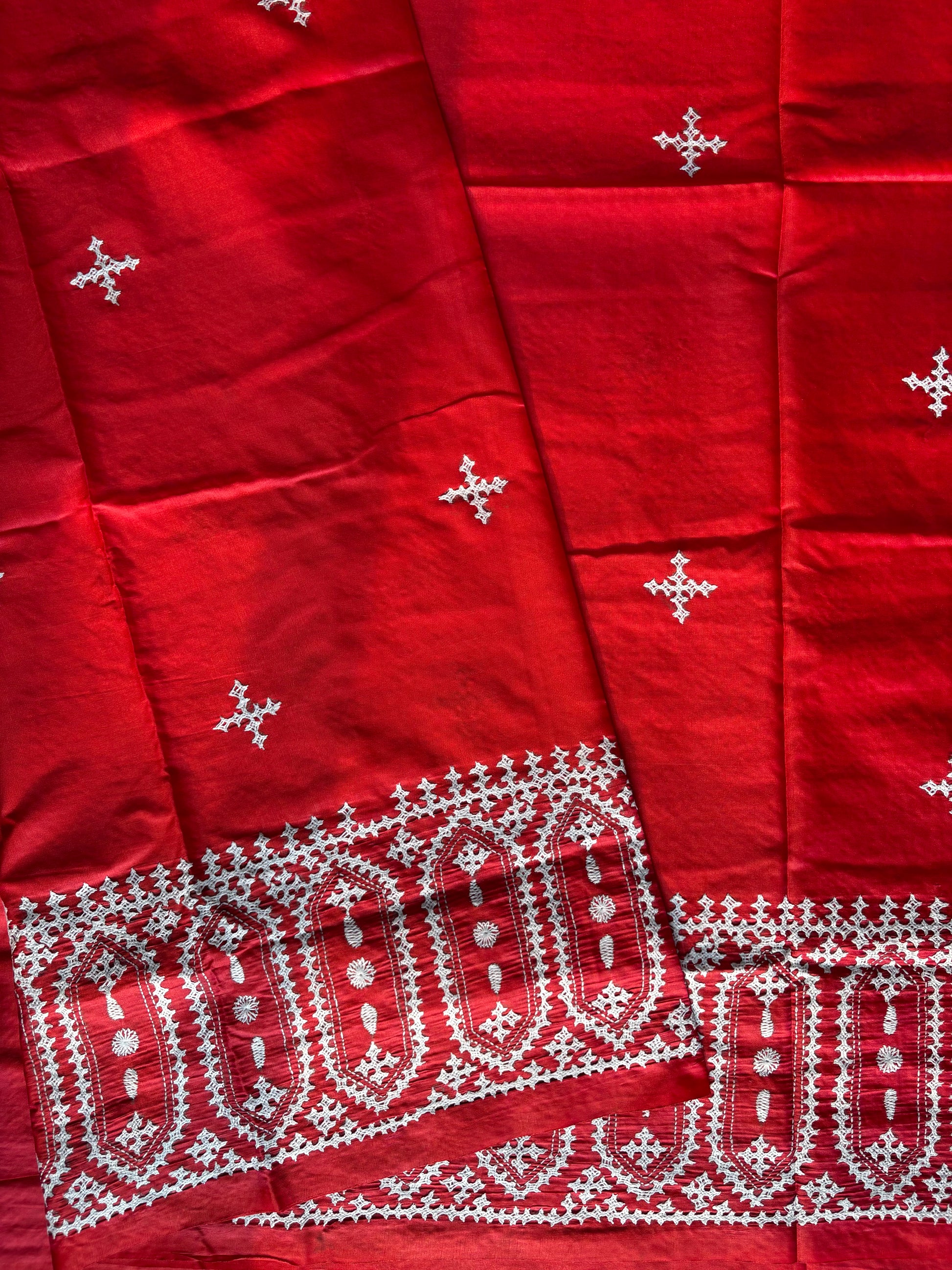 “Gujrati Stitch/Kutch Hand Embroidered Art Silk Saree.