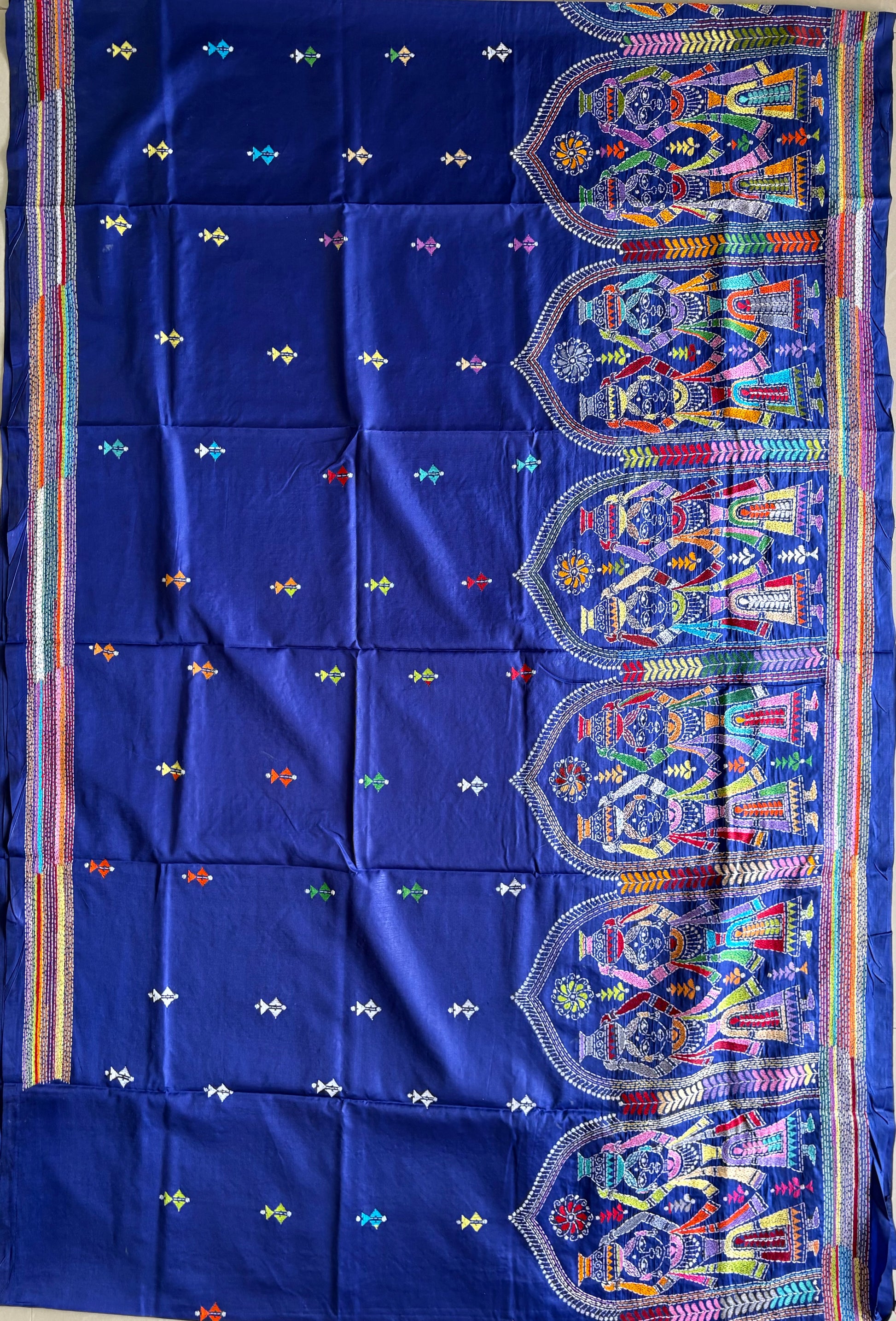 Royal Blue Kantha stitch Hand Work Art Silk Saree With Blouse
