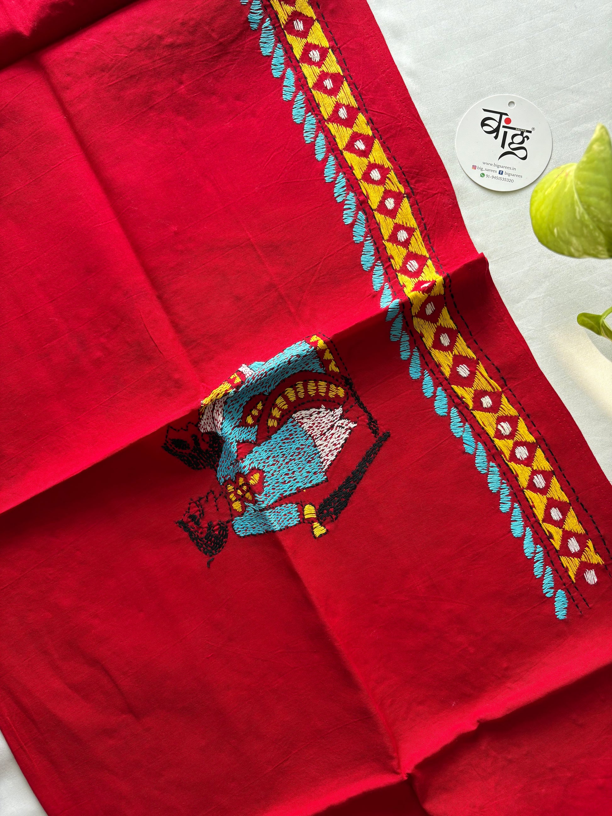 “Kantha stitch hand embroidered premium quality pipaji pure cotton Blouse piece.