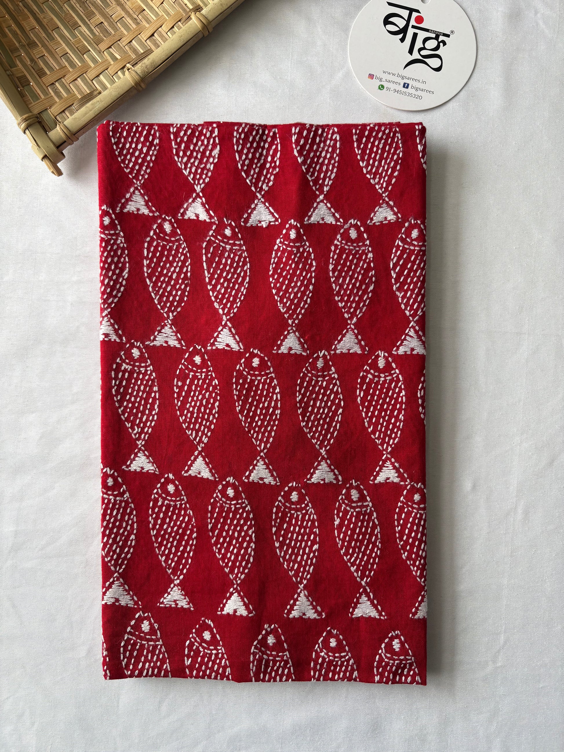 Kantha Stitch Full Embroidered Pure Cotton Blouse Piece red