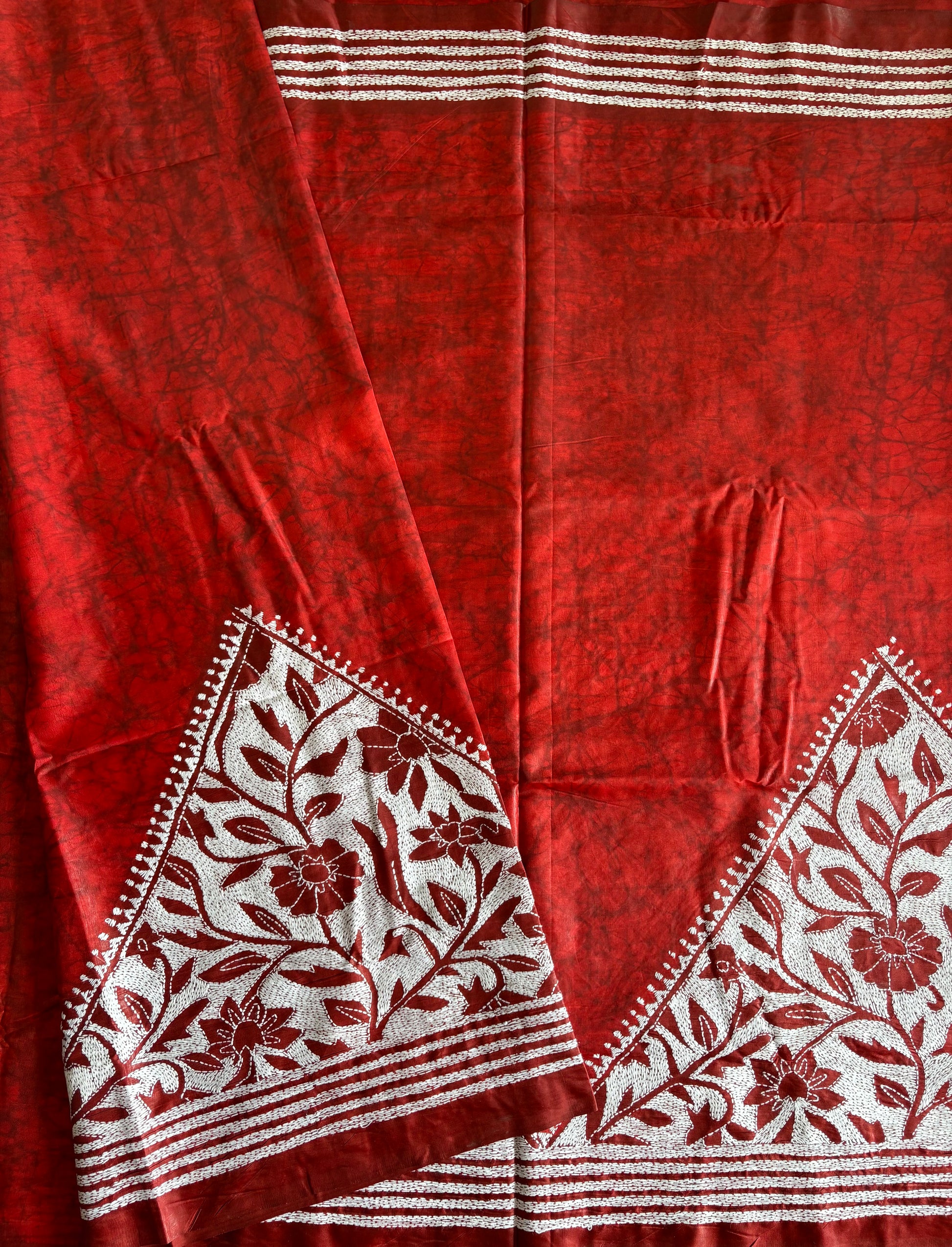 Kantha Stitch Hand Work Art Silk Saree With Blouse