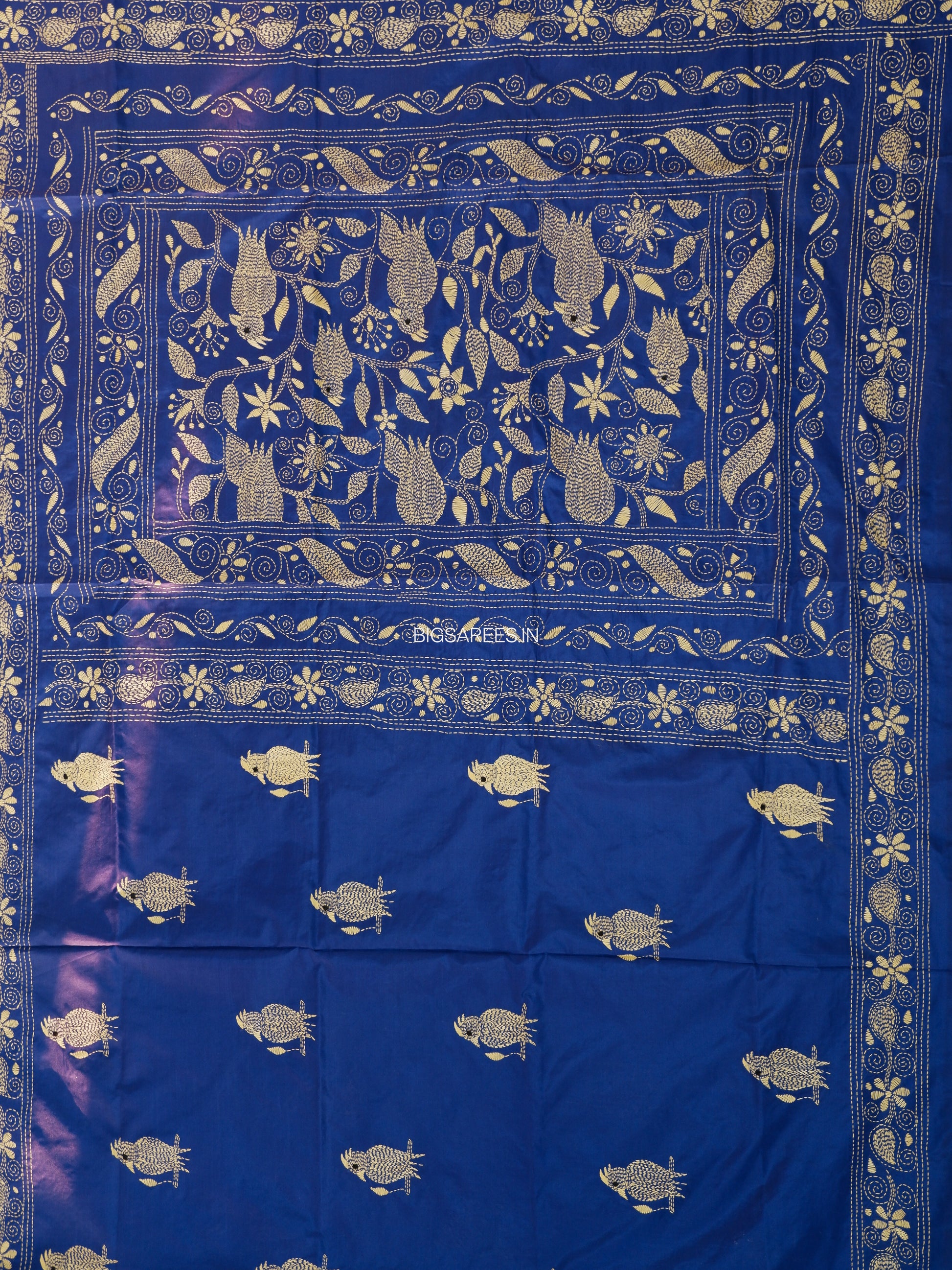 Kantha Stitch Hand Work Embroidered Art Silk Saree With Blouse