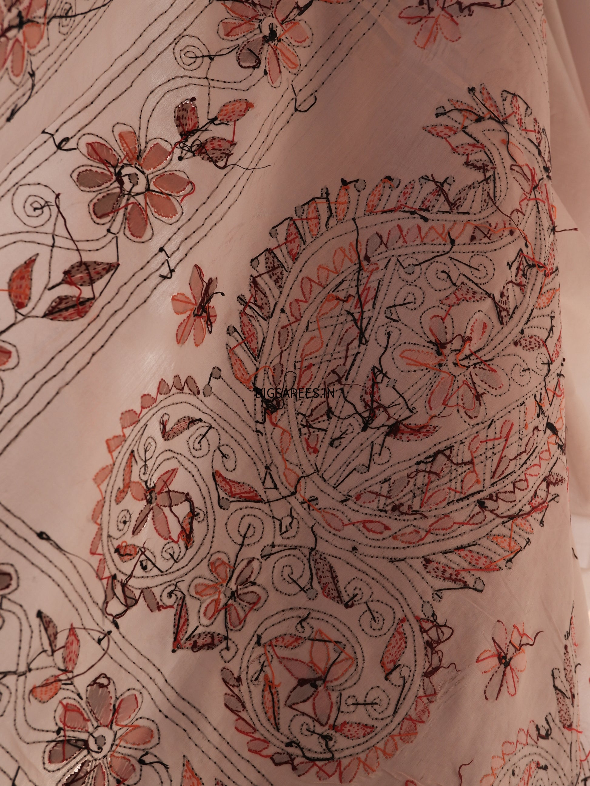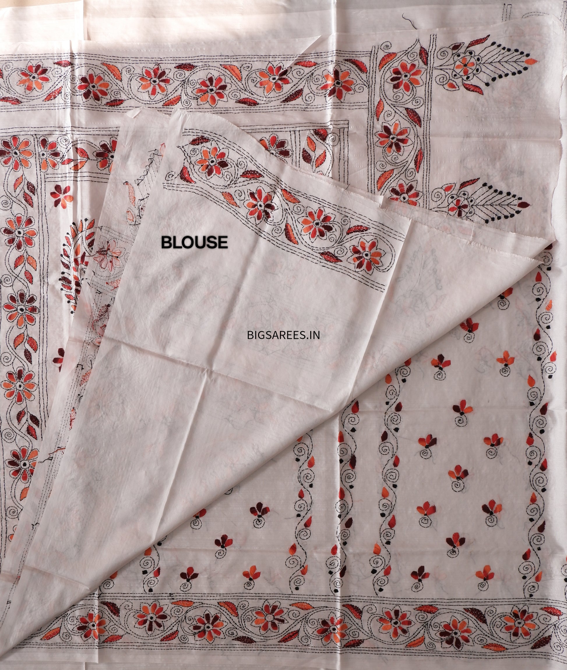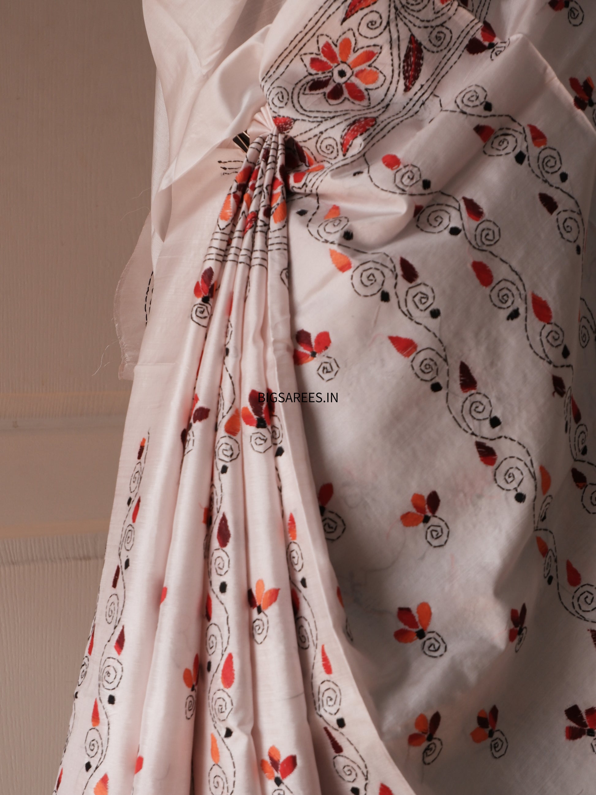 Kantha Stitch Hand Work Embroidered Art Silk Saree With Blouse