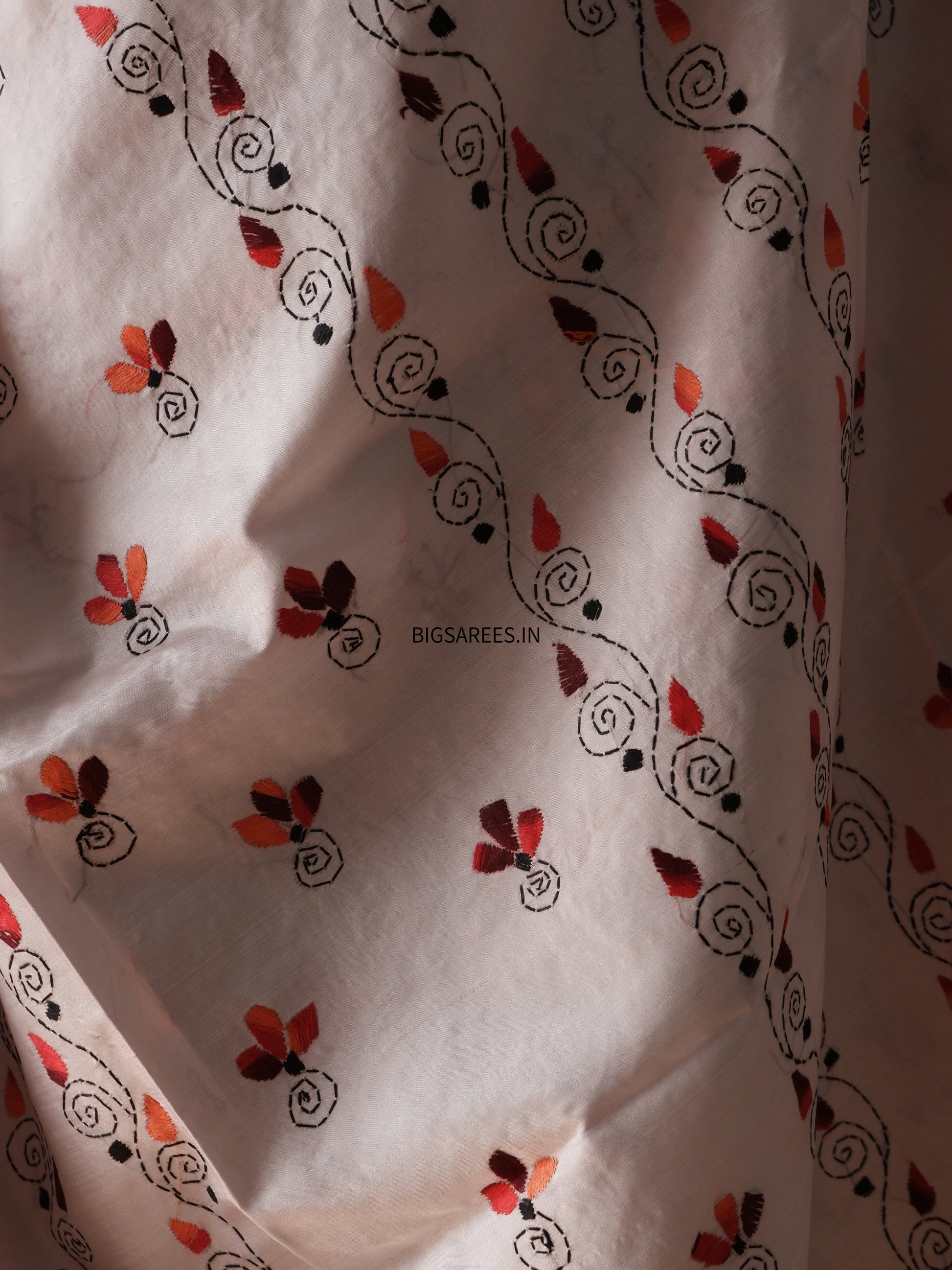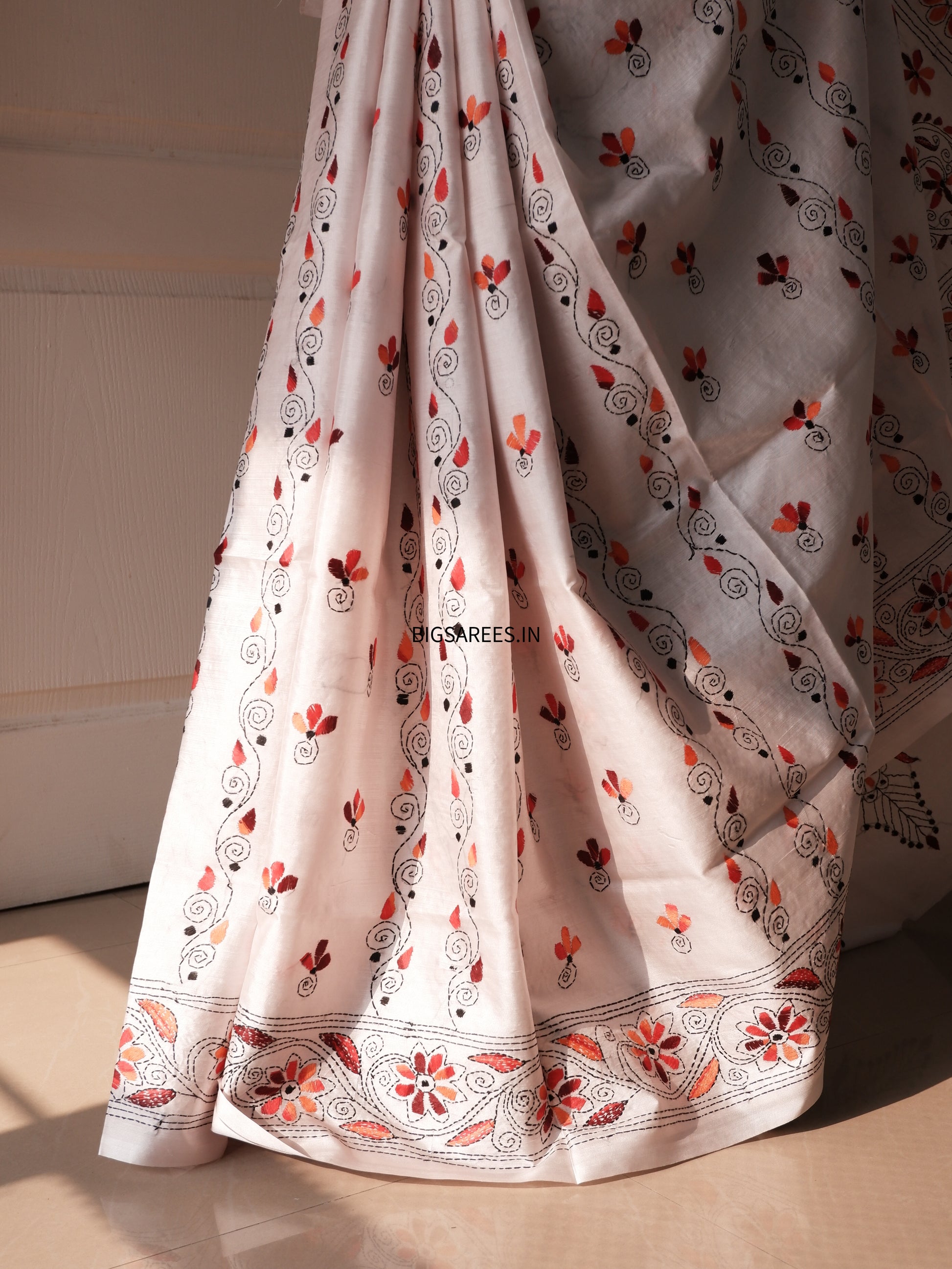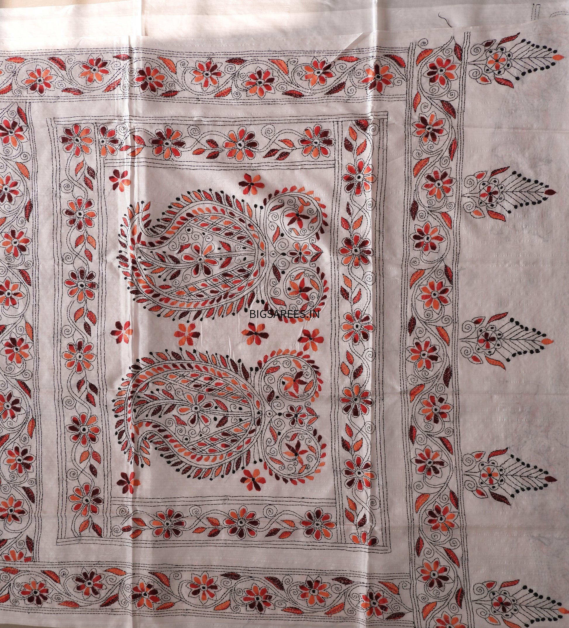 Kantha Stitch Hand Work Embroidered Art Silk Saree With Blouse