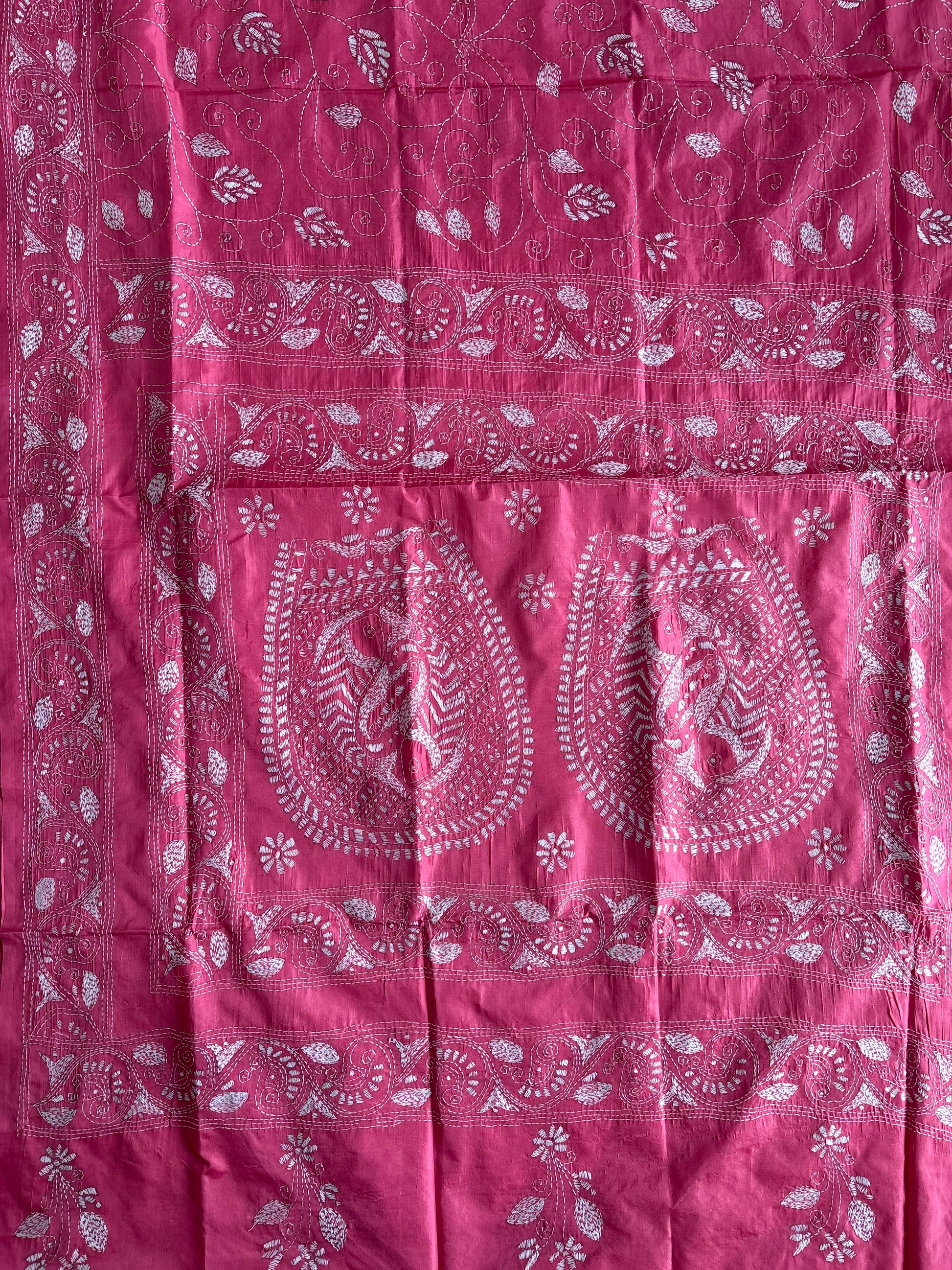 Kantha Stitch Hand Work Embroidered Art Silk Saree With Blouse