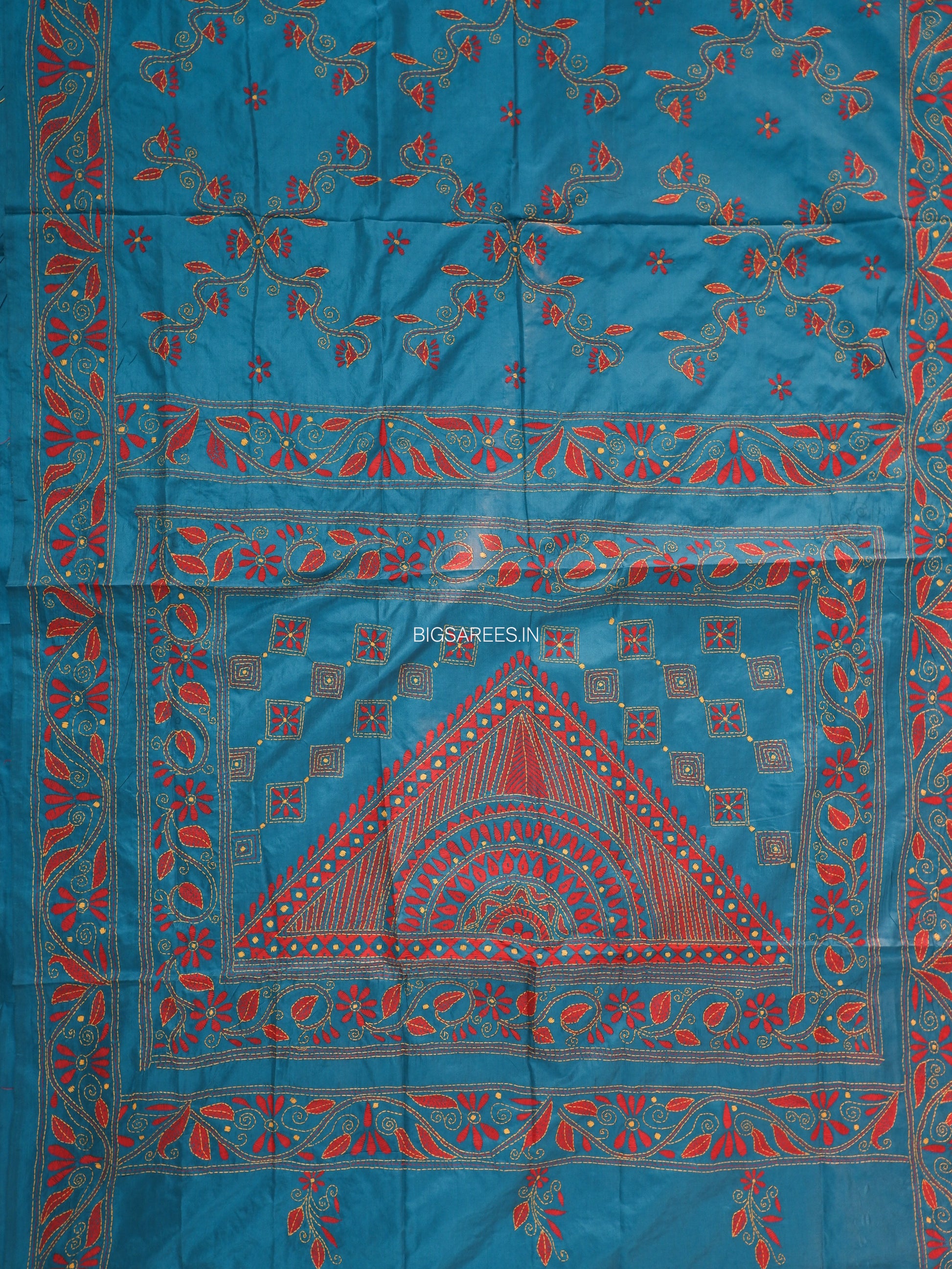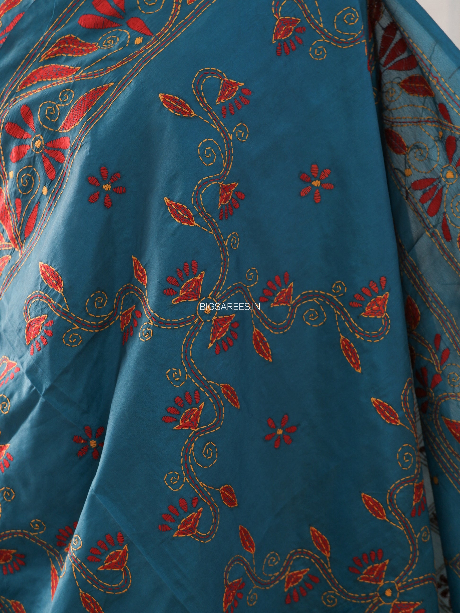 “Kantha Hand Embroidered Blended Banglore Silk/art Silk Saree With Blouse