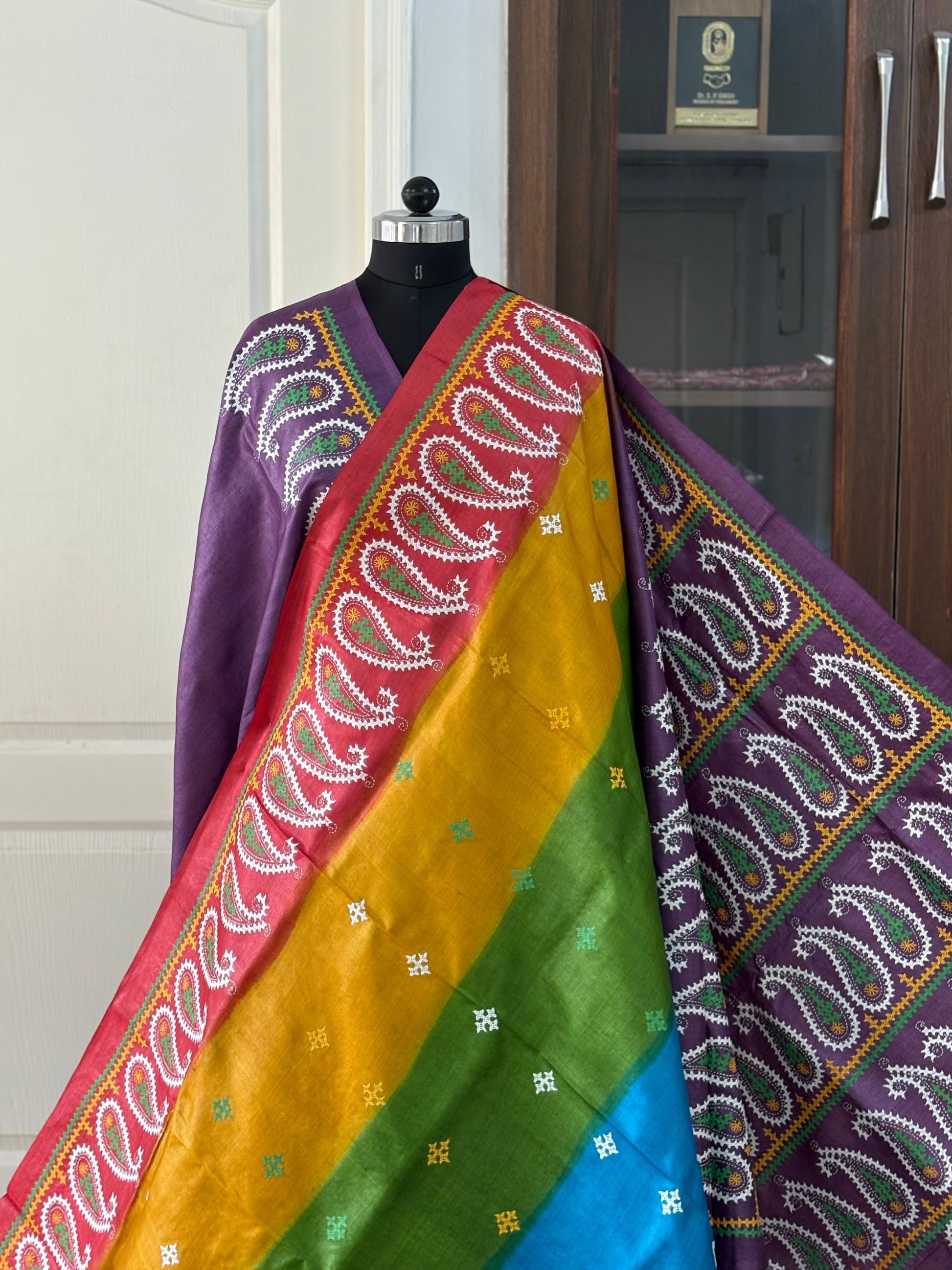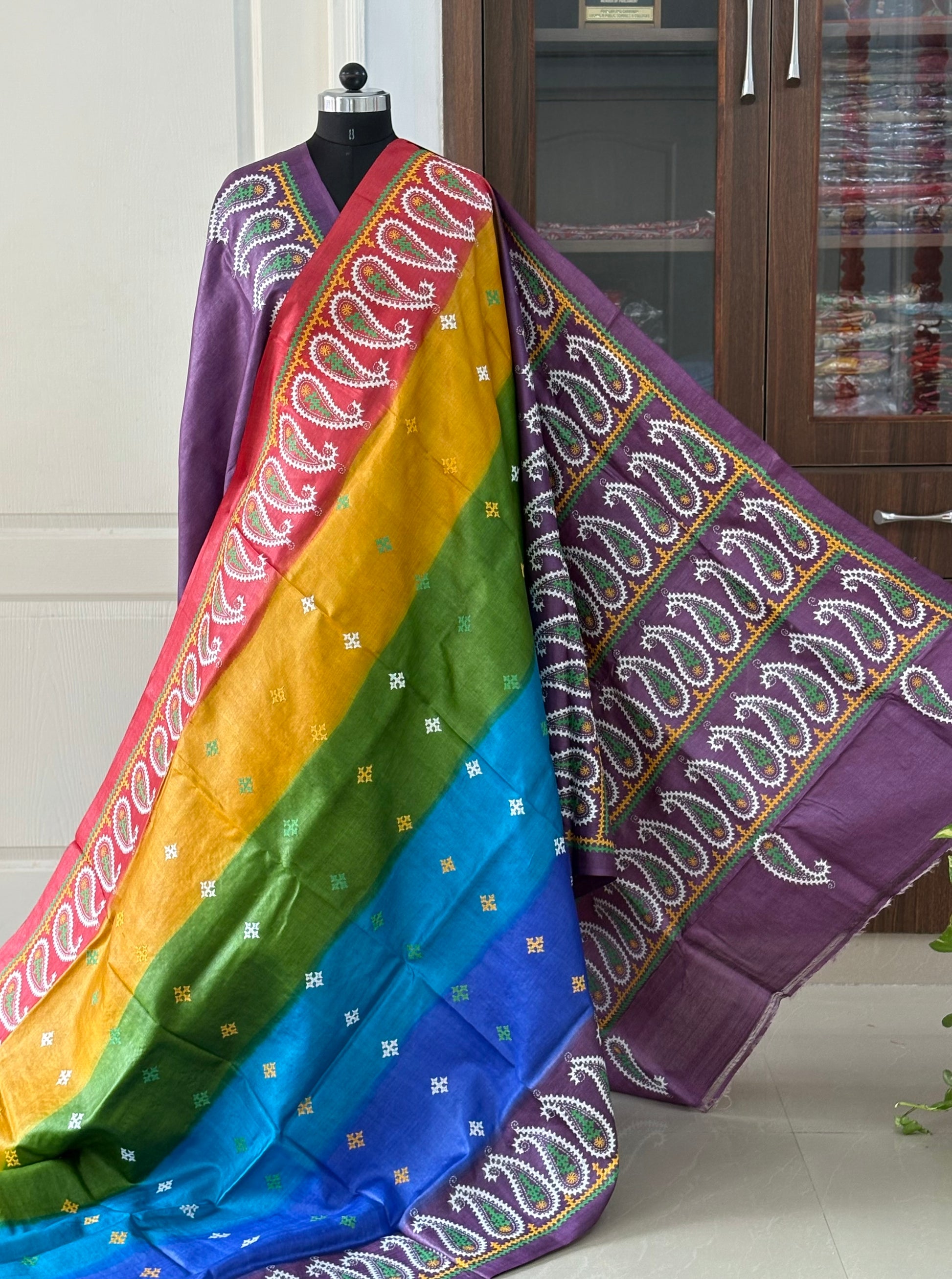 Kutch work/Gujrati stitch Hand Embroidered Pure Tassar Silk Saree