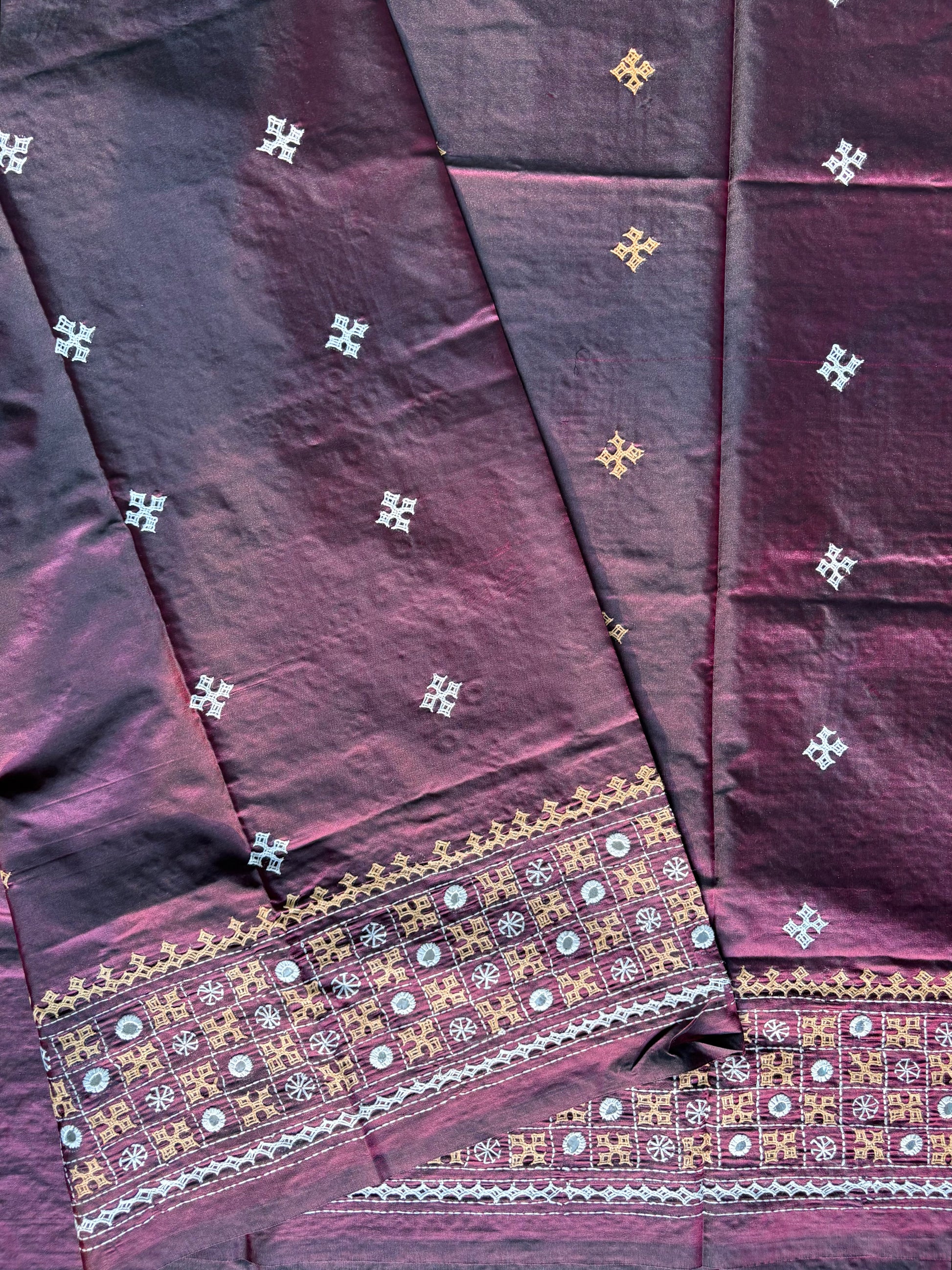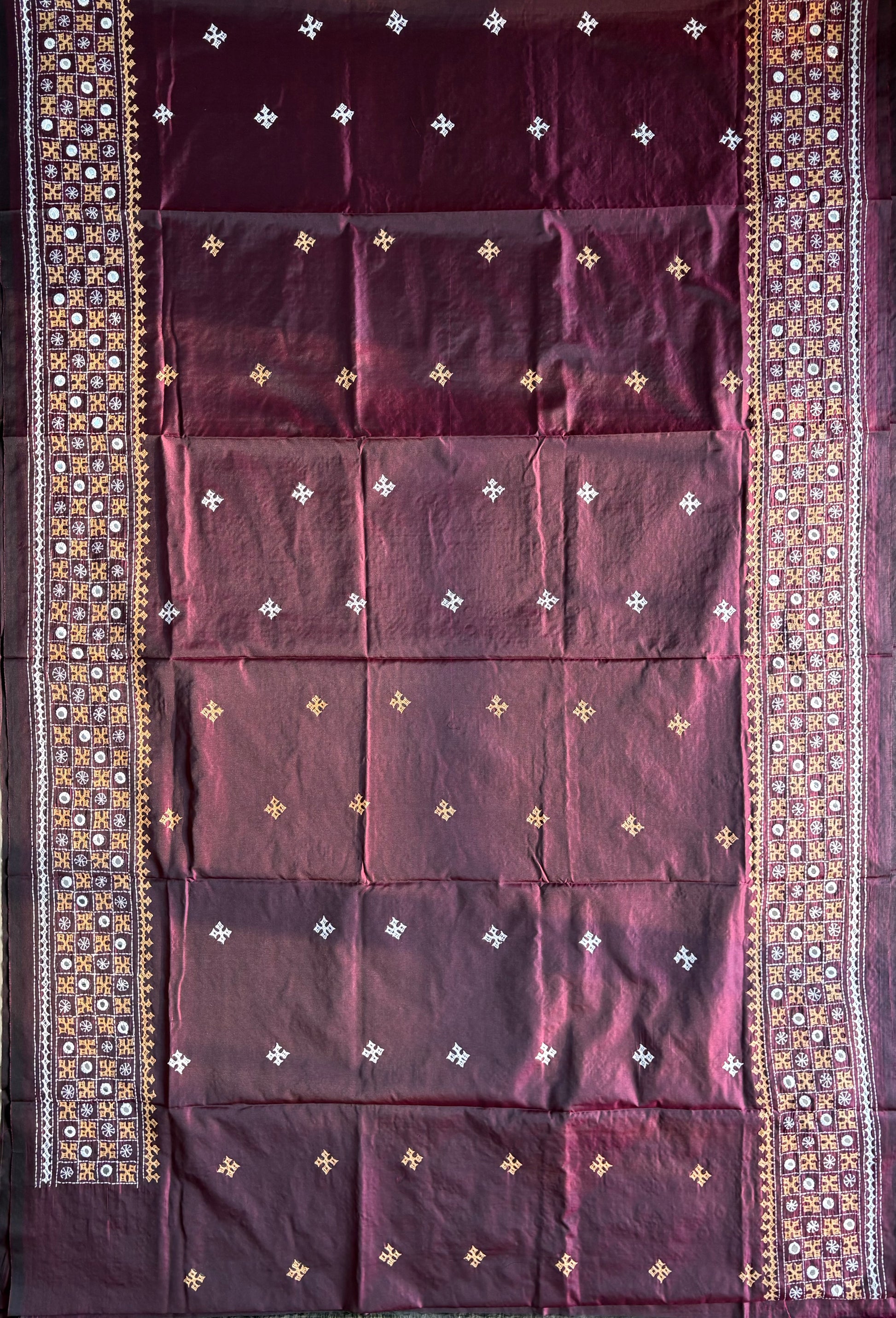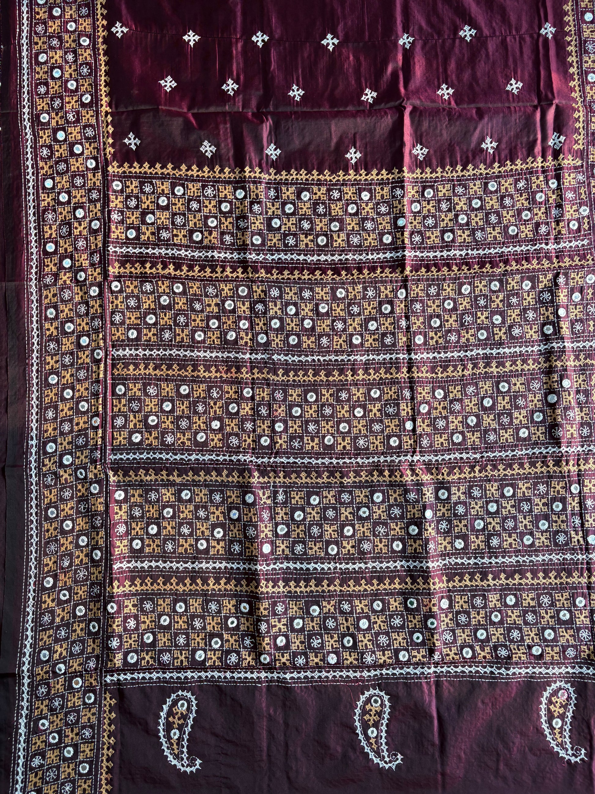 “Gujrati Stitch/Kutch Hand Embroidered Art Silk Saree.