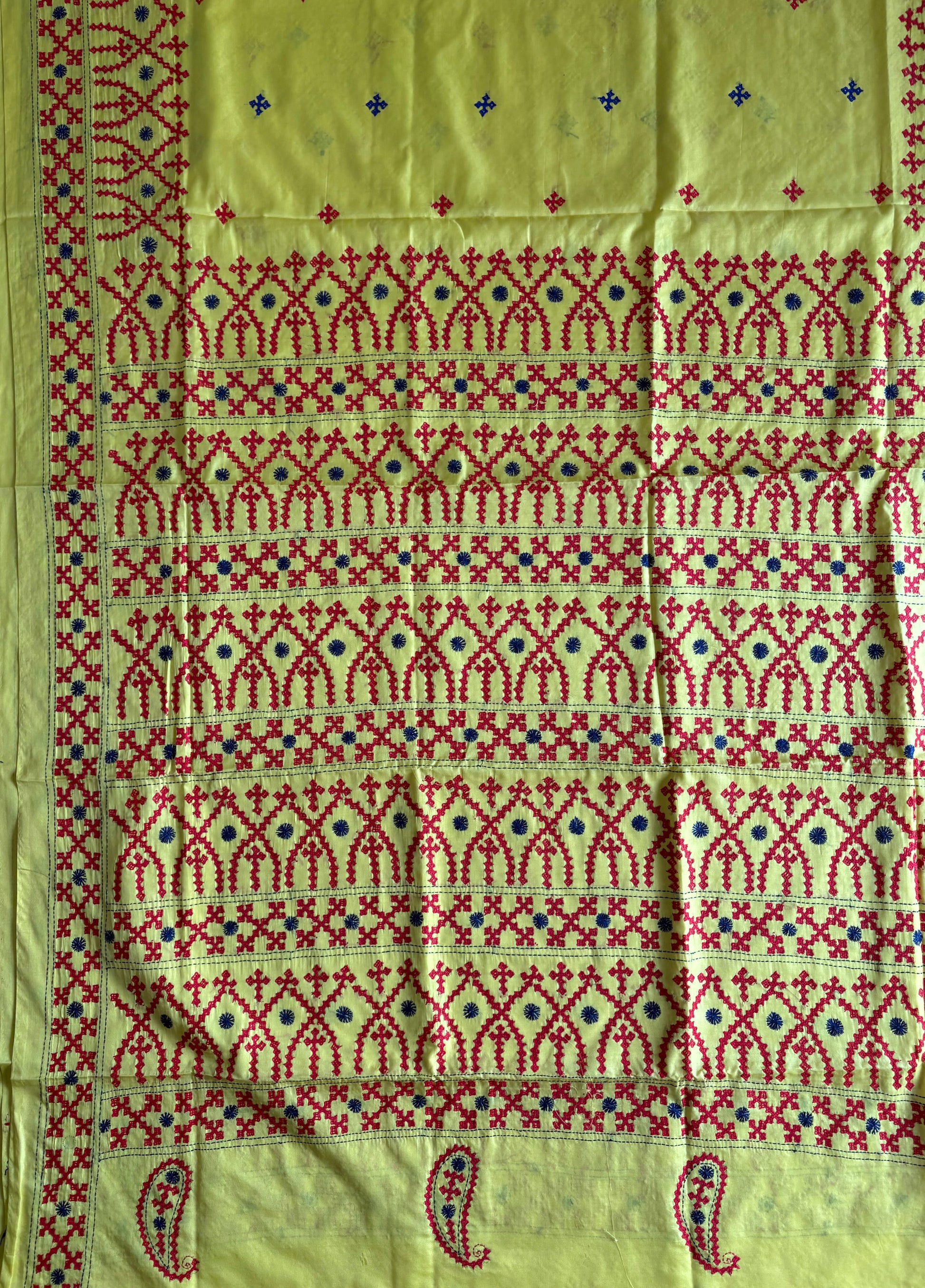 “Gujrati Stitch/Kutch Hand Embroidered Art Silk Saree.