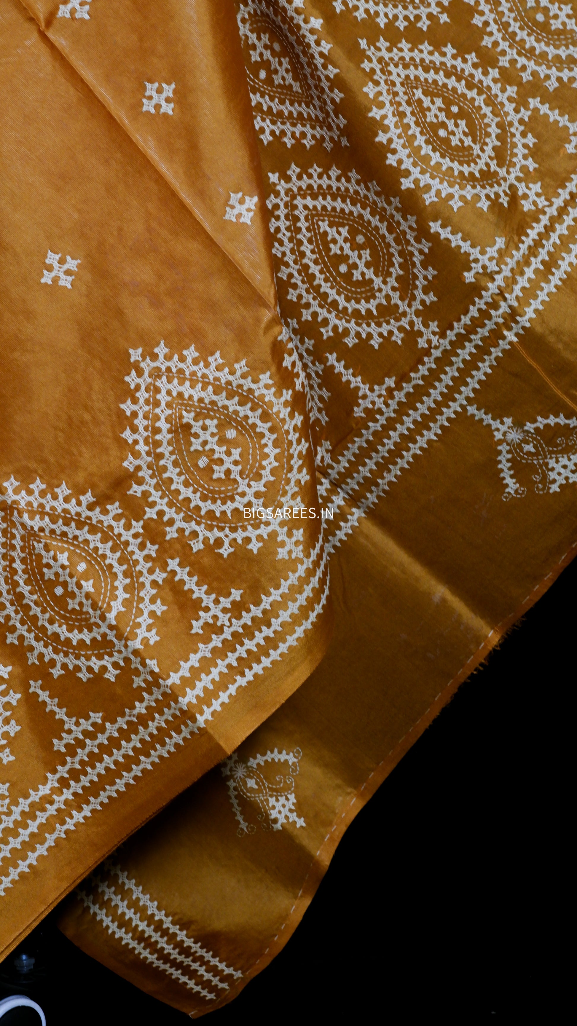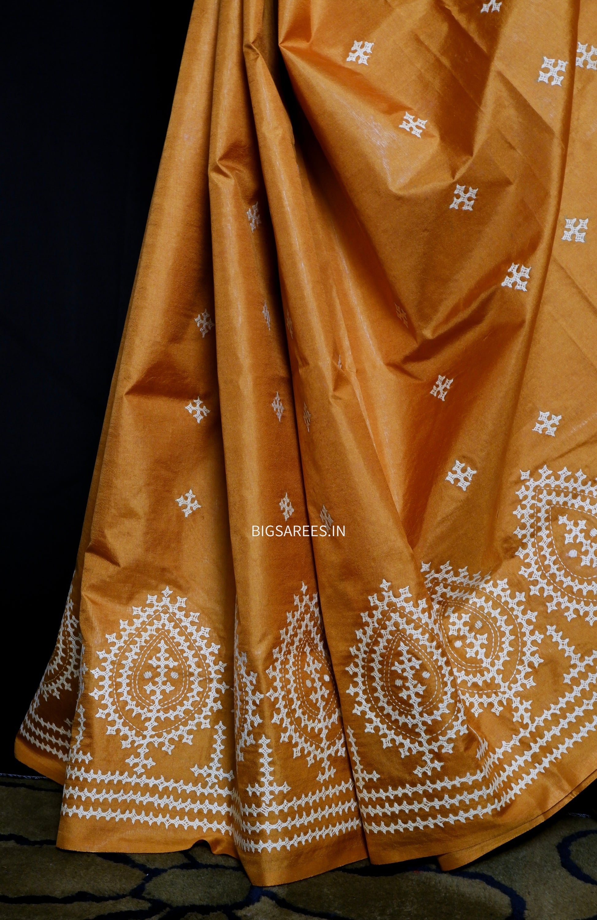 “Kutch Hand Embroidered Pure Bangalore Silk Saree.”