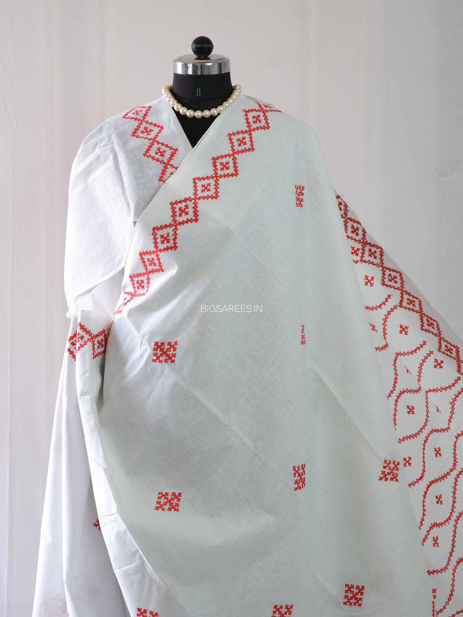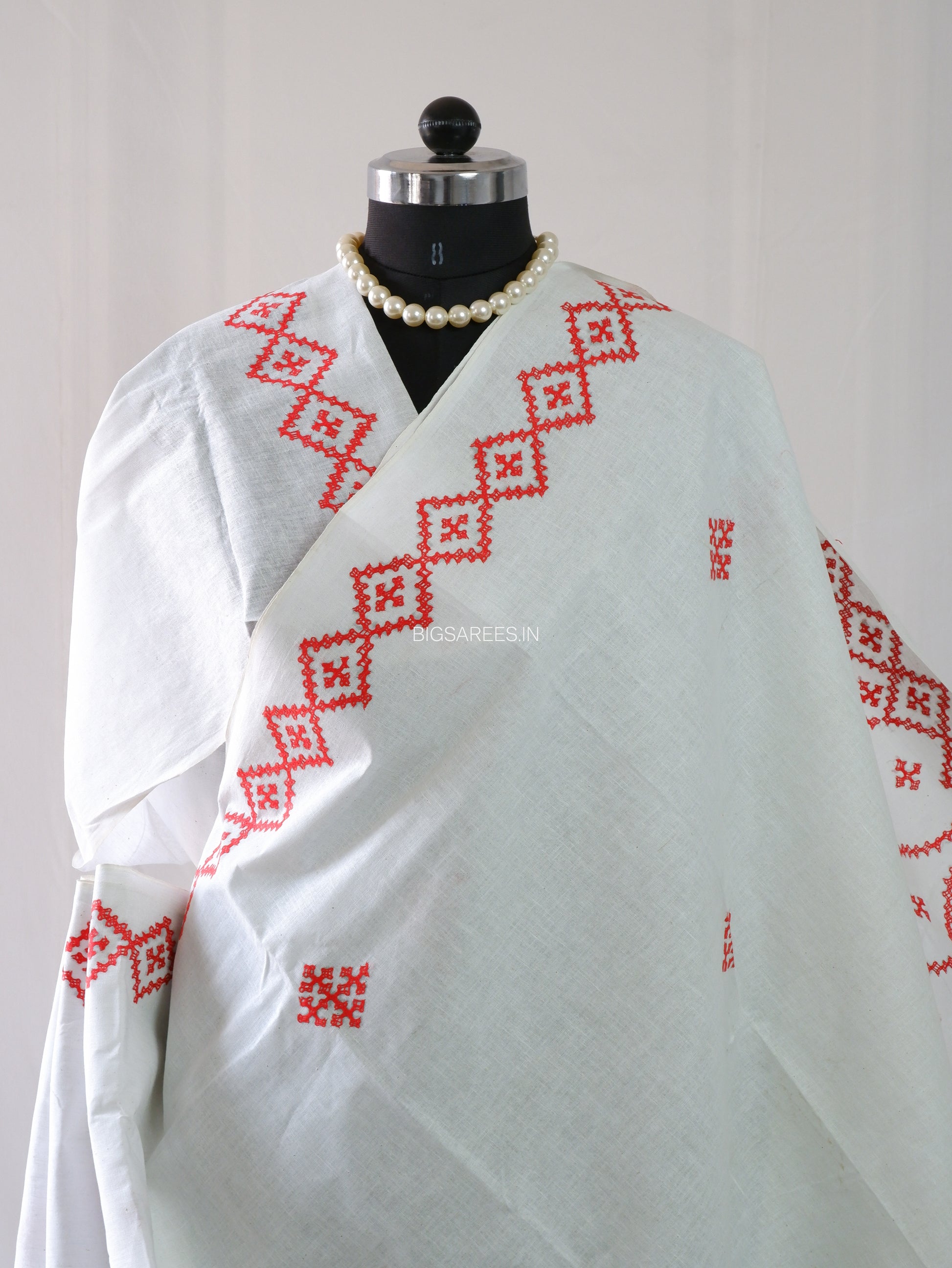 Kutchi Hand-Embroidered Saree | Khadi Cotton | White