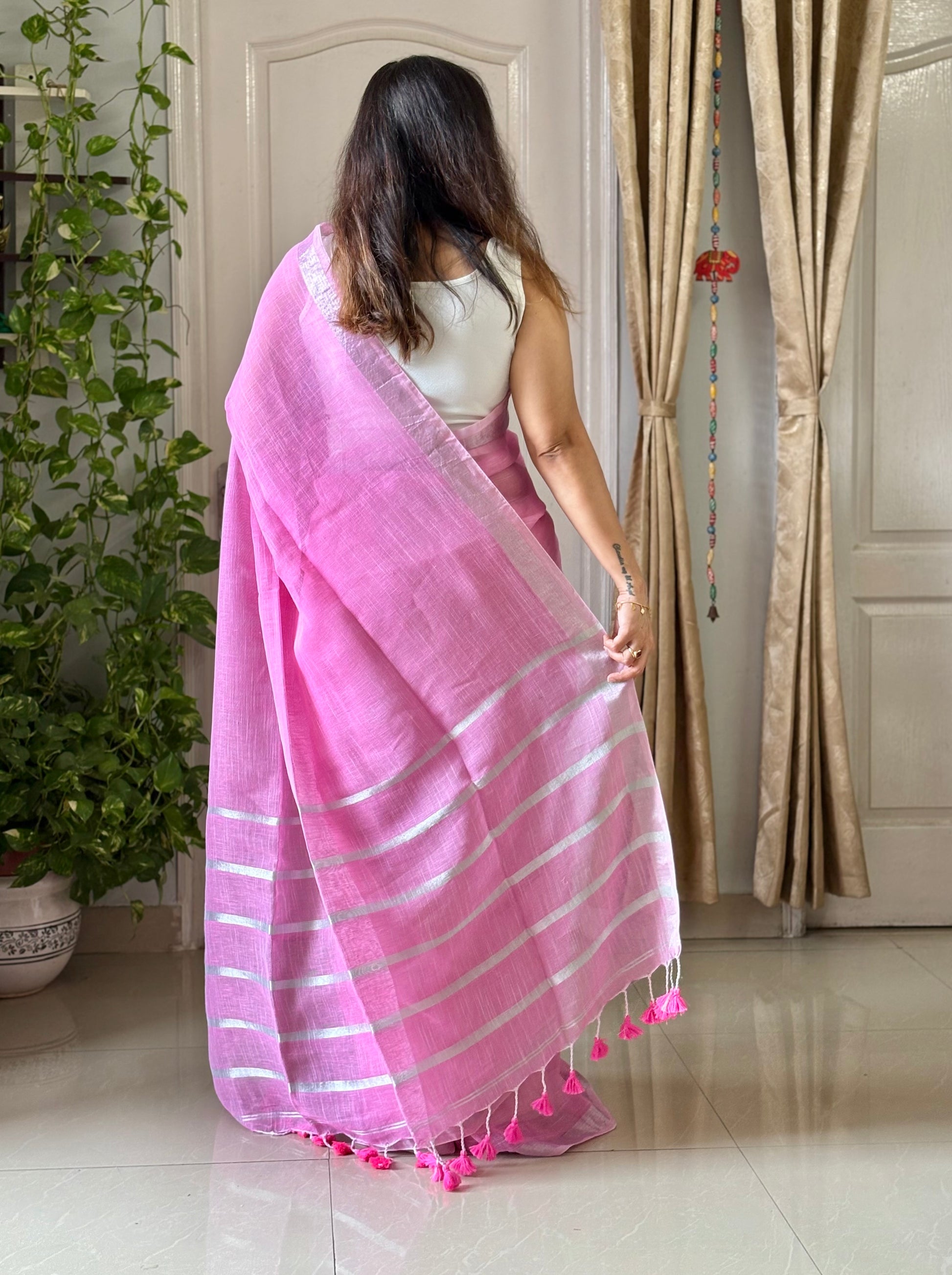 “Beautiful, Linen By Linen Saree With Blouse. Pallu Accessorized With Beautiful Tassels.