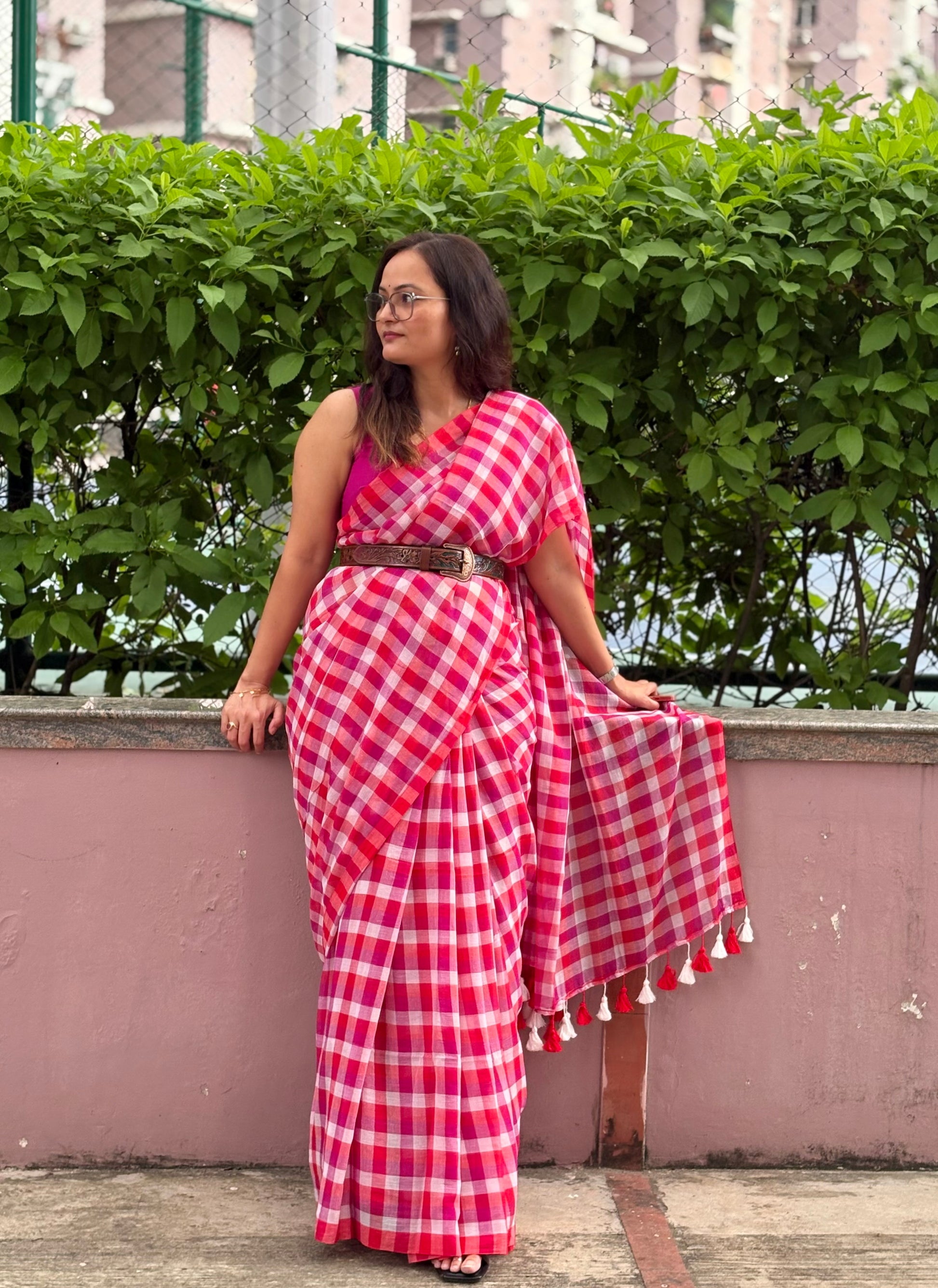 “Beautiful, Very Light Weight Very Very Soft Plain Mul Cotton Saree. Accessorized With Tessels.”