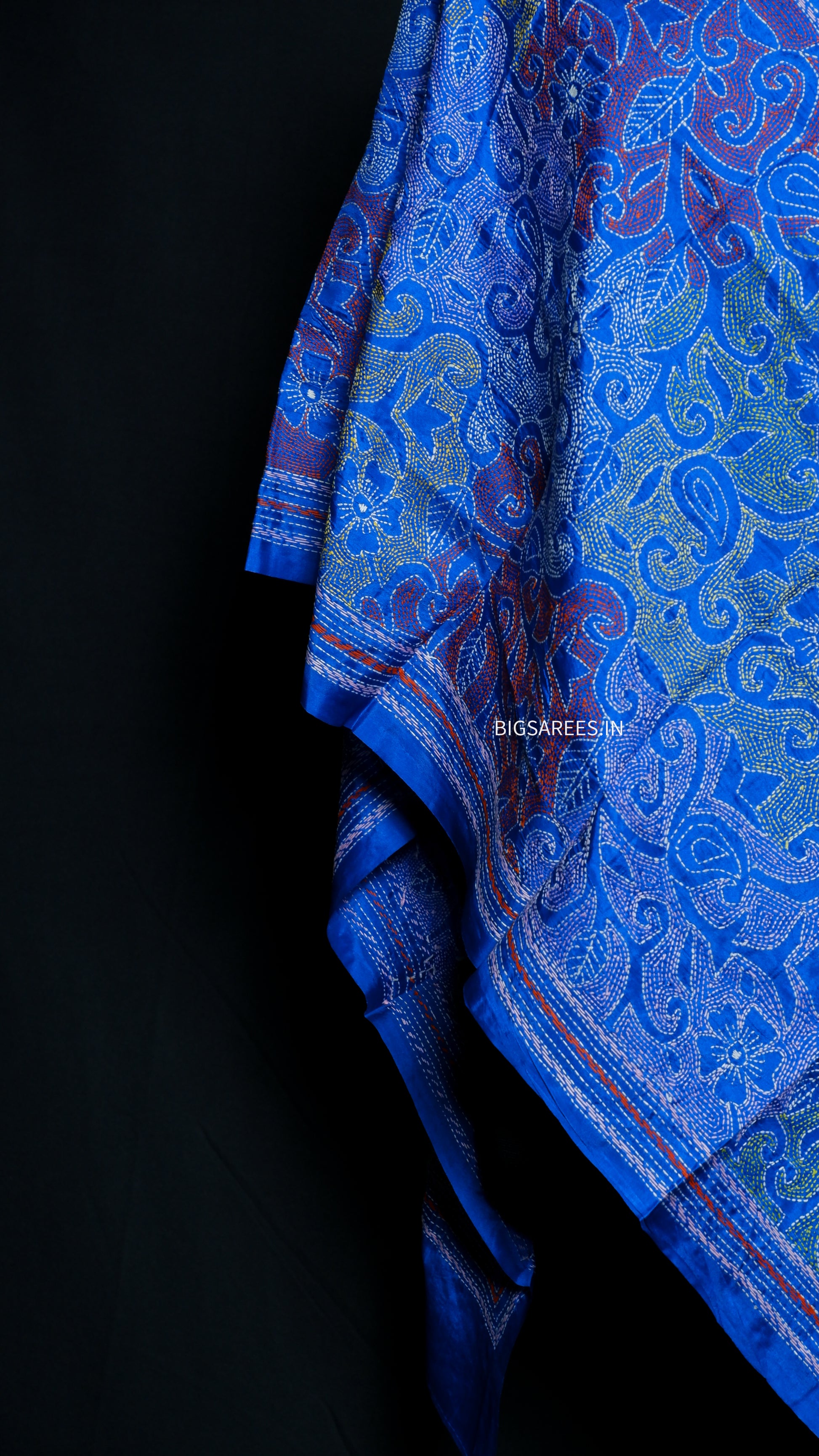 Kantha Art Silk Stole | Cobalt Blue | 22" |