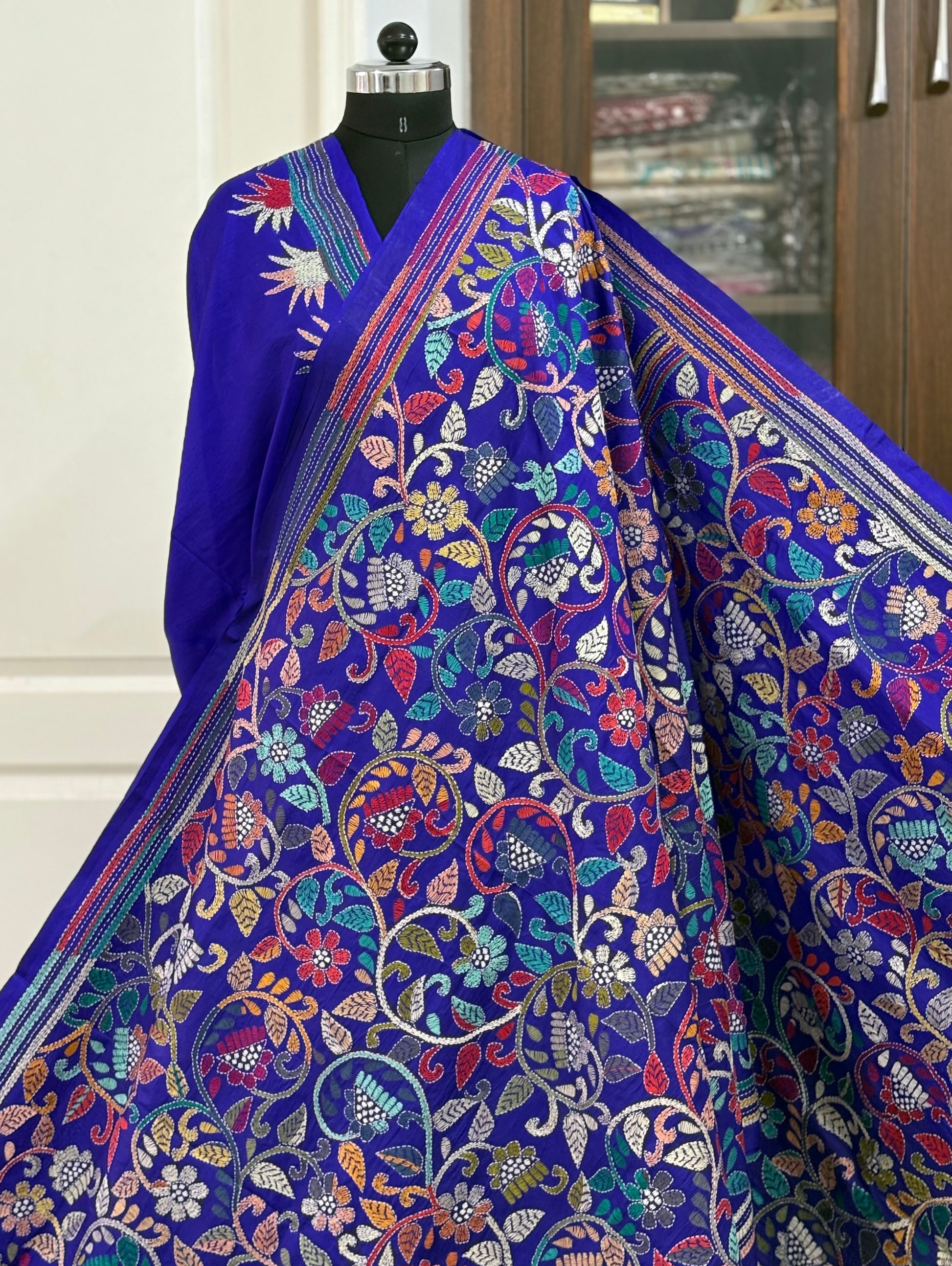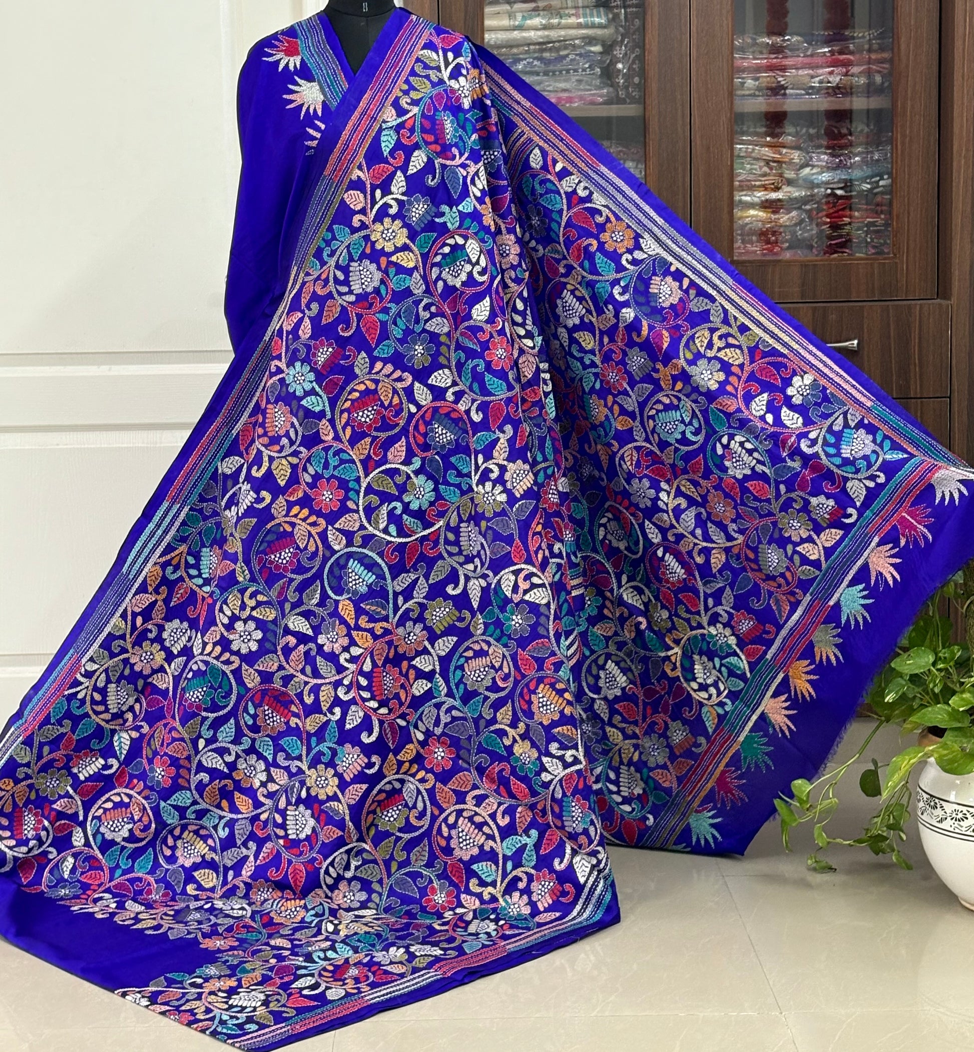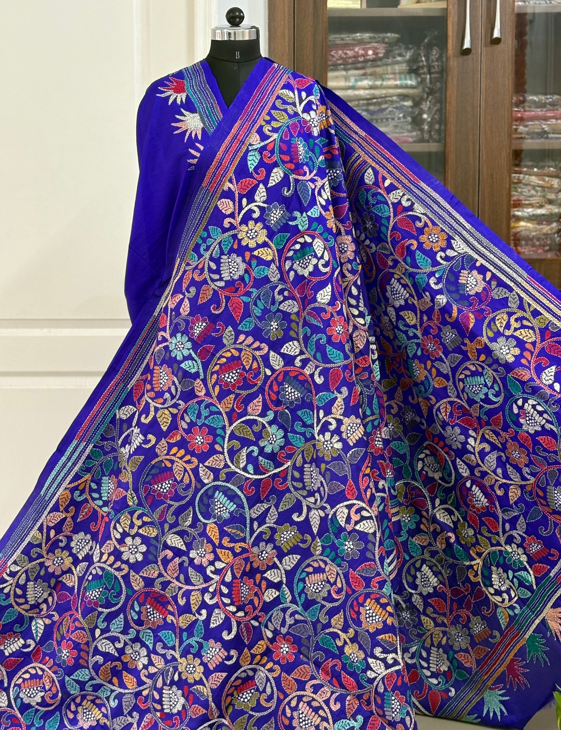 Kantha Hand Embroidered Pure Banglore Silk Saree (Silk Marked)