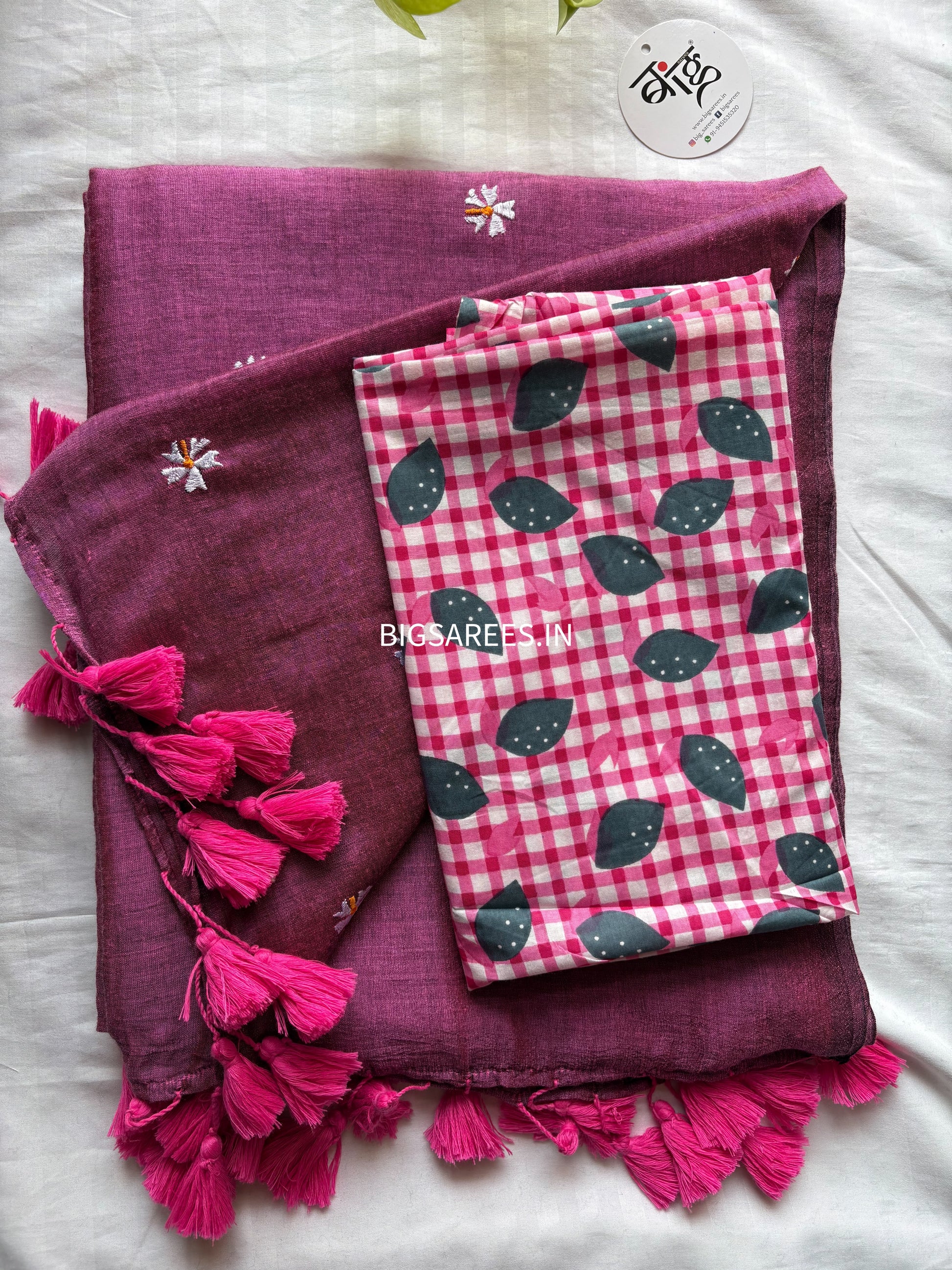 Night Jasmine Motif Saree With Blouse | Acrylic Cotton Blend | Tulip Pink