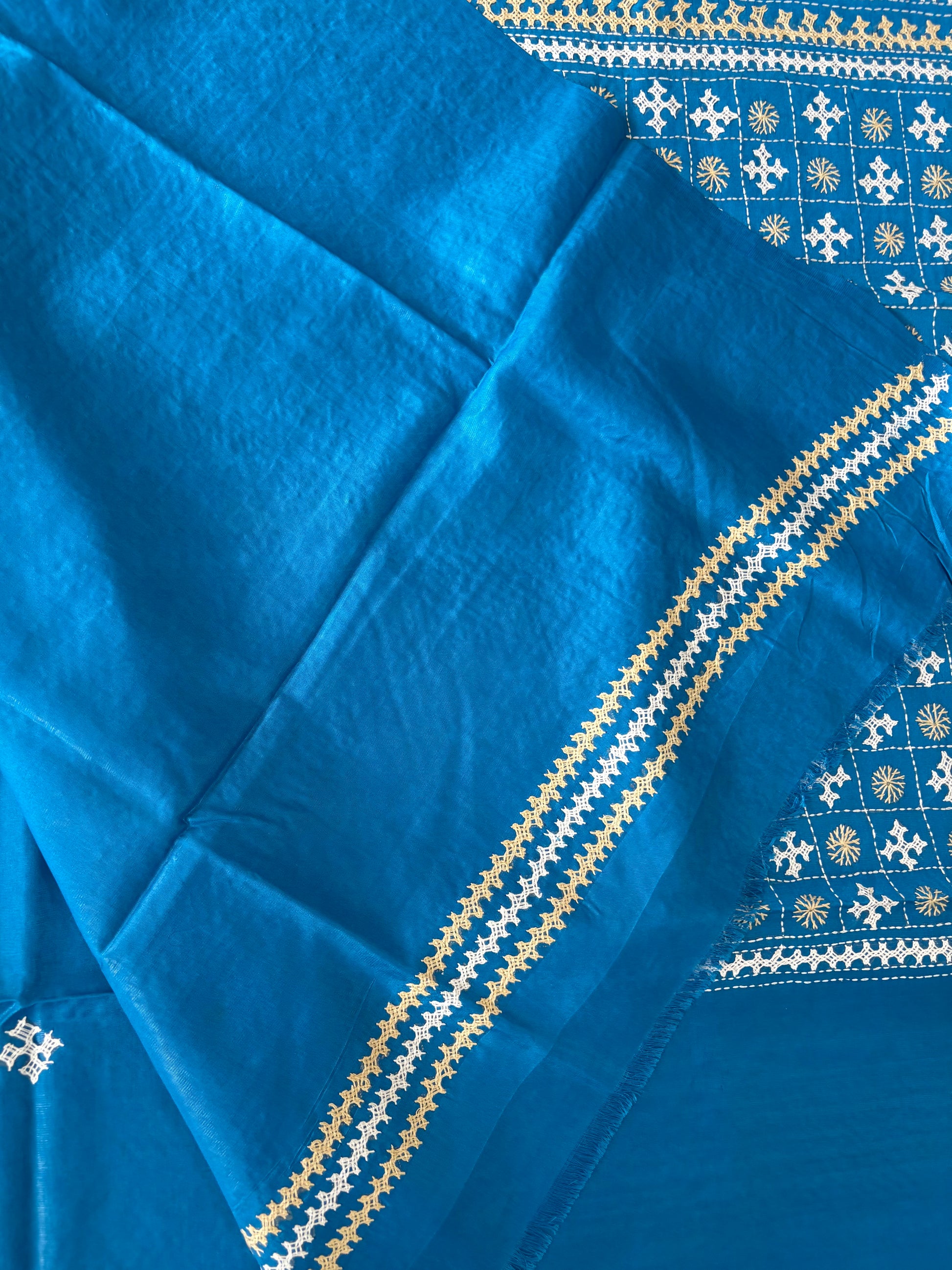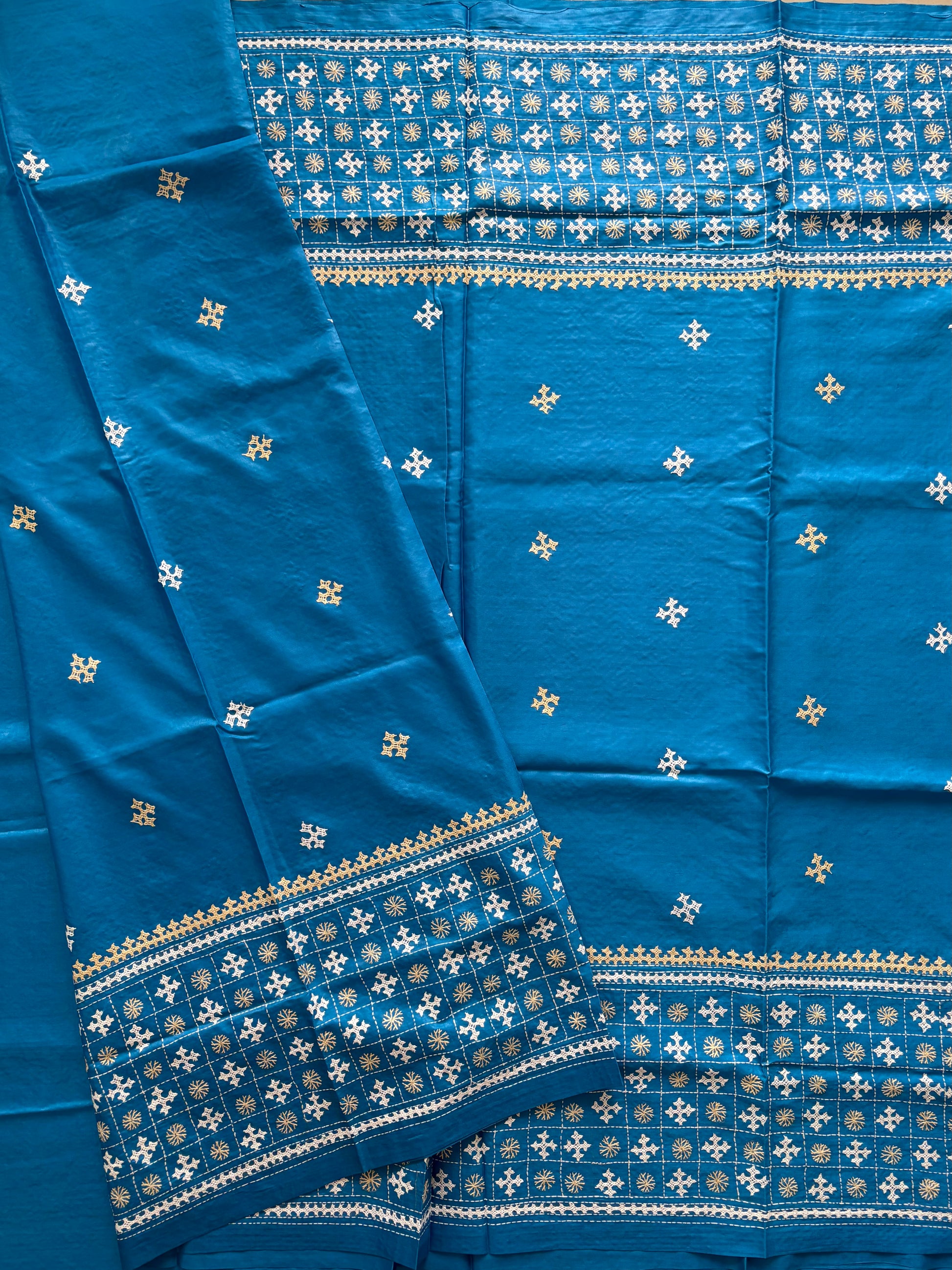 “Gujrati Stitch/Kutch Hand Embroidered Art Silk Saree.