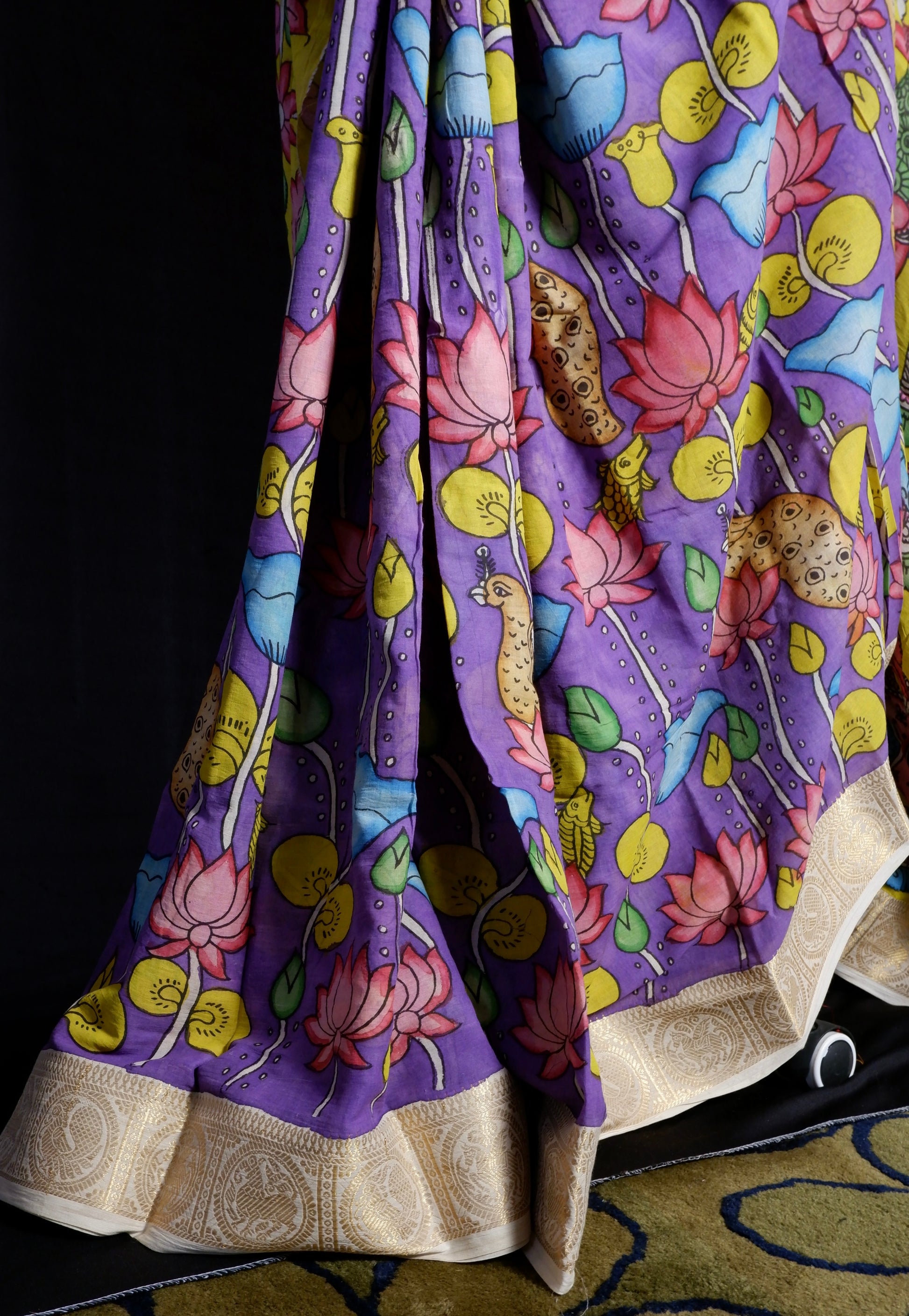 Pen Kalamkari hand painted pure cotton Saree with blouse