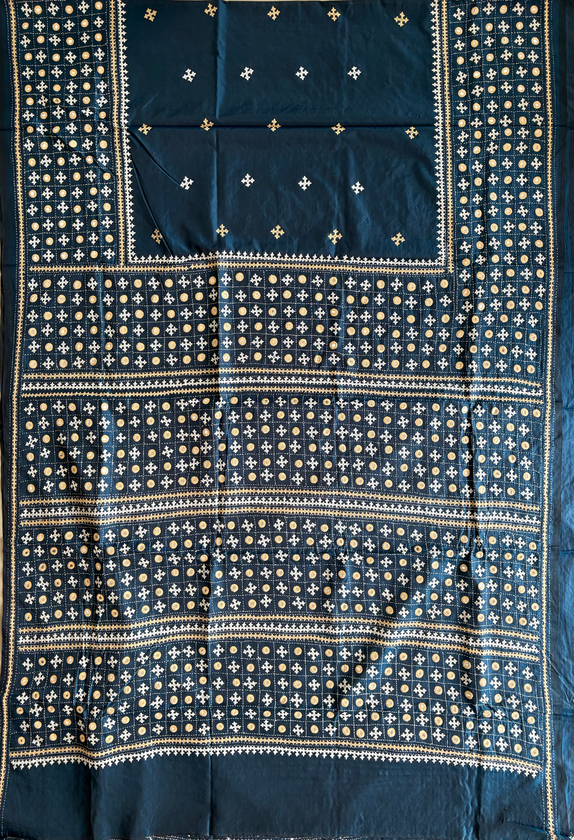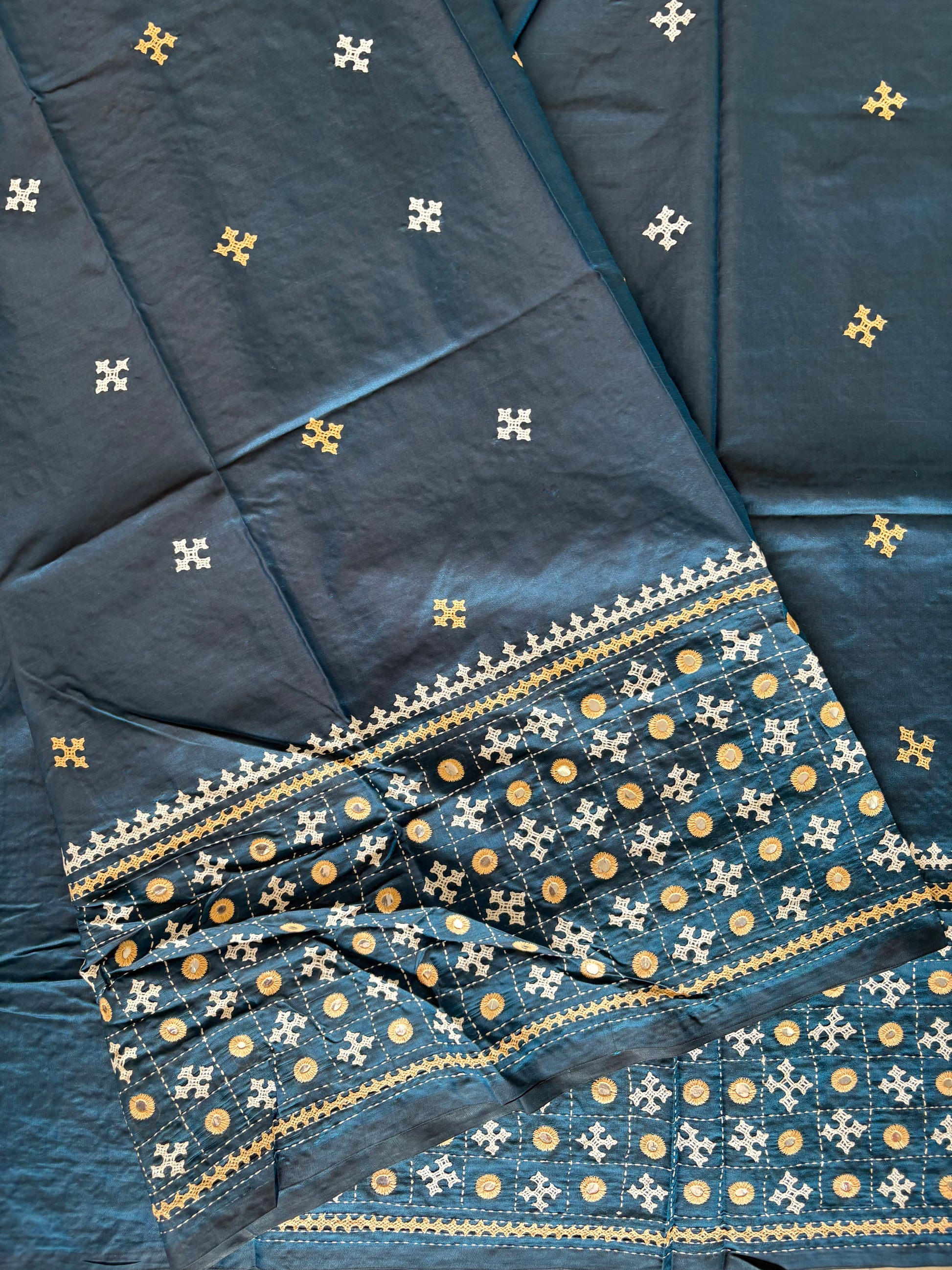 “Gujrati Stitch/Kutch Hand Embroidered Art Silk Saree.