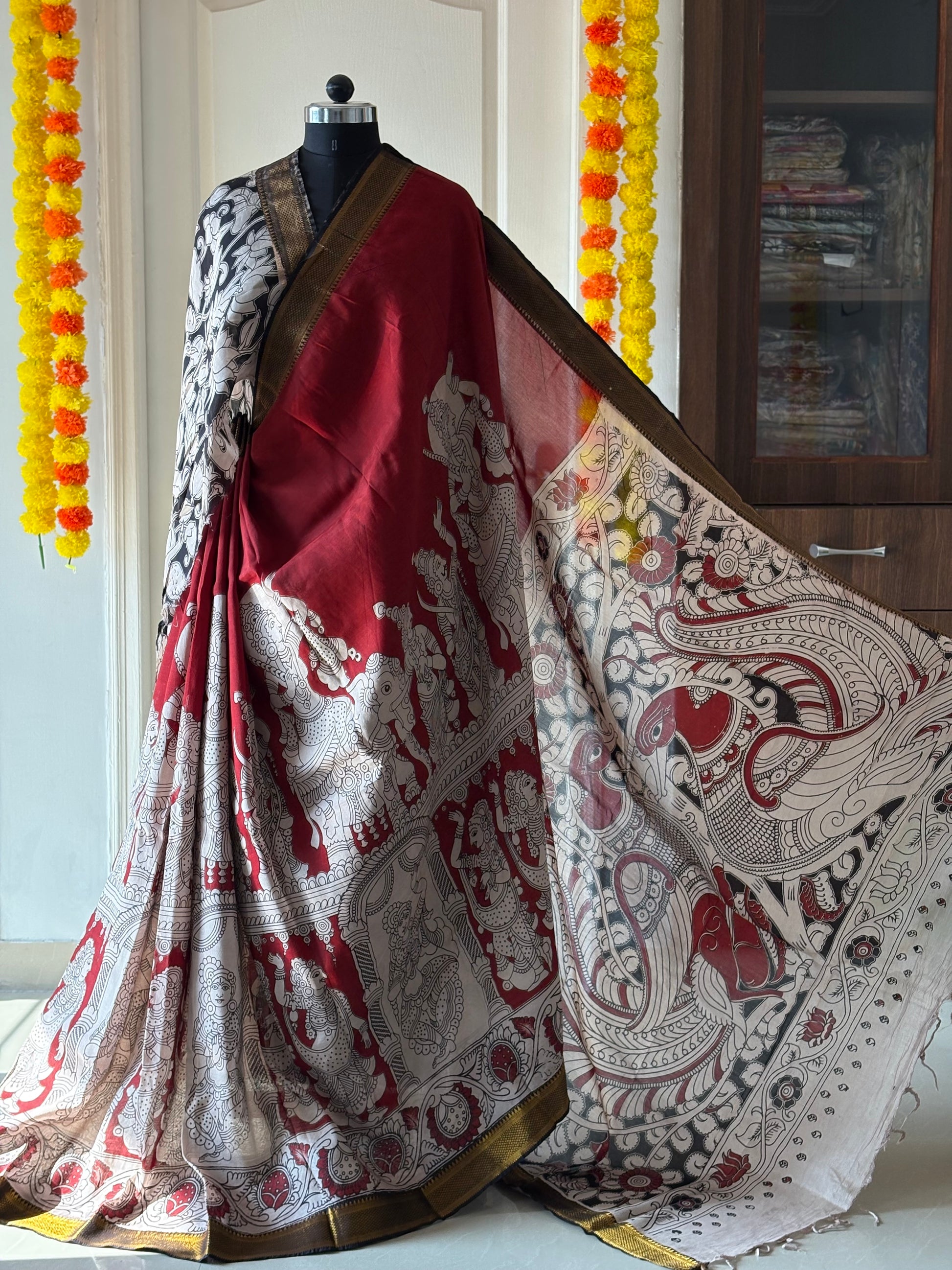 Printed Kalamkari Silk Saree with blouse