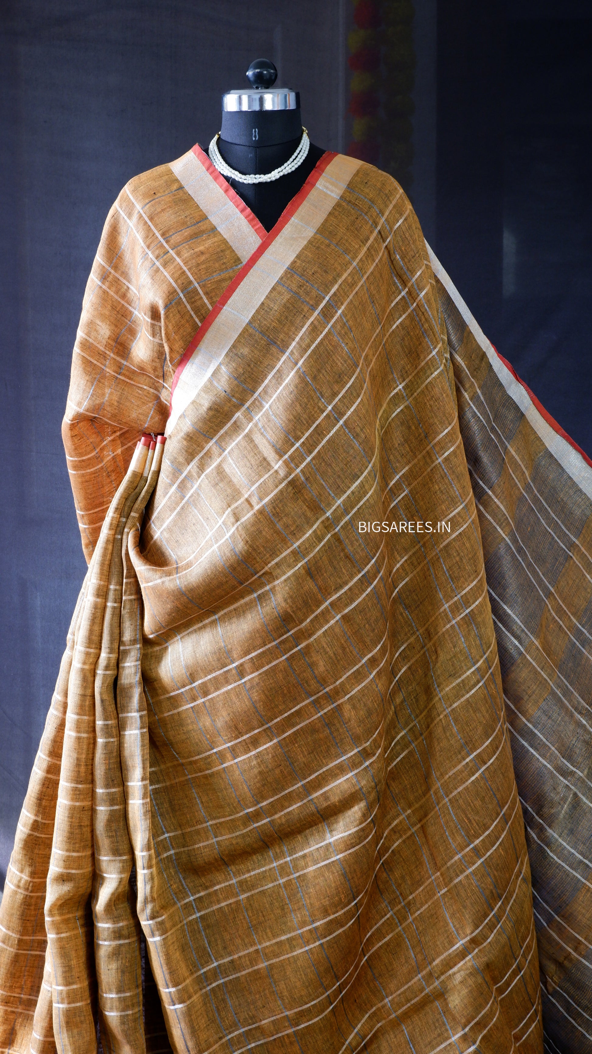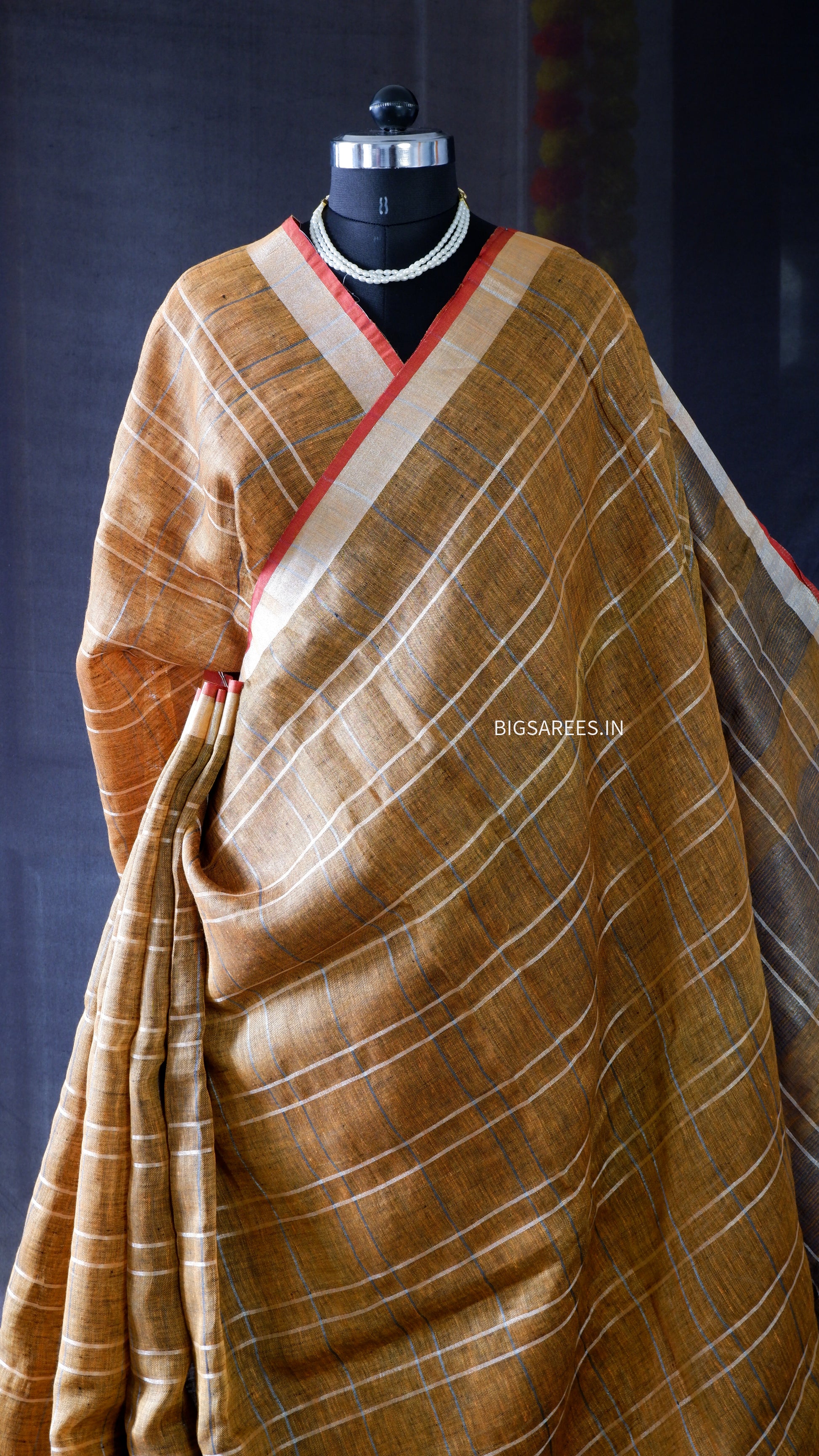 “Beautiful, Linen By Linen Saree With Blouse. Pallu Accessorized With Beautiful Tassels.