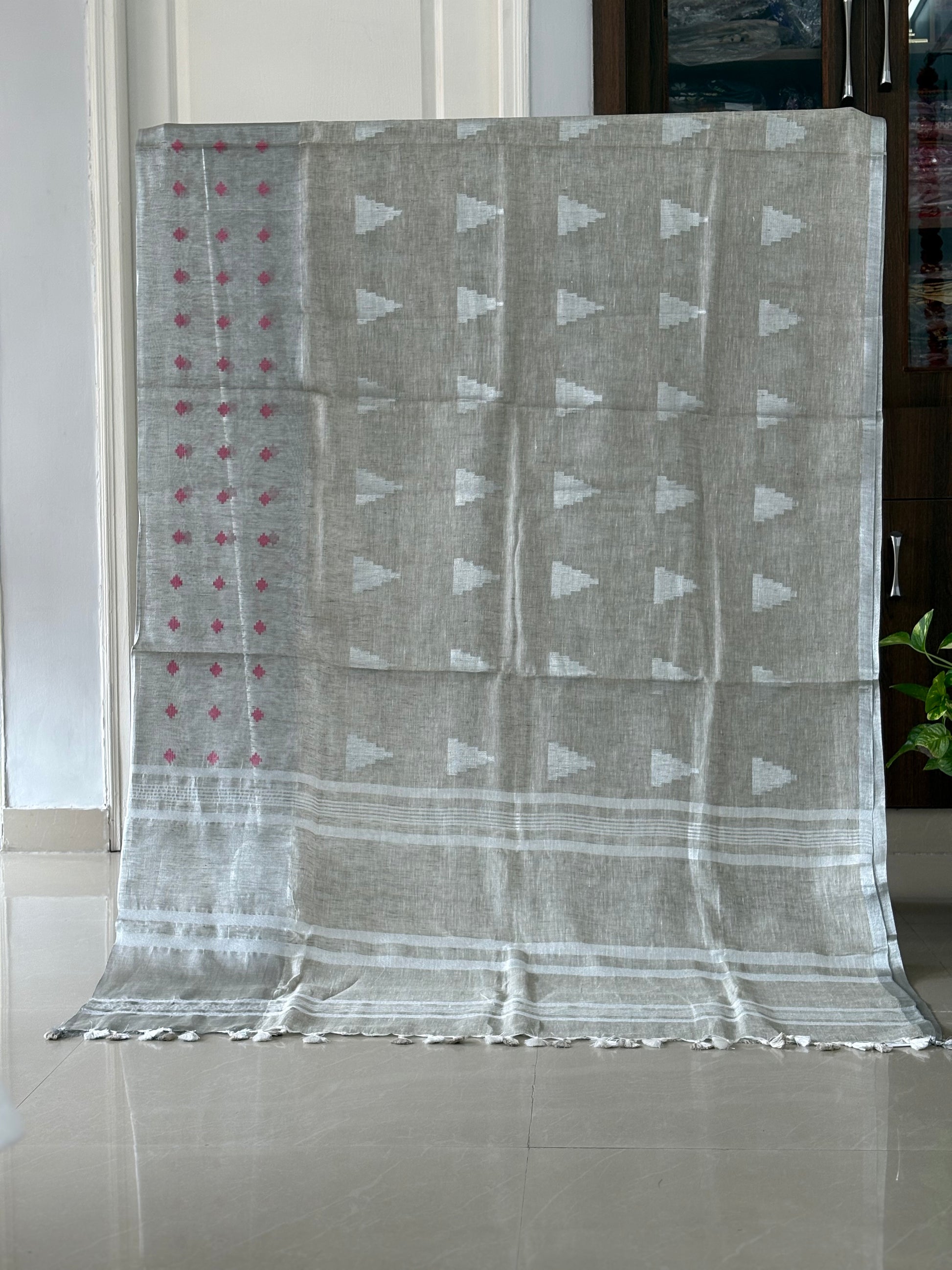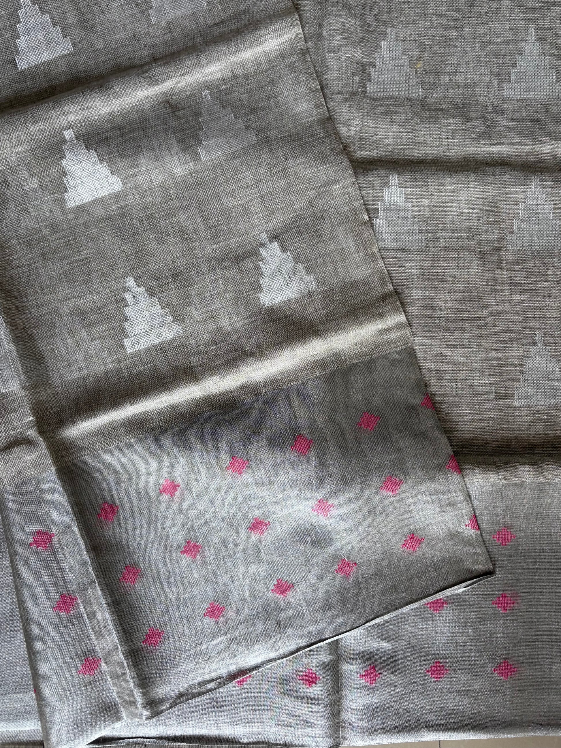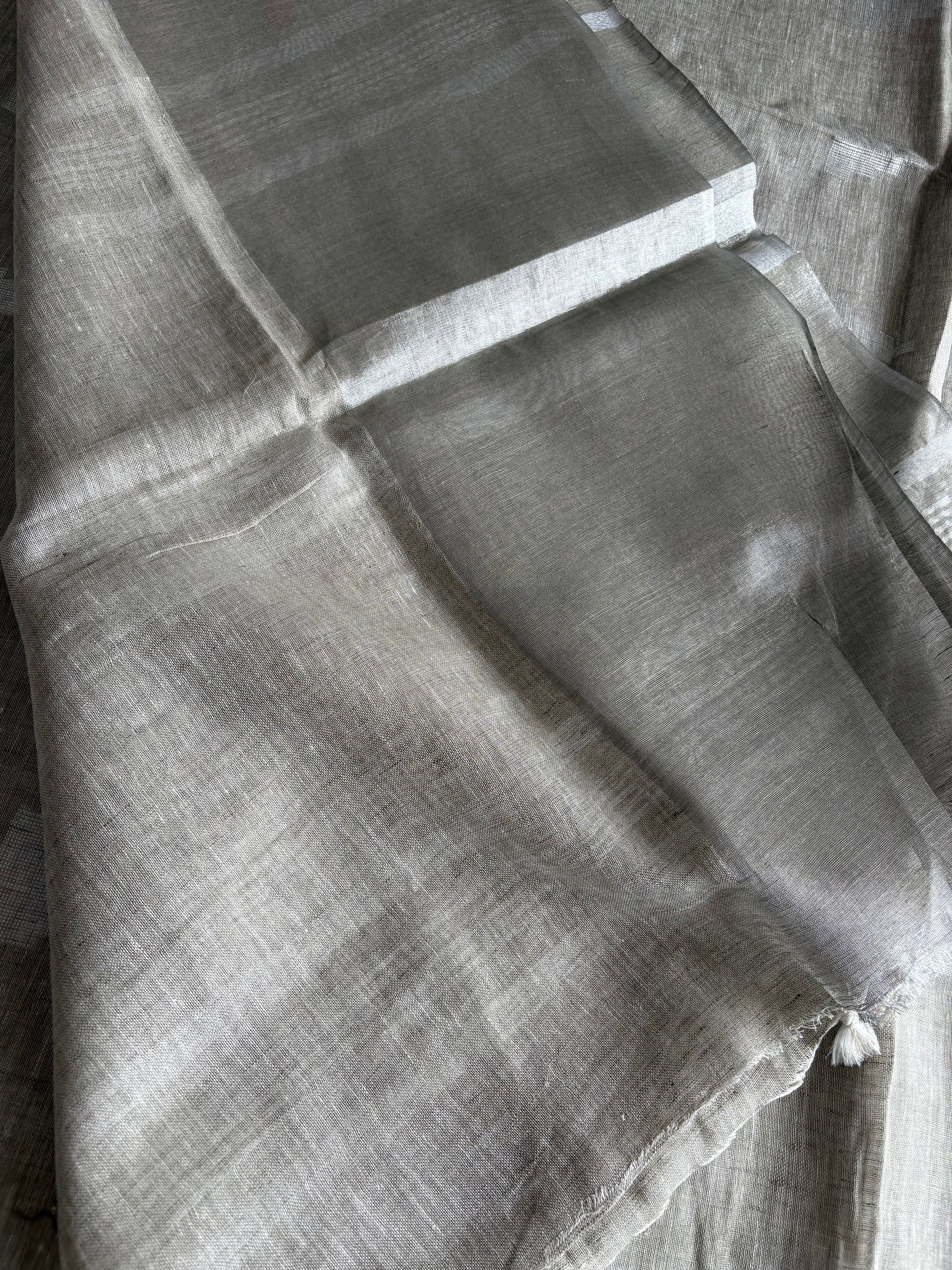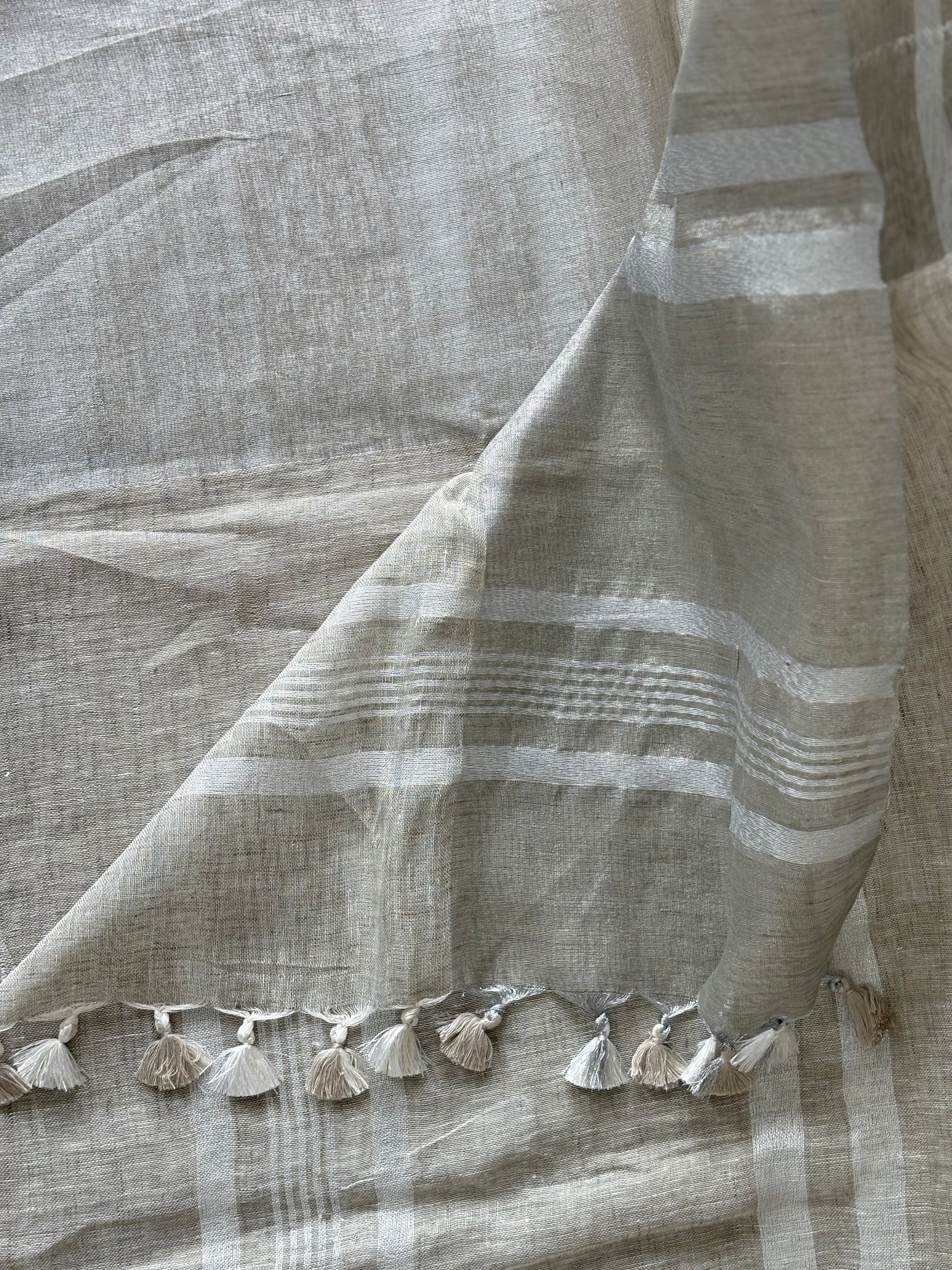 “Beautiful, Linen By Linen Saree With Blouse. Pallu Accessorized With Beautiful Tassels.