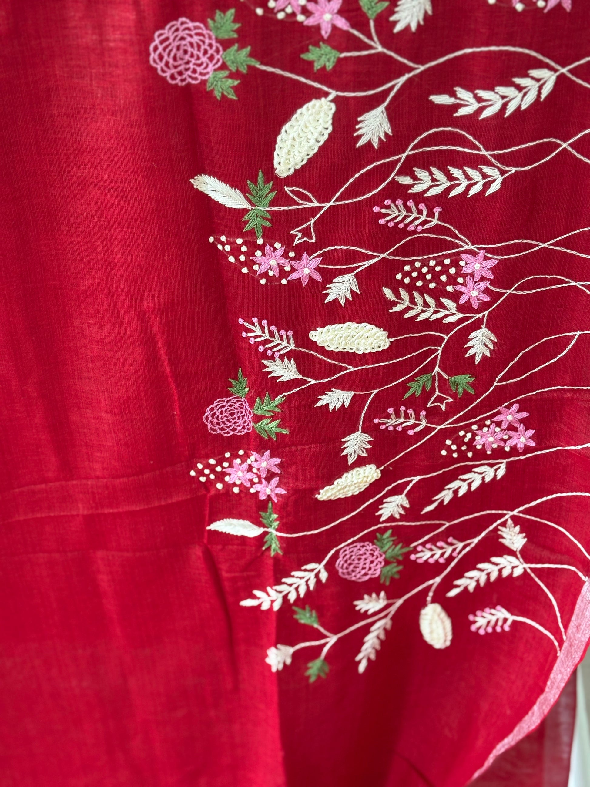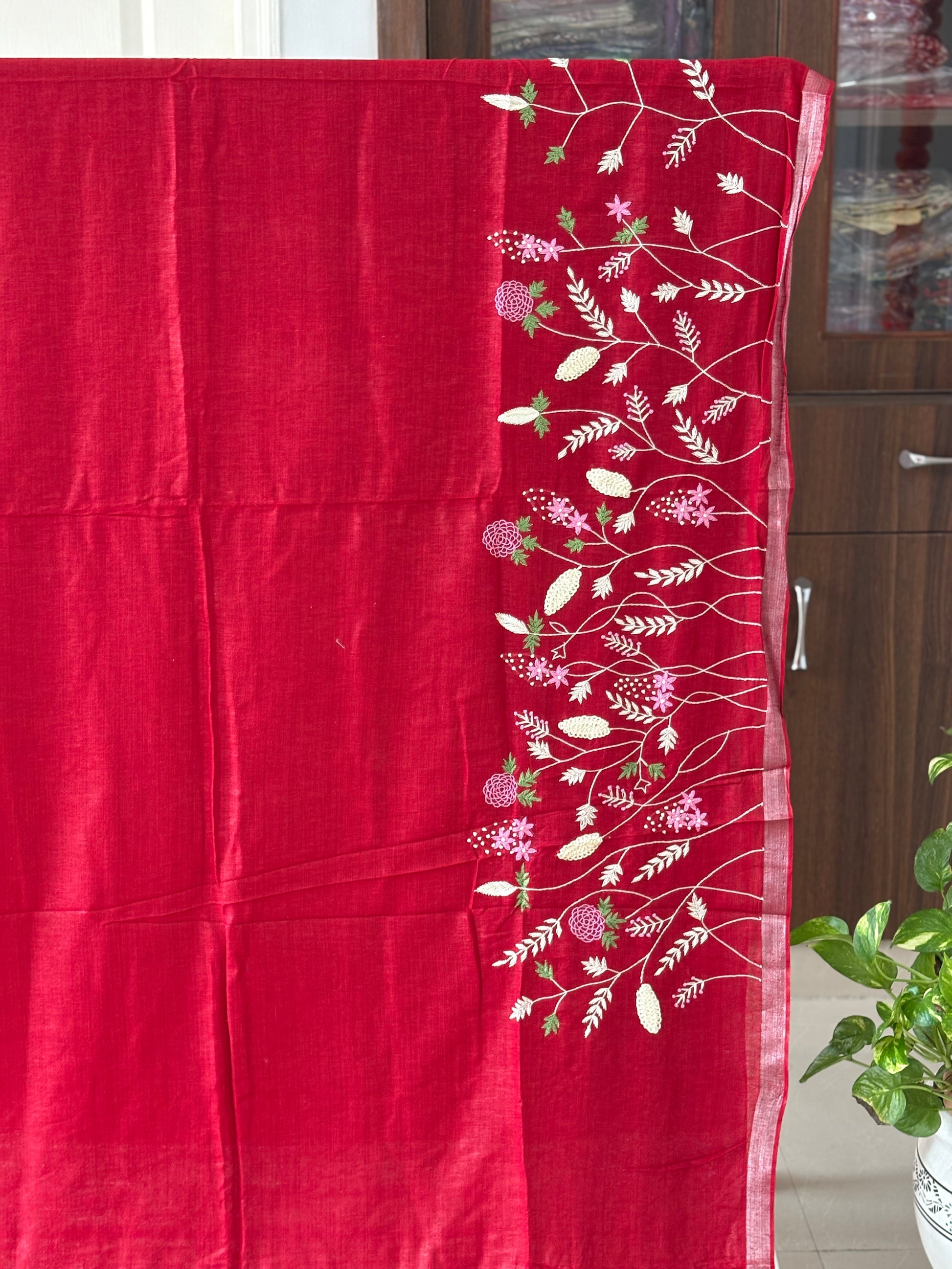 Pure Linen Saree With running Blouse - Red