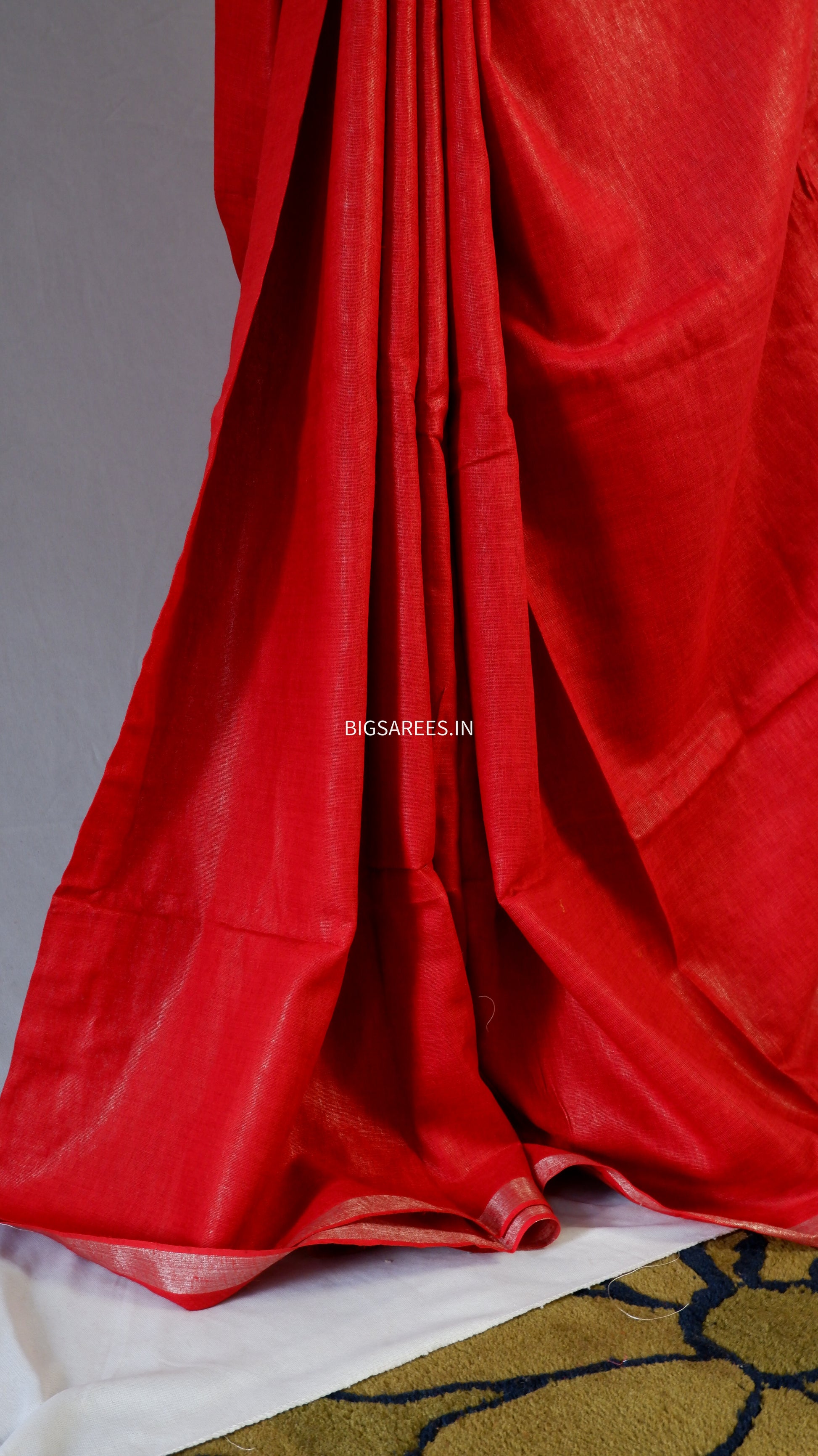 Pure Linen Saree With running Blouse - Dark Red