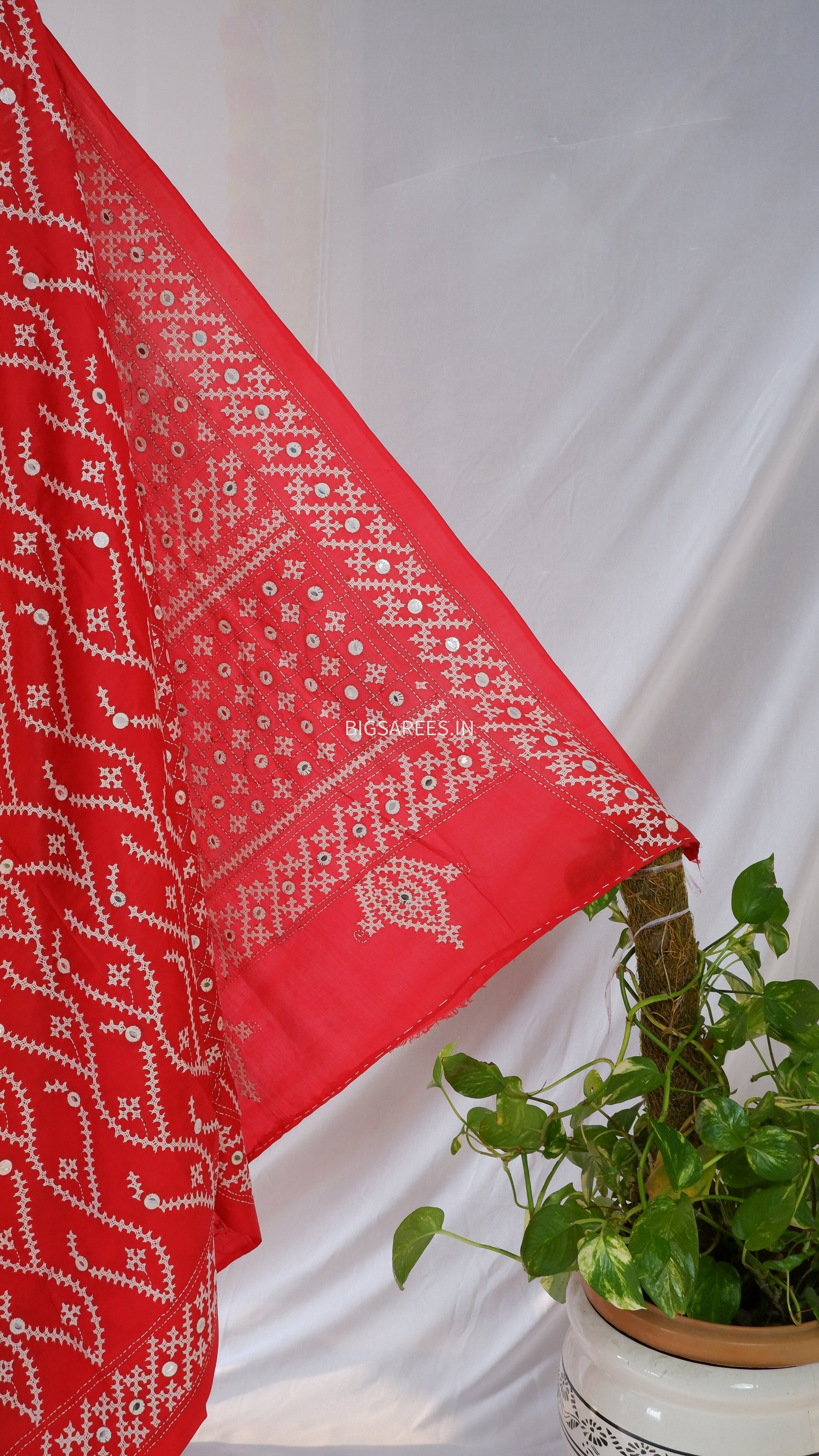 Kutch Hand Embroidered Saree| Pure Bangalore Silk | Silk Marked | Red