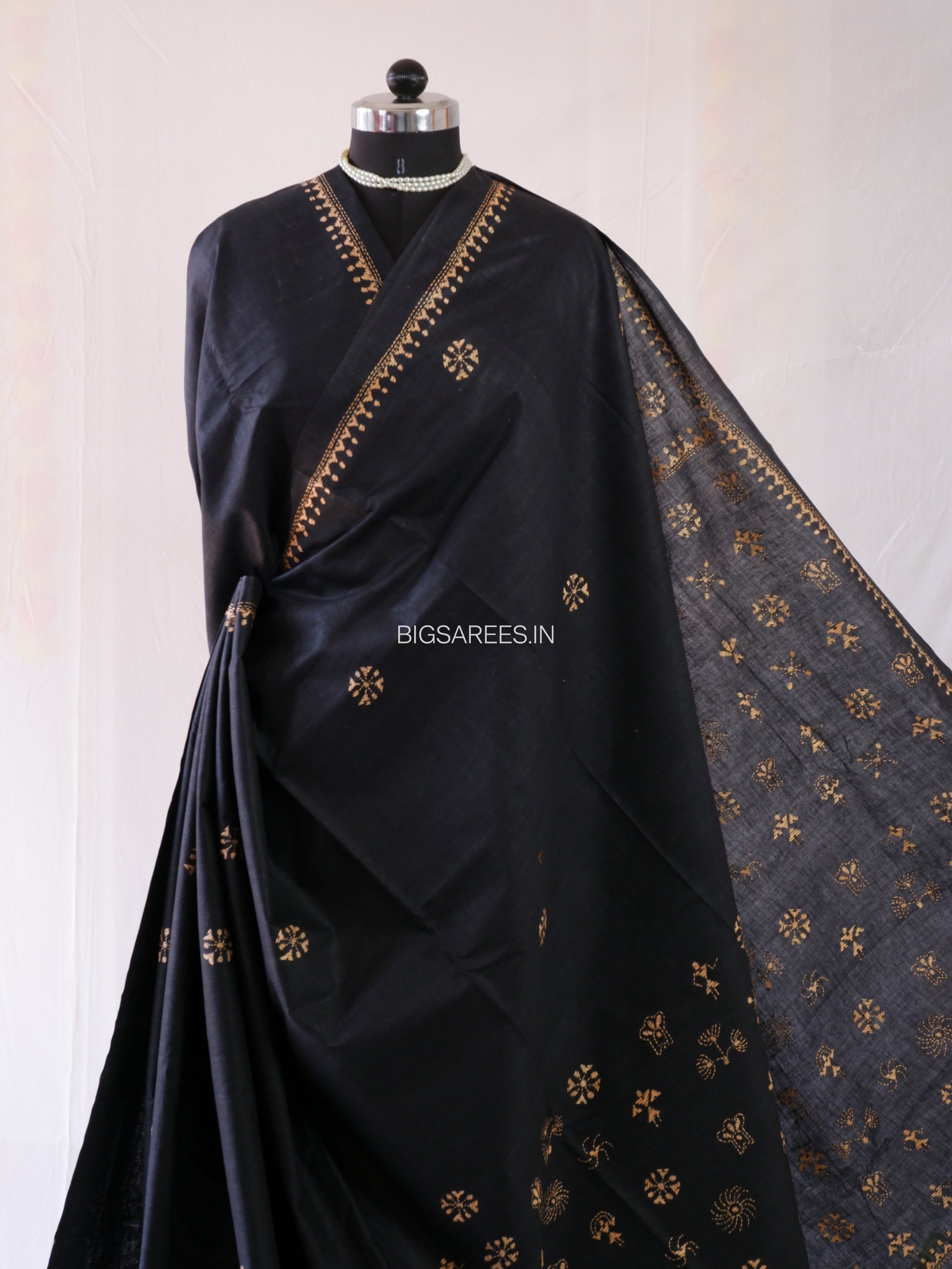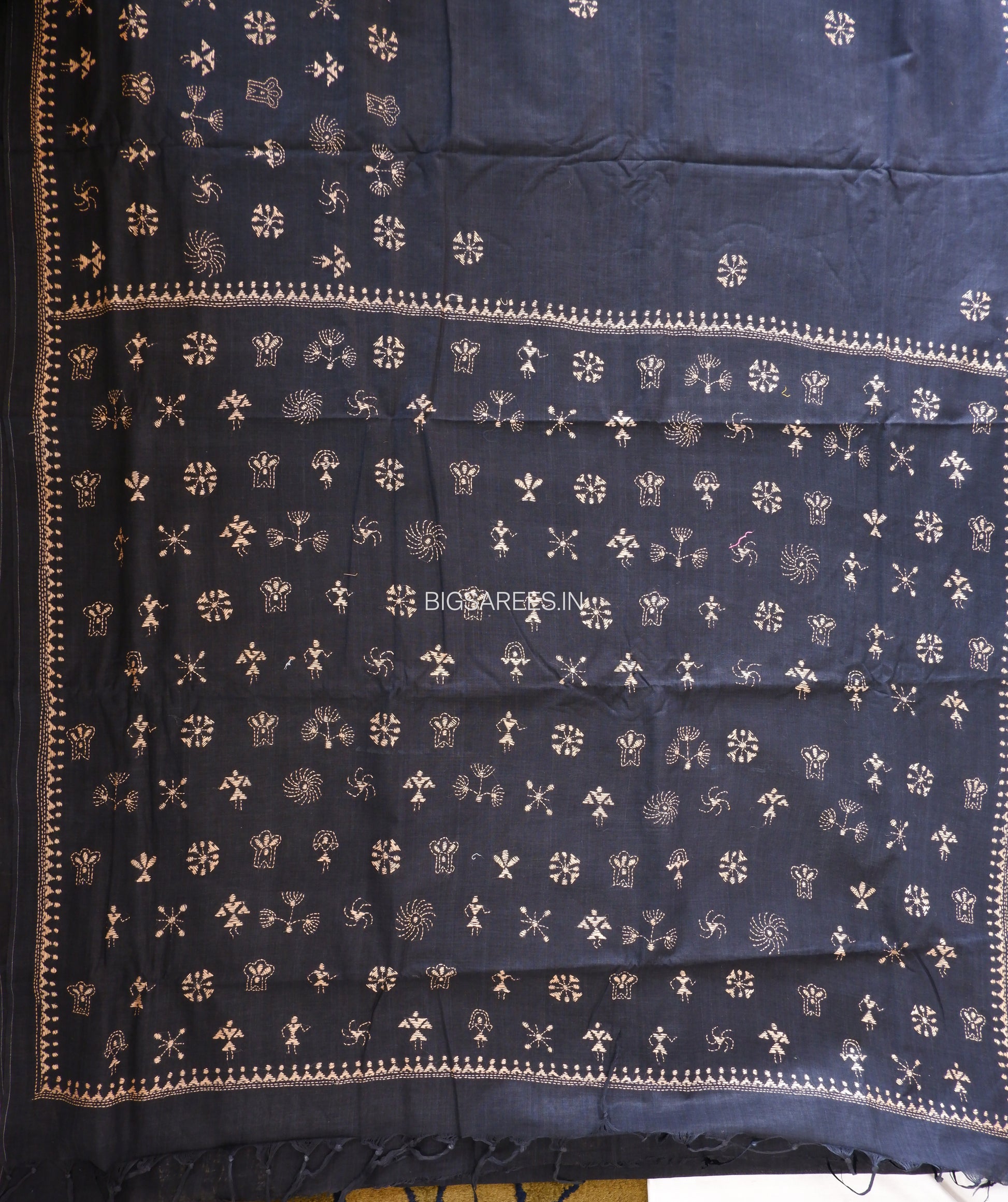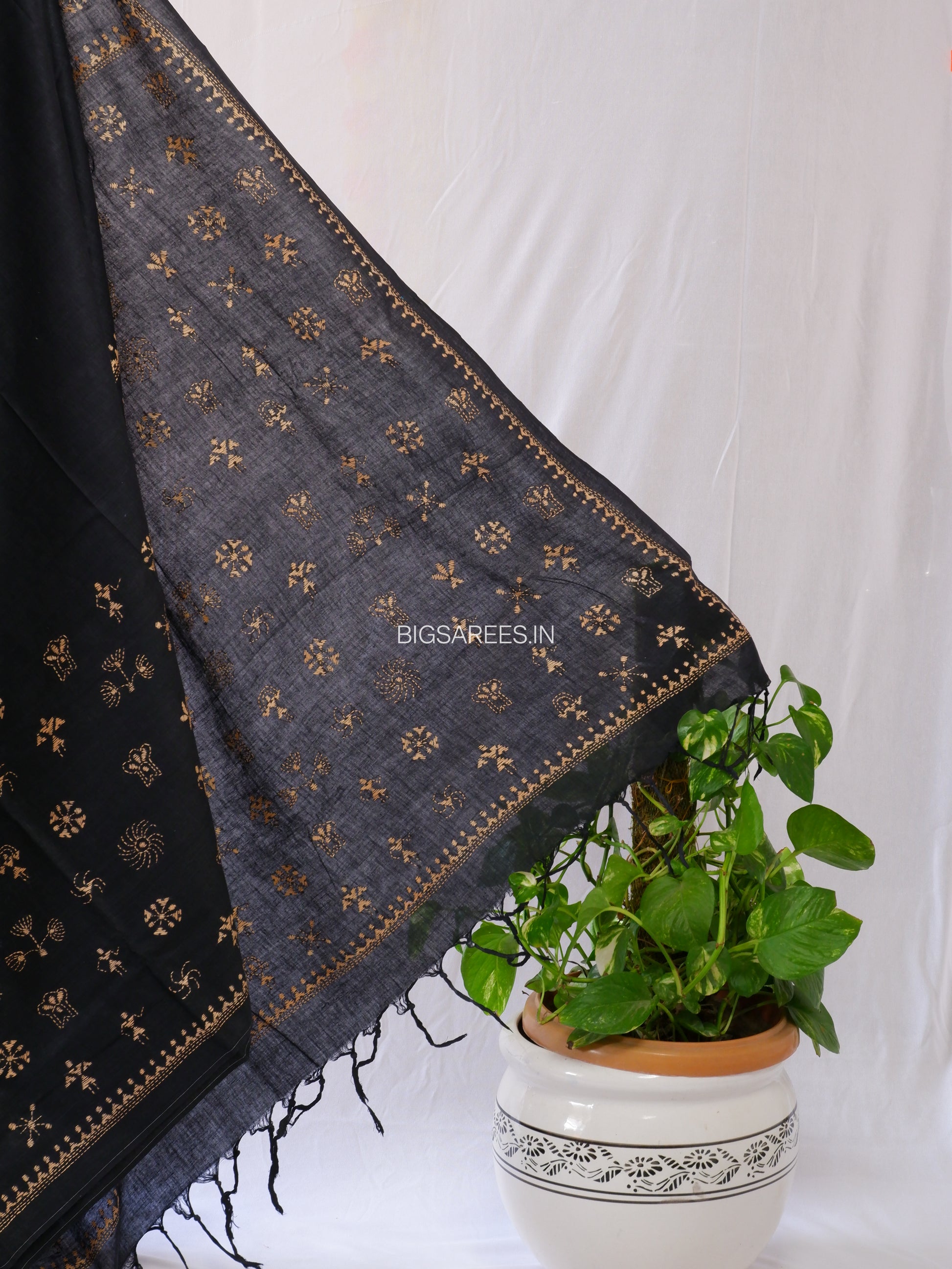 Kantha Hand-Embroidered Saree | Pure Cotton | Black