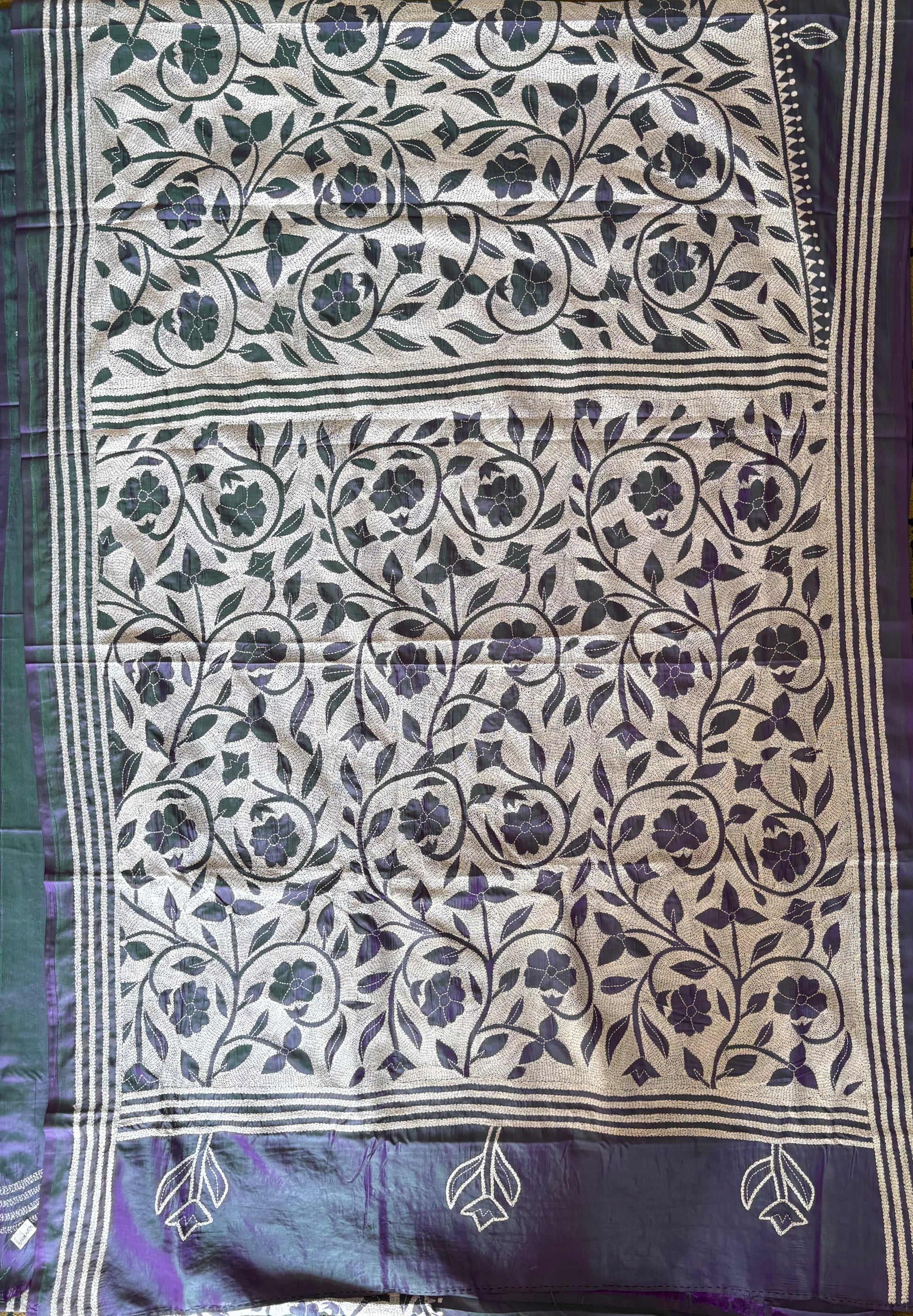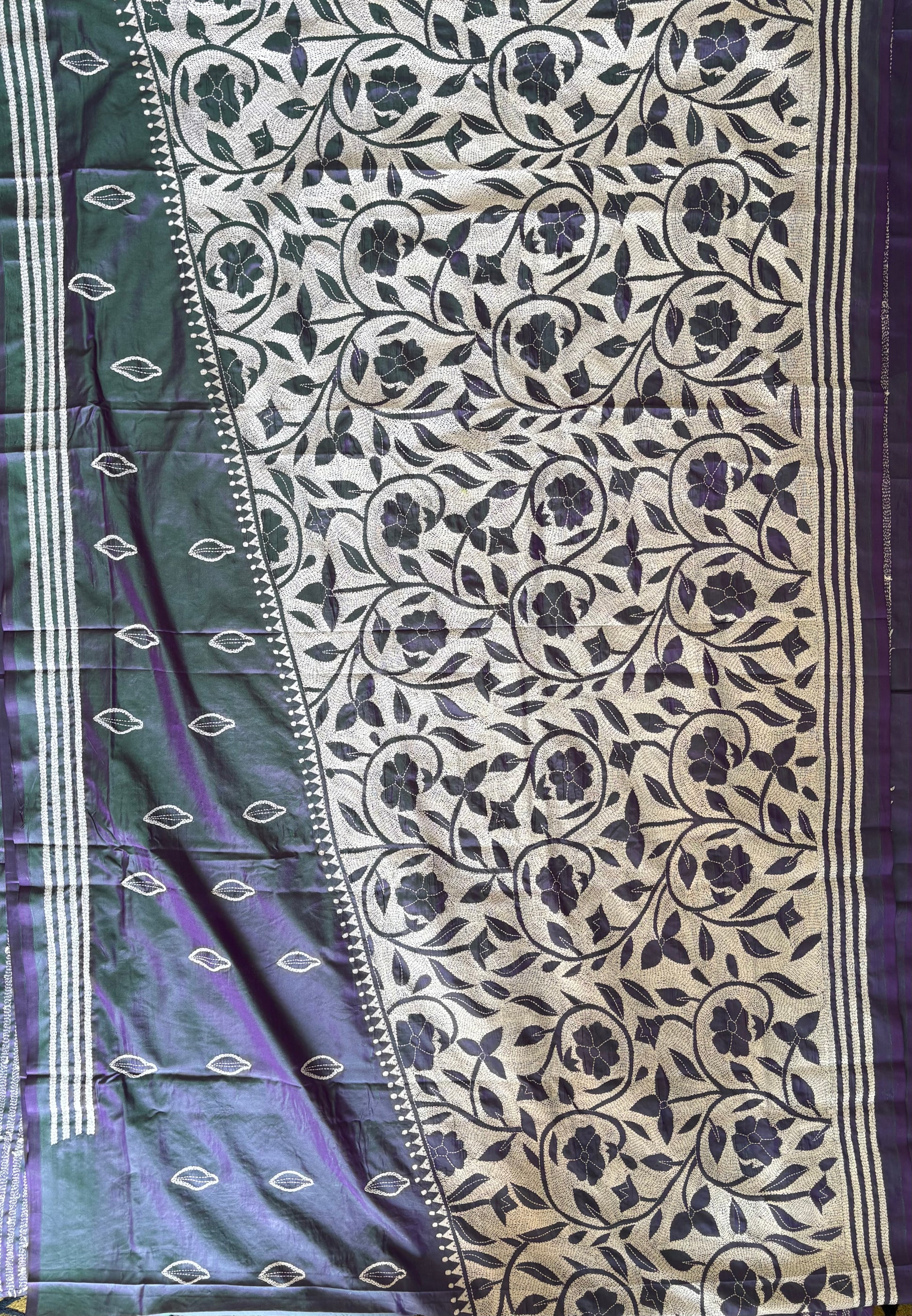 Kantha Stitch Saree on Hand Art Silk