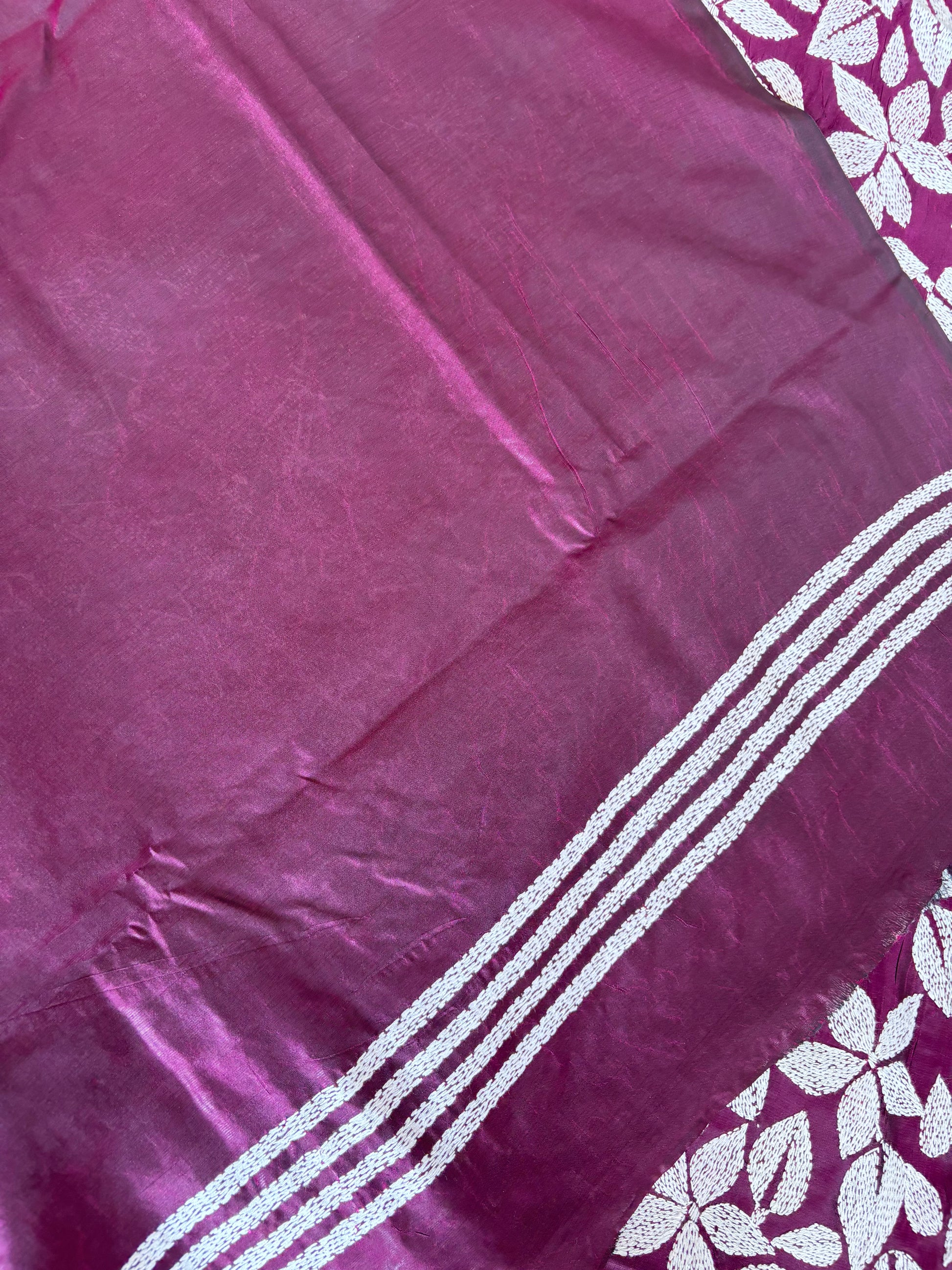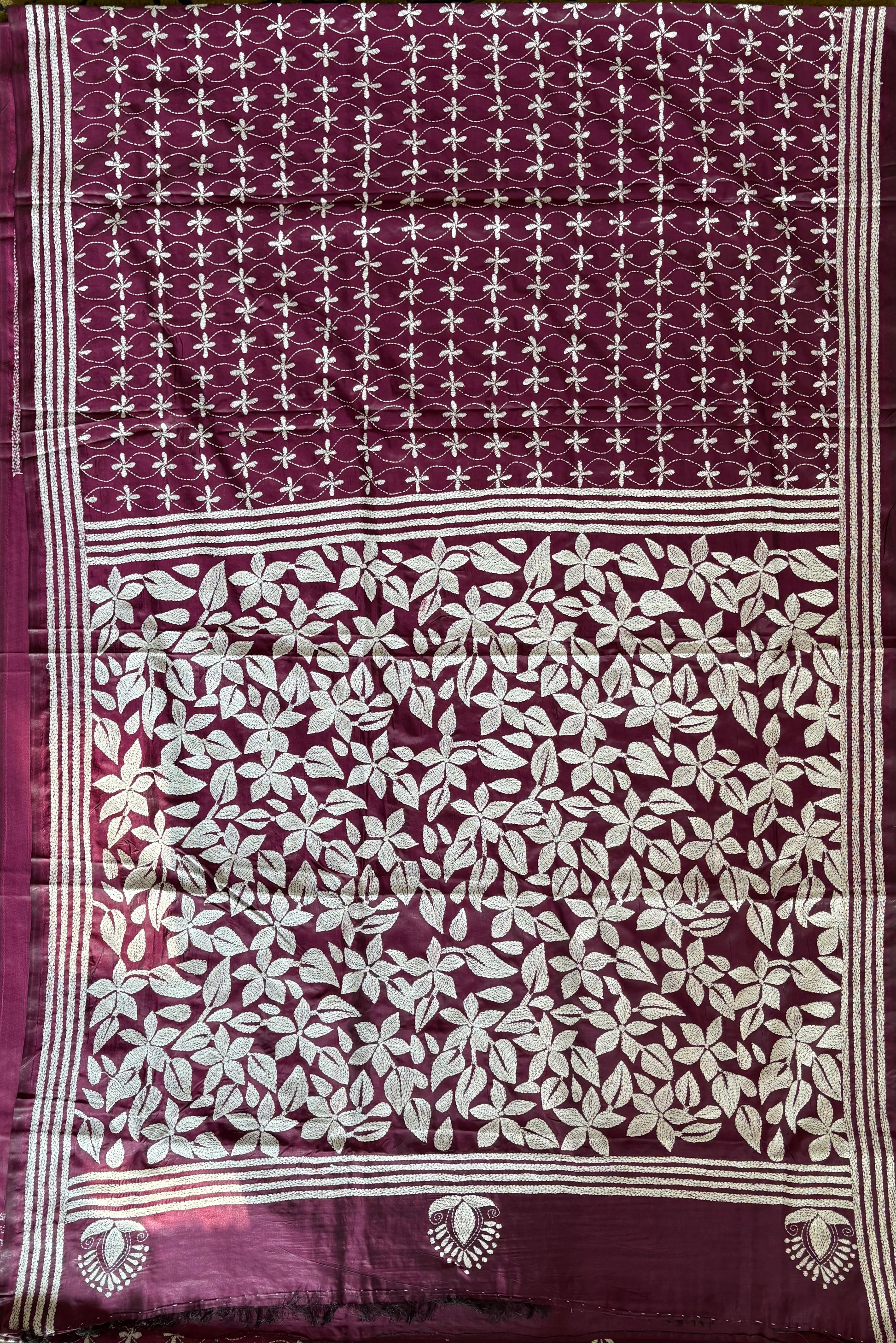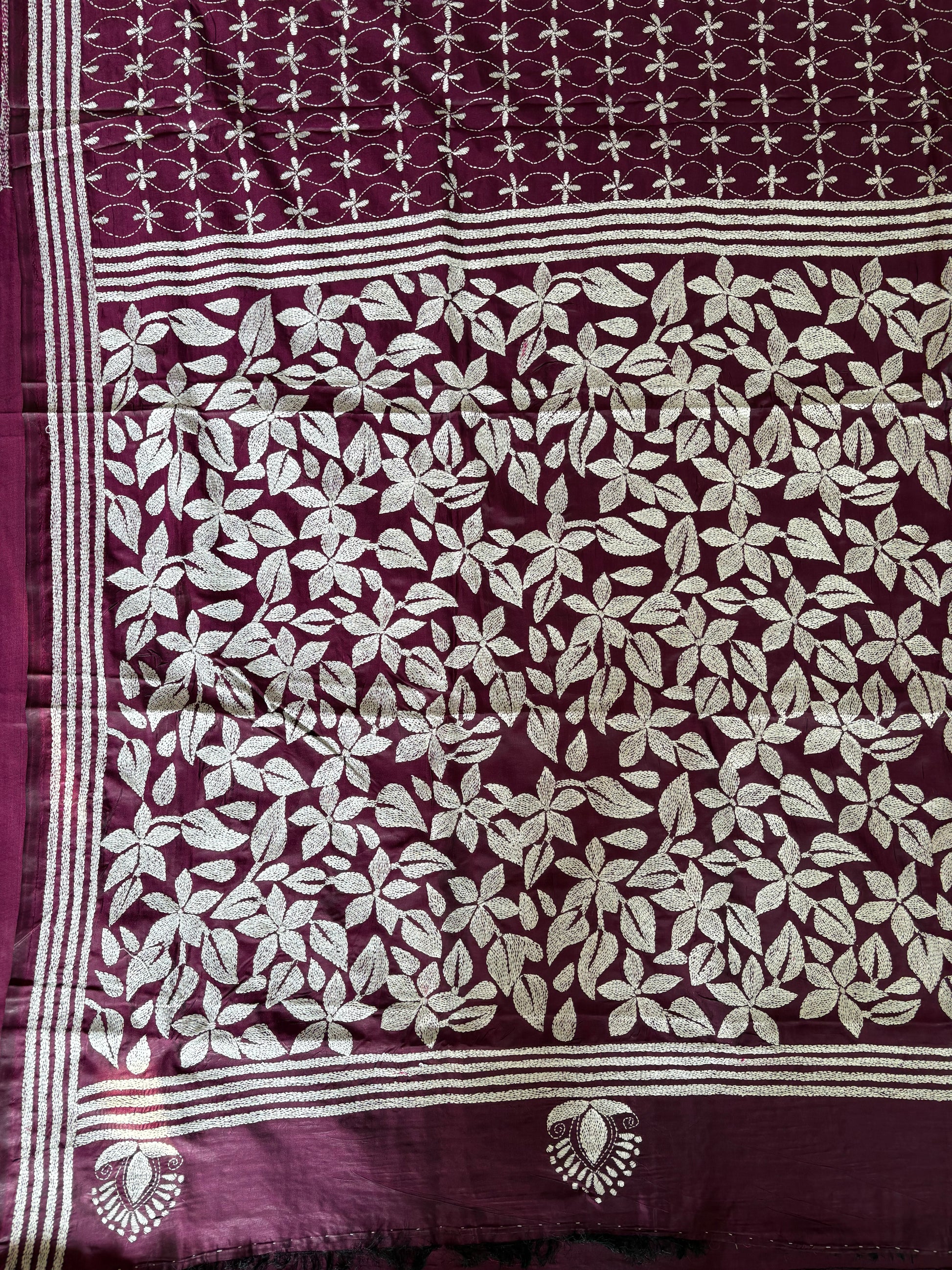 Kantha Stitch Hand Embroidered Art Silk Saree With Blouse